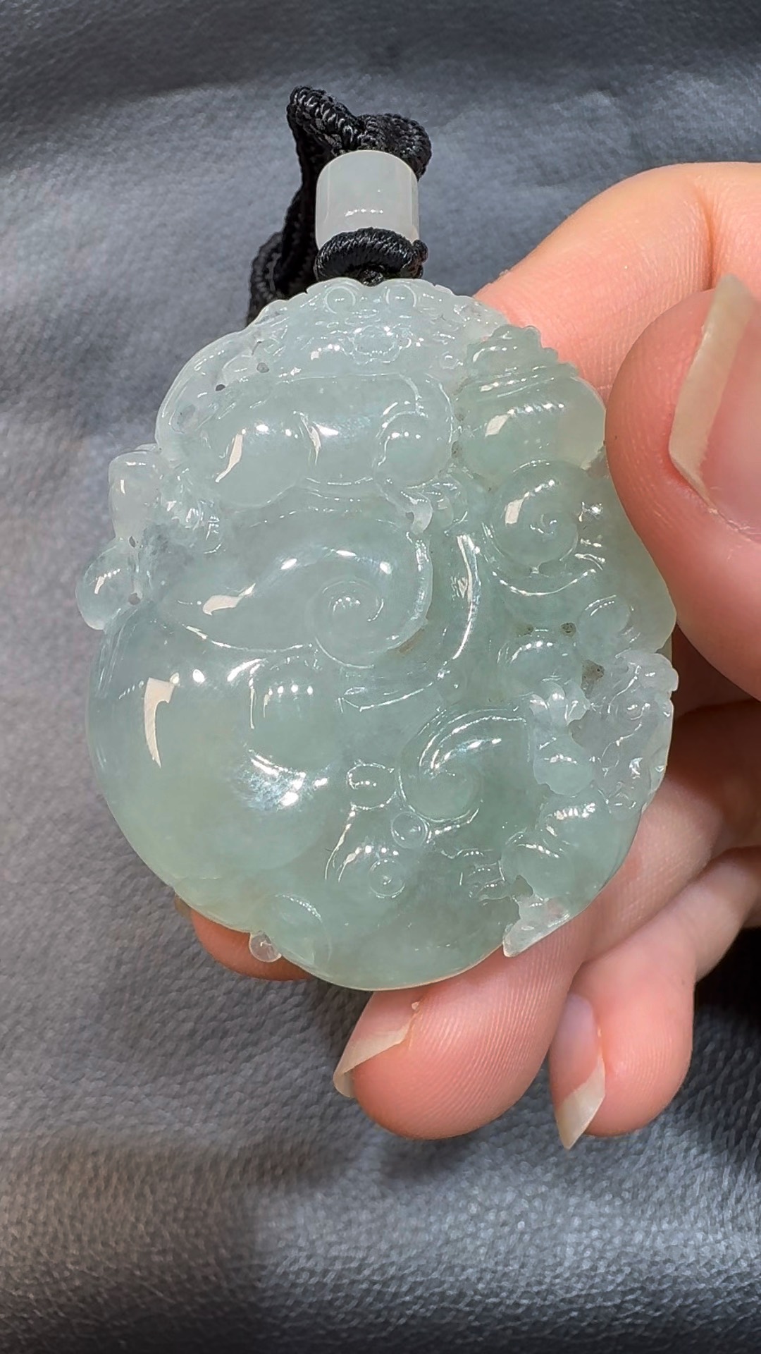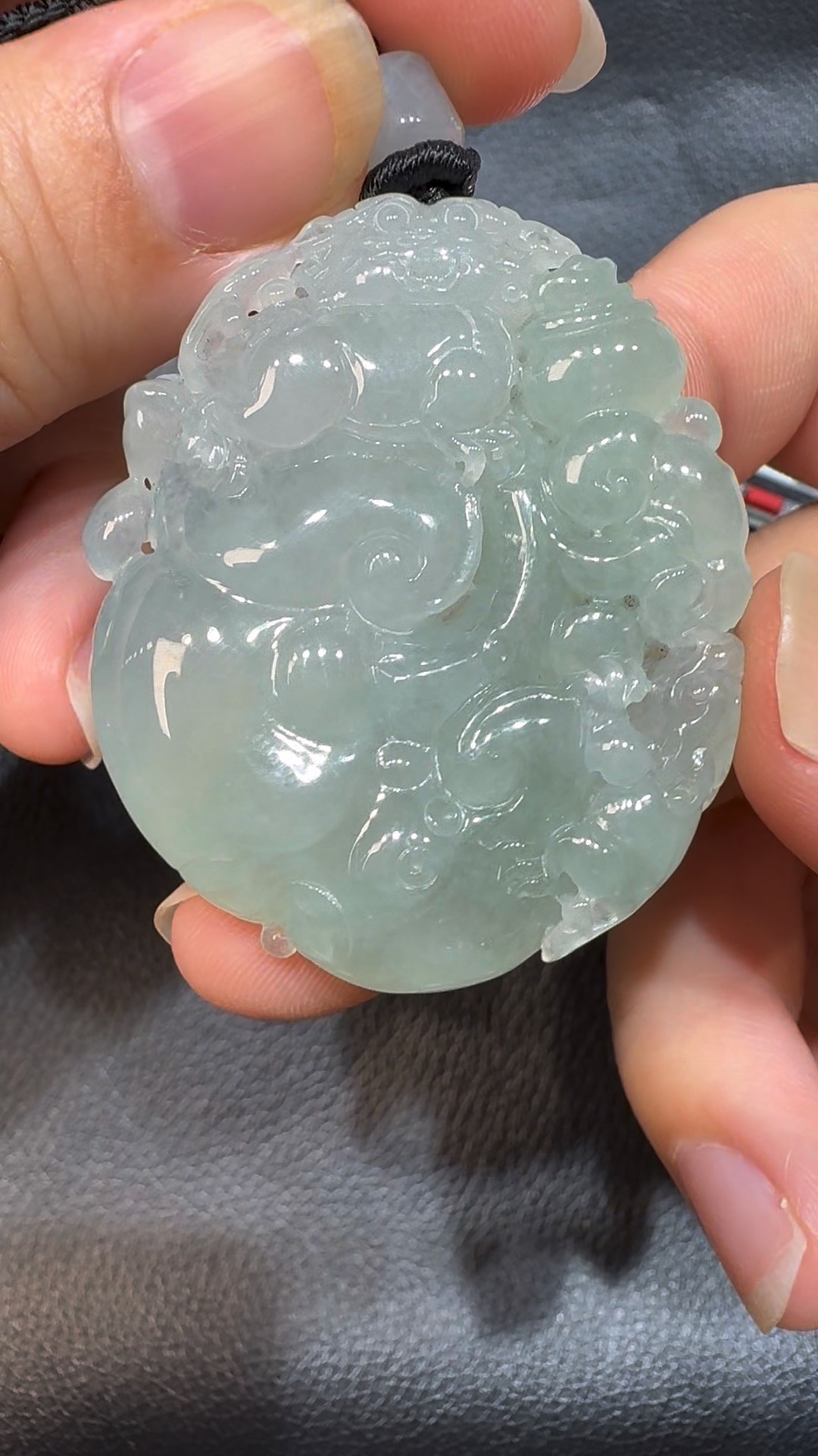翡翠直播商品#52-翡翠A貨母子貔貅如意翡翠吊墜