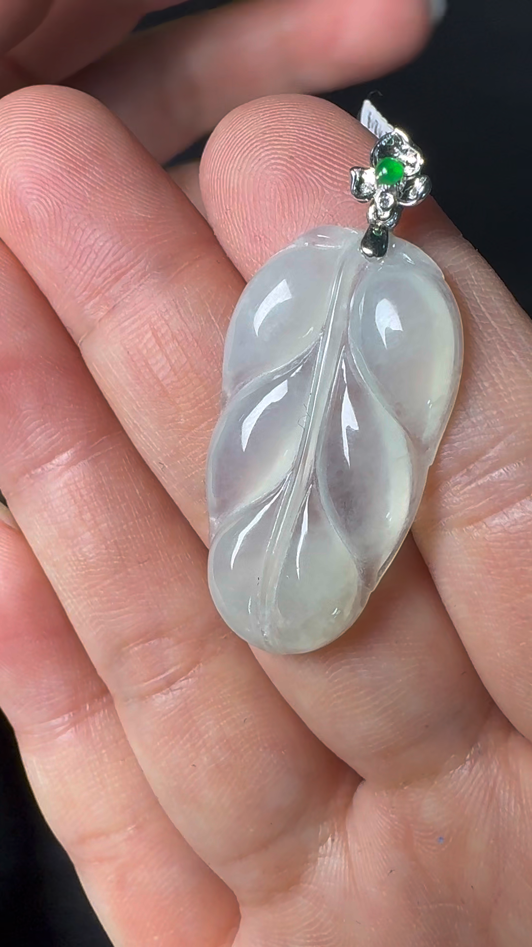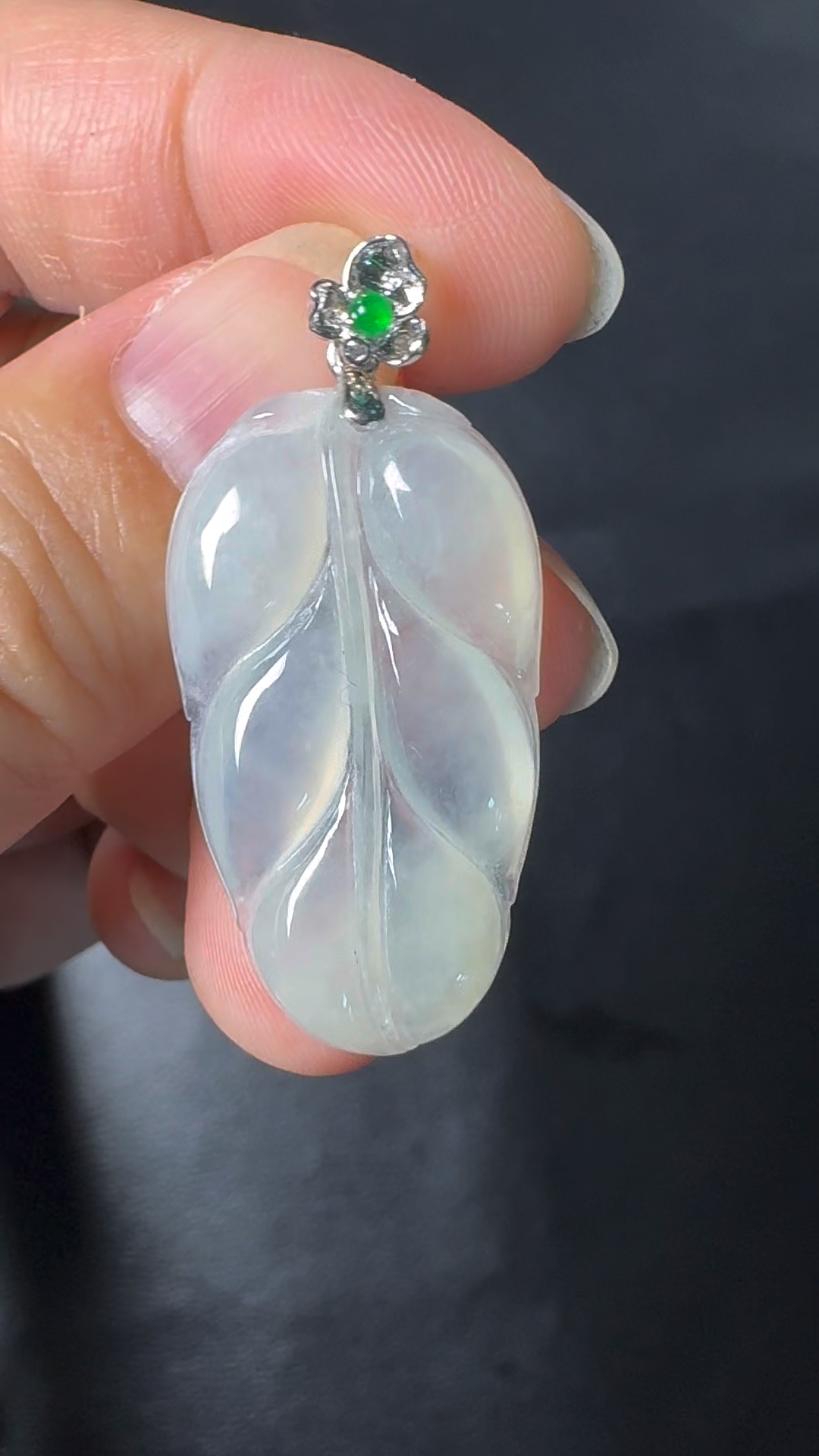 翡翠直播#24-18K白金鑽石翡翠樹葉吊墜