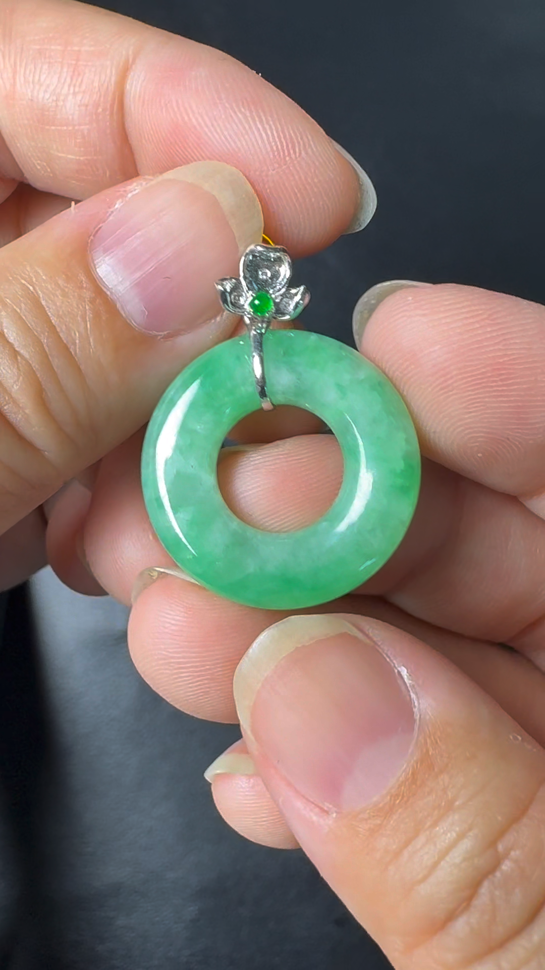 翡翠玉器精選 鼓潤納福・#379好種翡翠平安扣18K鑲嵌款
