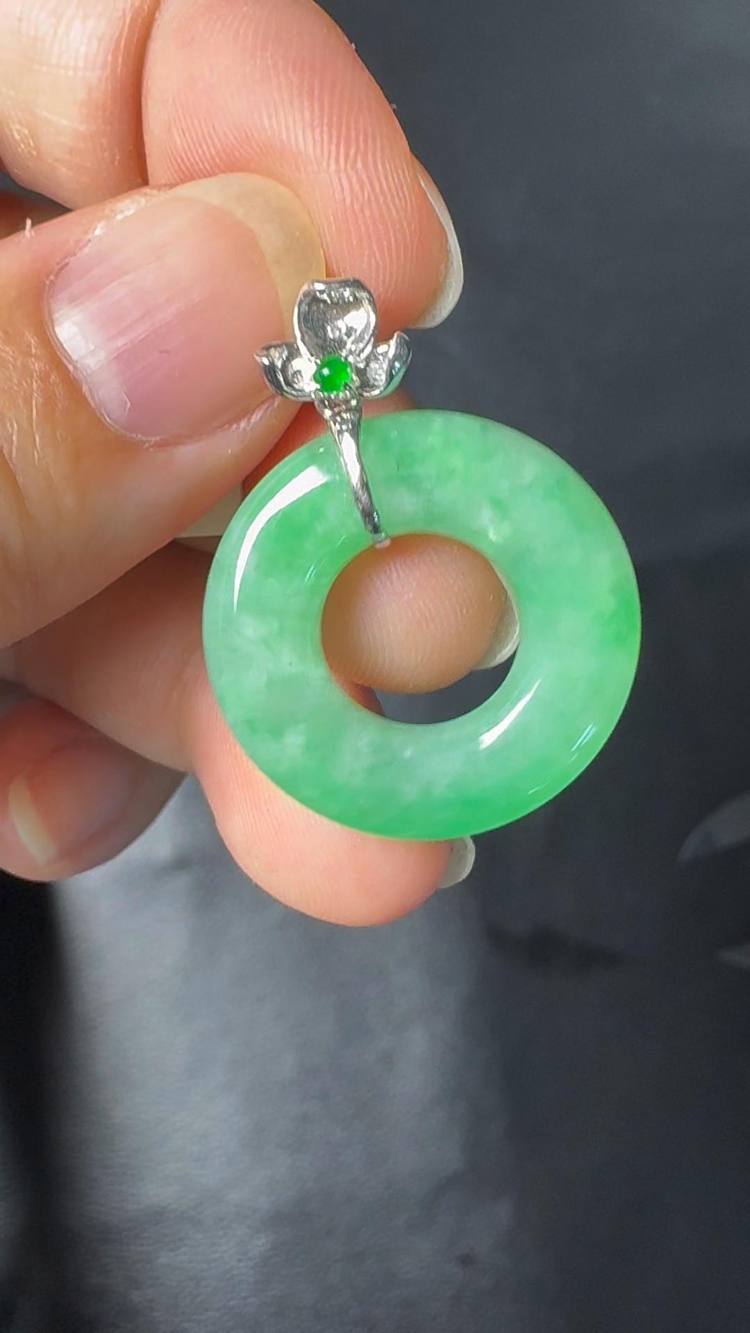 翡翠直播#27-18k白金鑽石翡翠平安扣平安環