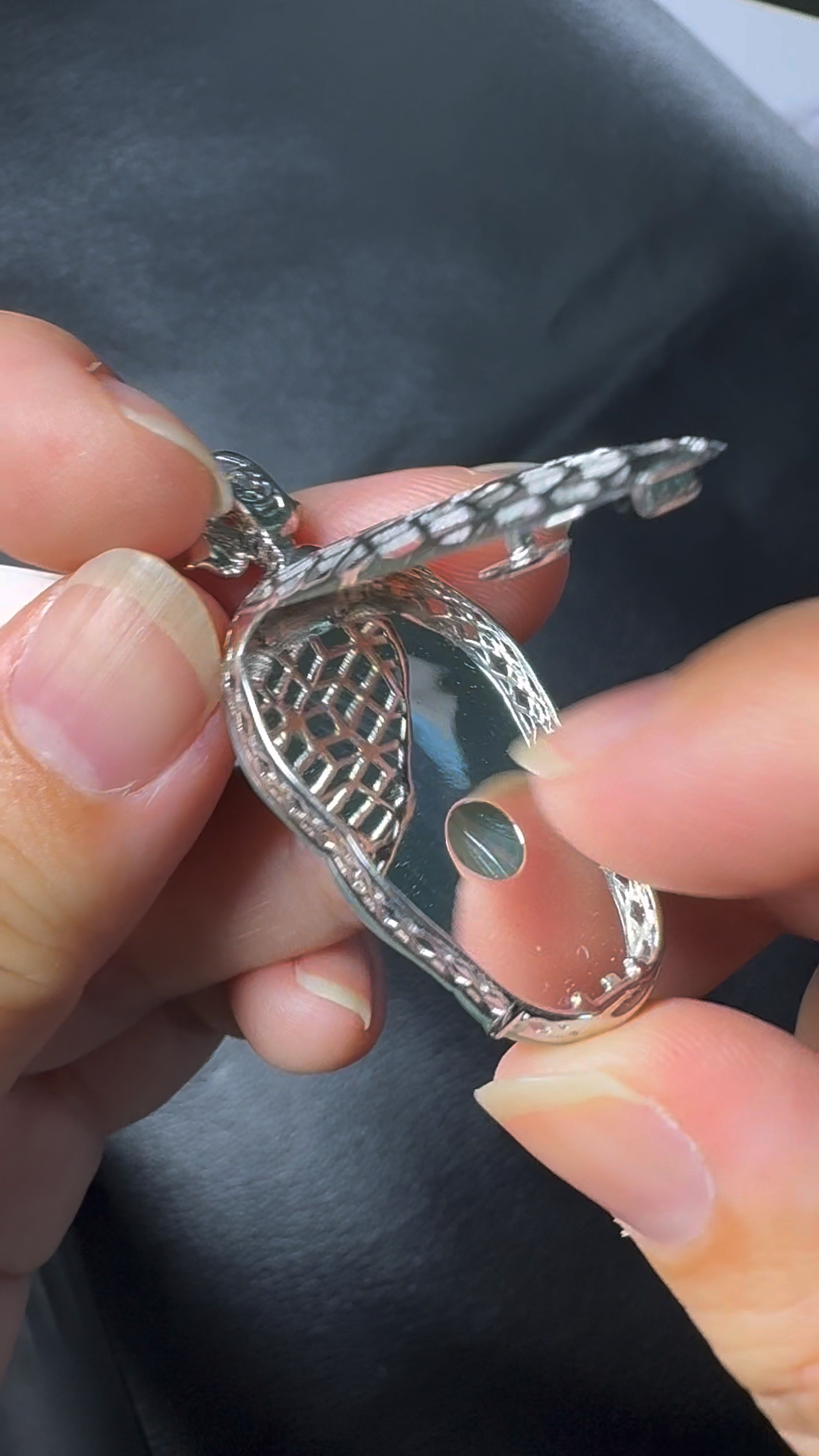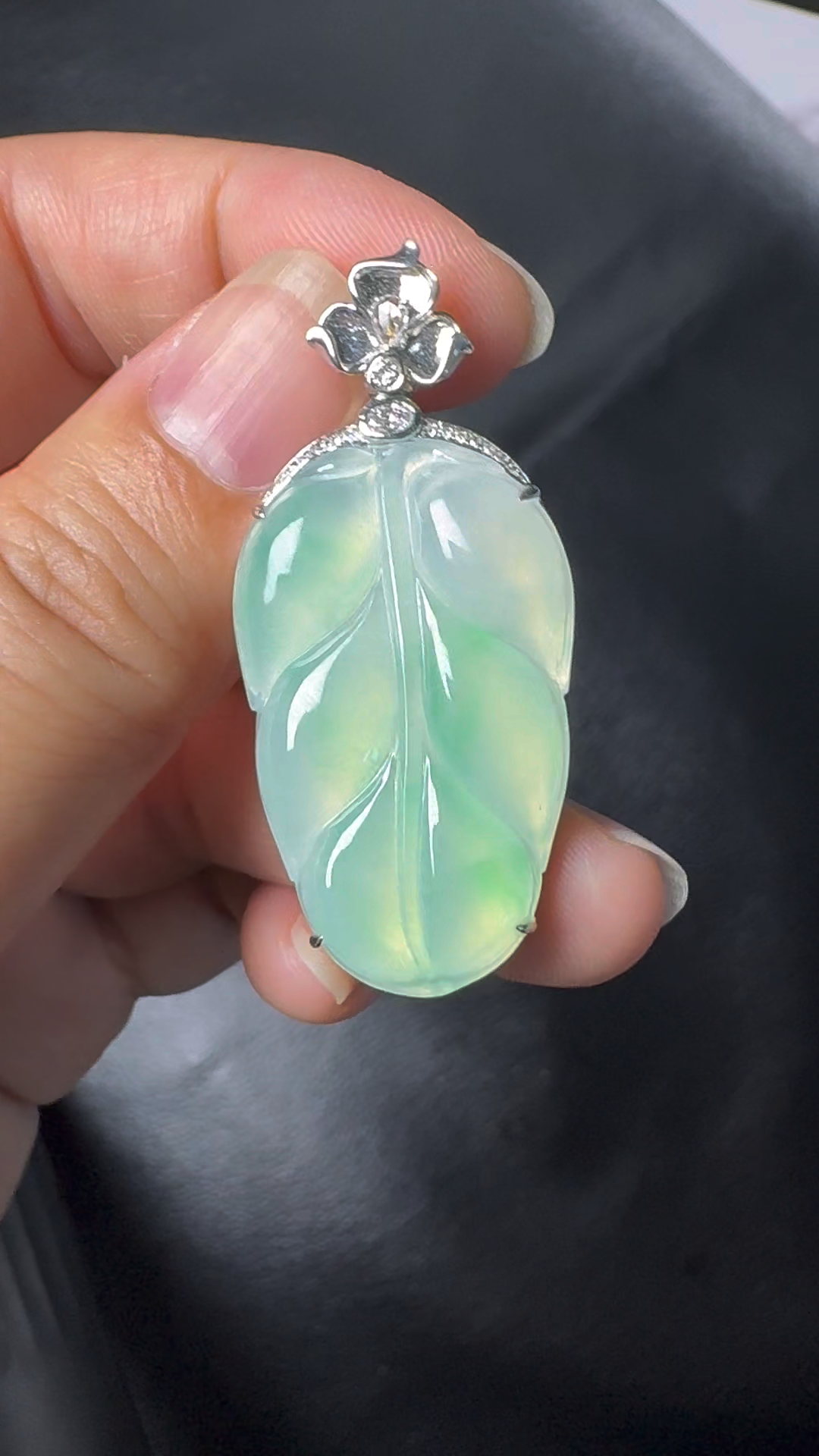 / 翡翠直播#8-18k白金鑽石翡翠樹葉吊墜