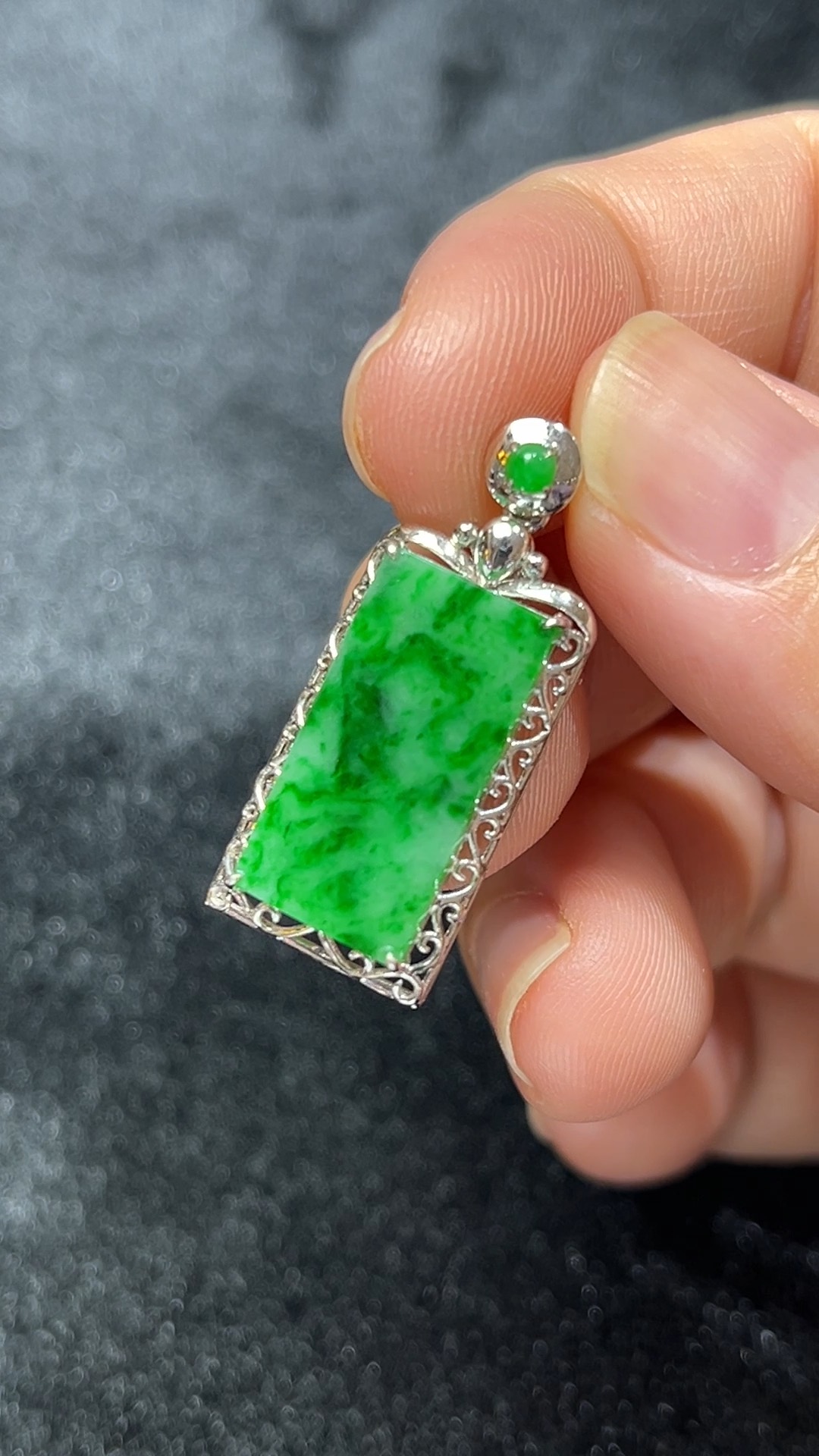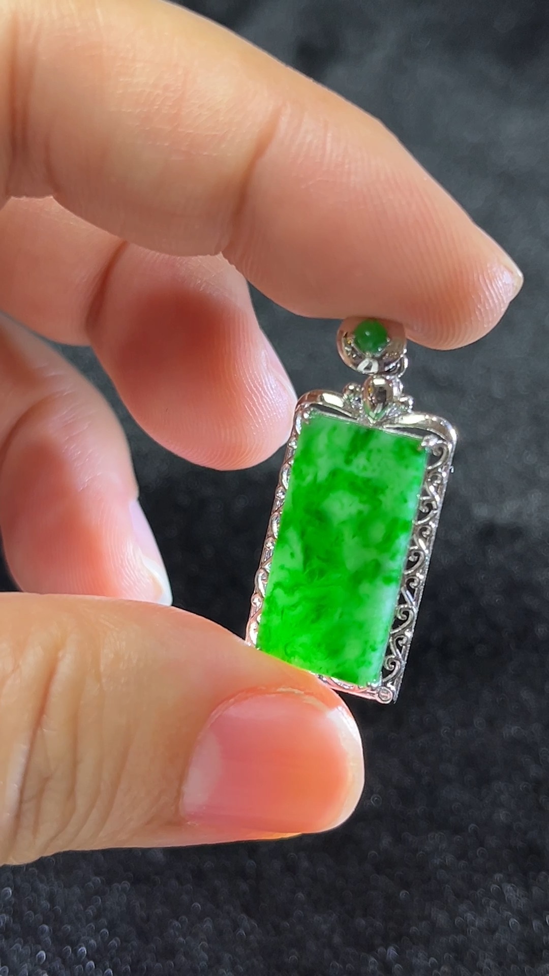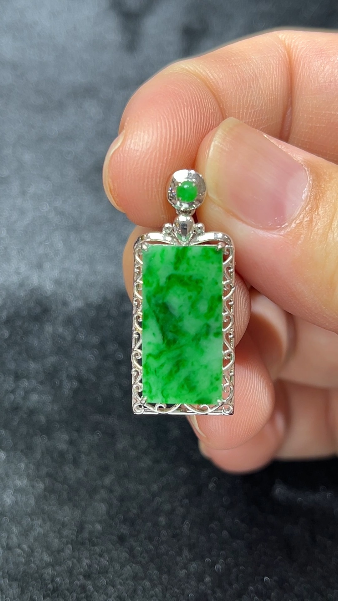 這款天然A級花青翡翠無事牌吊墜(編號#301),嚴選花青種翡翠玉料精心打磨而成,整體呈現自然分佈的深淺綠色調,質地細膩、潤澤通透,帶有山水般的天然紋理之美。無事牌造型方正素面,象徵「無事則福、平安吉祥」,寓意順遂無憂、萬事安好。外框搭配18K金鑲嵌設計,簡約中透出高貴氣息,為整體增添典雅質感。這款吊墜兼具實戴性與收藏價值,既可作為日常護身飾品,也可作為傳遞祝願的心意之禮。