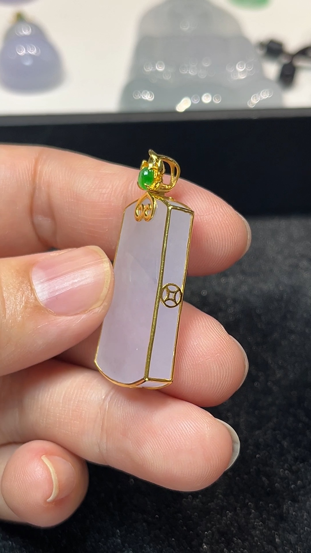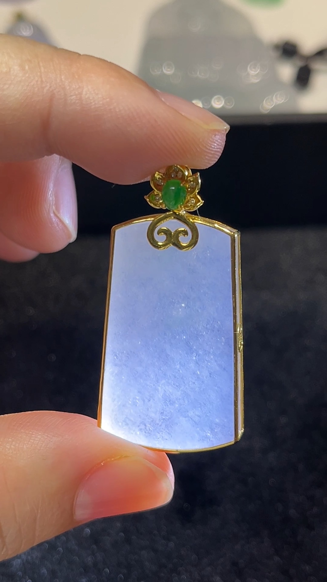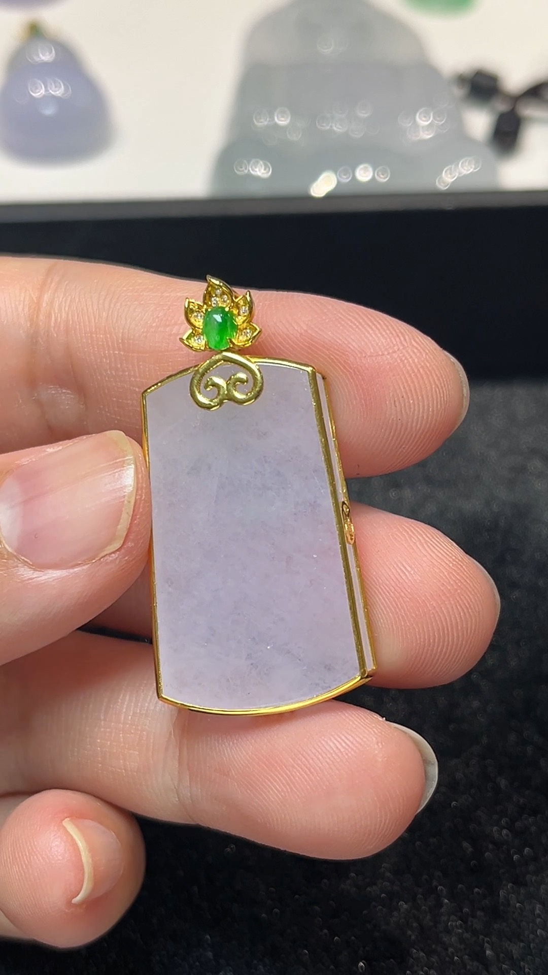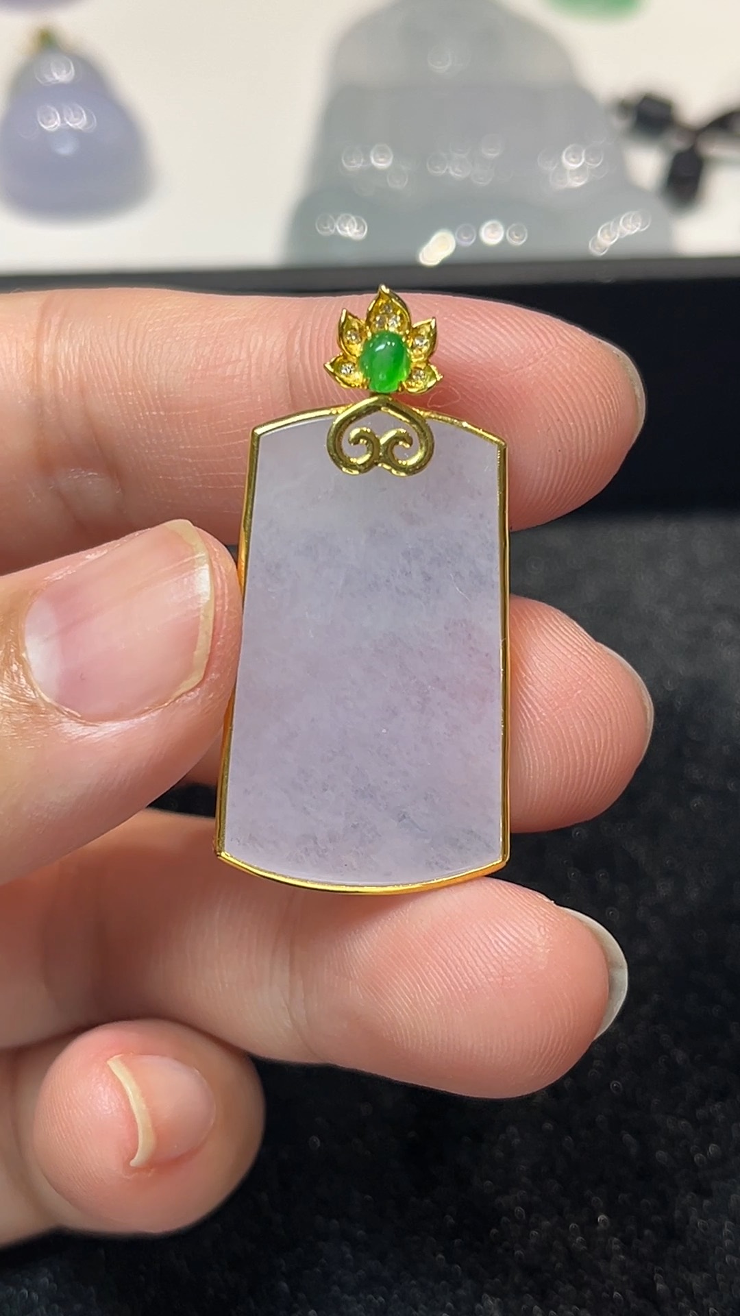 這款天然A級紫羅蘭翡翠無事牌吊墜(編號#276),選用質地細膩、色澤柔和的紫羅蘭翡翠精工打磨而成,通體素面無紋,呈長方牌形,寓意「無事即福、平安順遂」。搭配18K白金鑲嵌邊框,線條簡潔俐落,增添一絲現代奢雅質感,既襯托玉石本色,也提升整體工藝水準。紫羅蘭翡翠象徵高貴與祥和,是一款融合東方意境與現代品味的心靈守護之作。