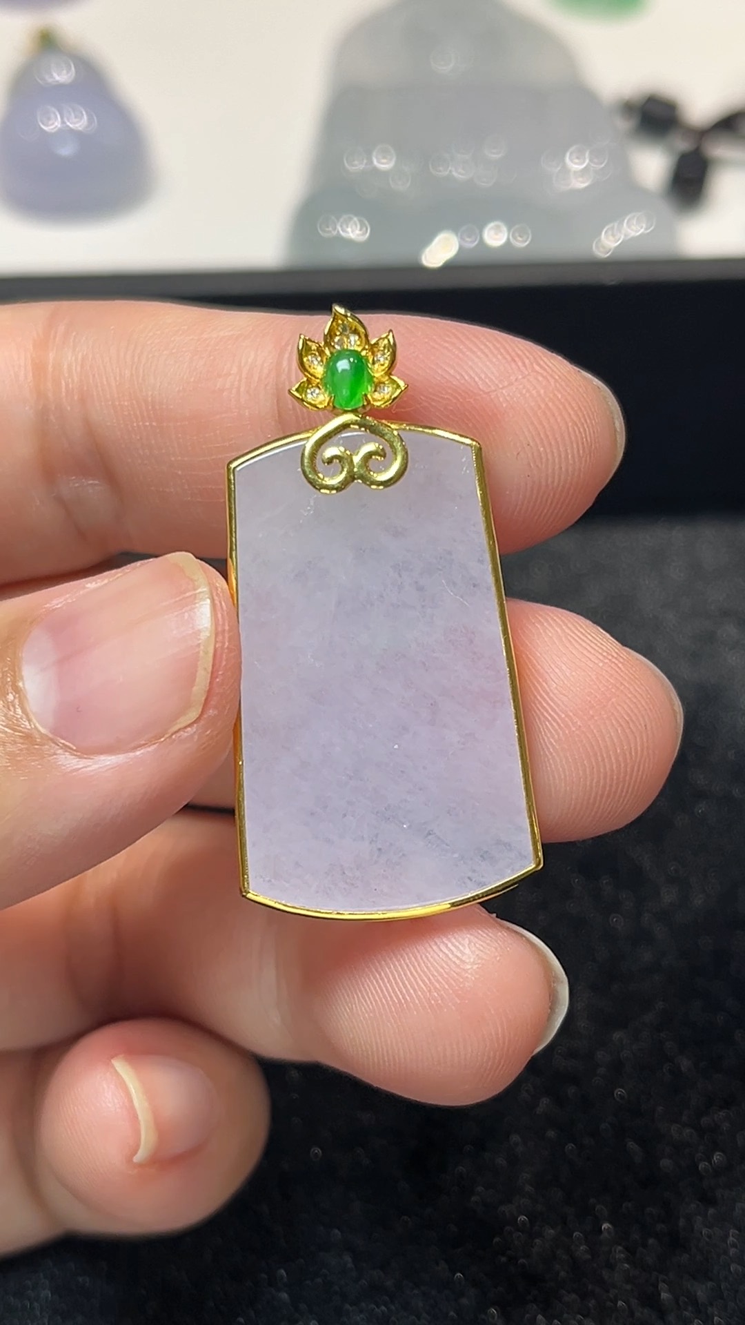 無事為福|天然A級紫羅蘭翡翠18K鑲嵌無事牌吊墜 #276