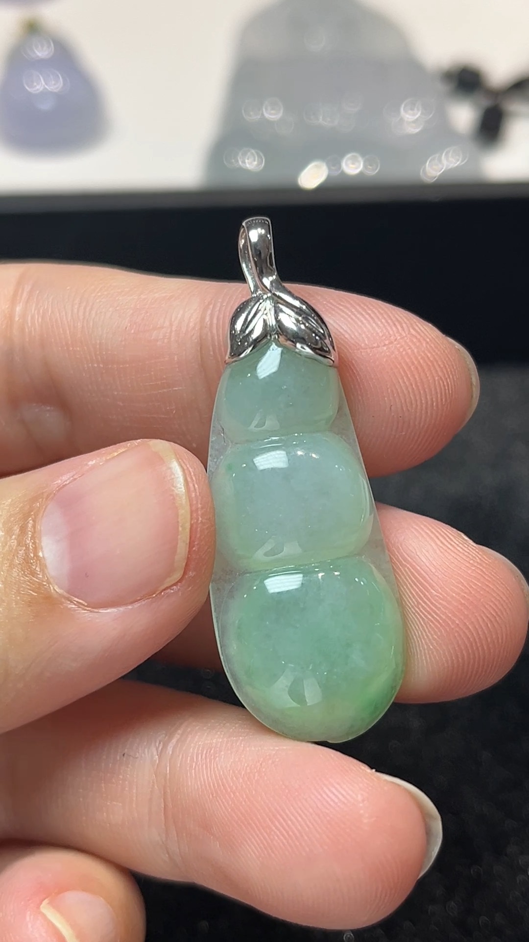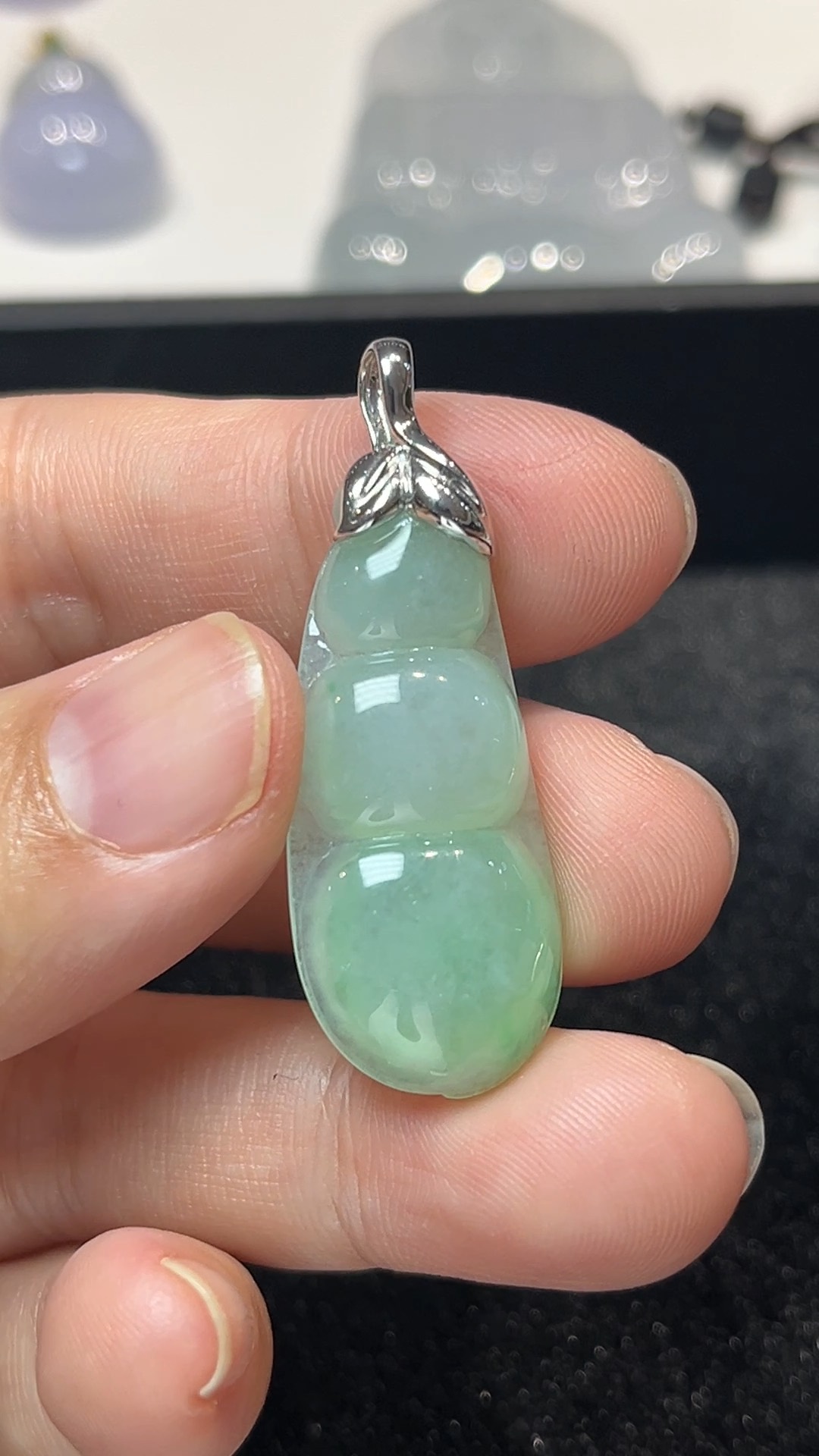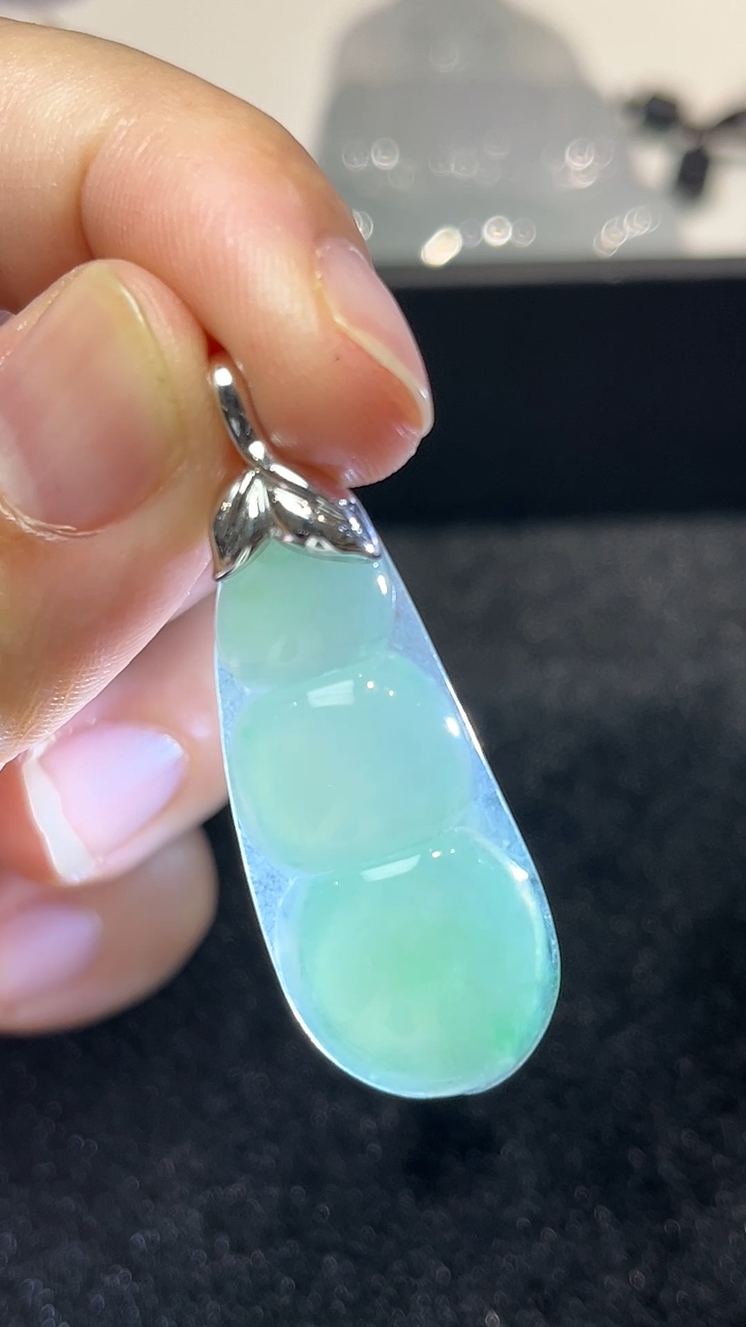 福聚一莢|天然淺綠翡翠18K白金鑲嵌福豆墜飾 翡翠直播#275