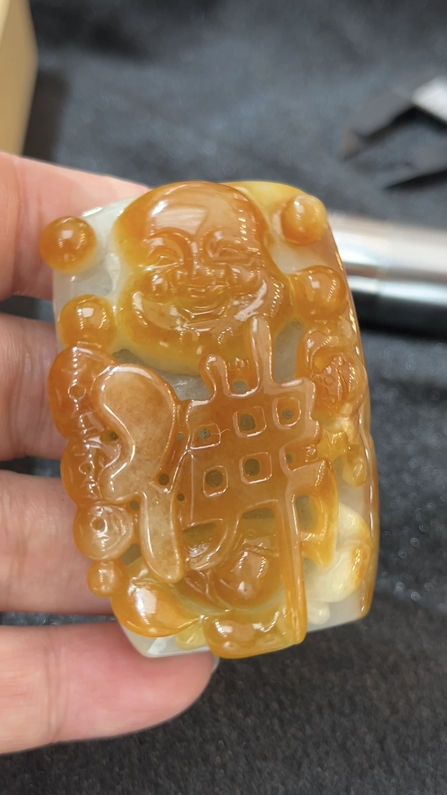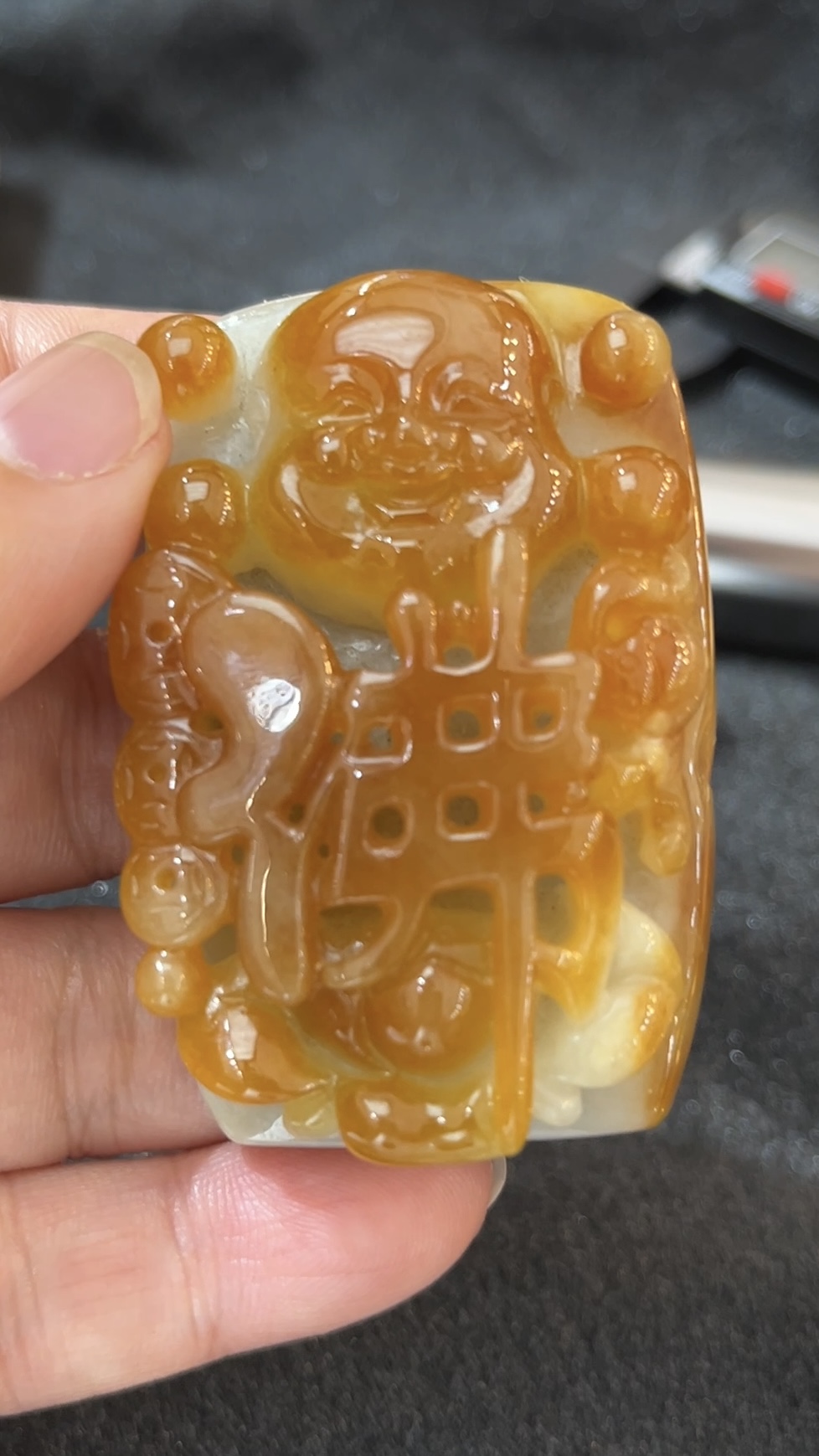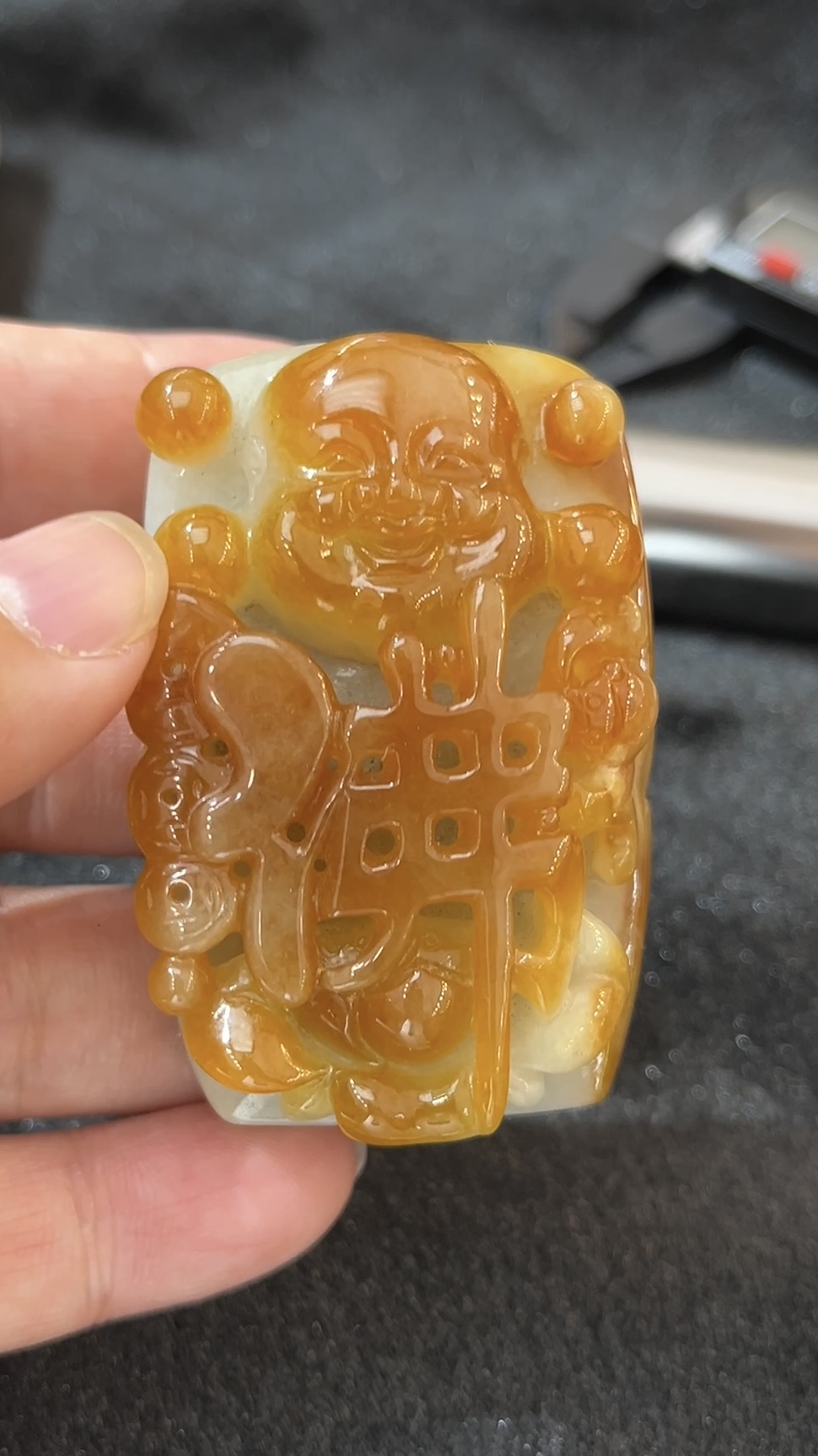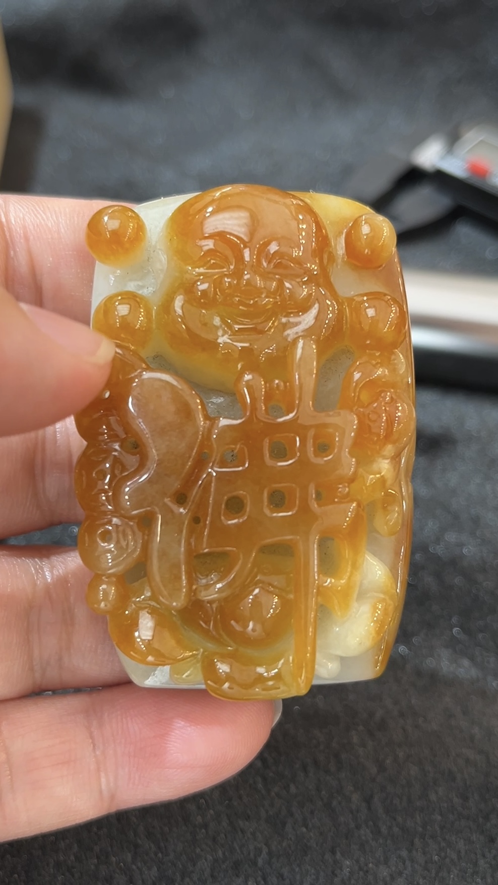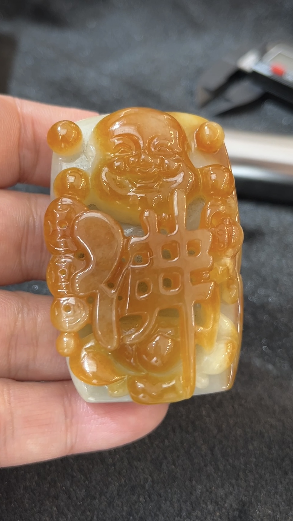 紅黃翡翠逍遙佛公吊墜|大佛字雕刻設計|天然 A 貨玉器吉祥推薦編號 #466