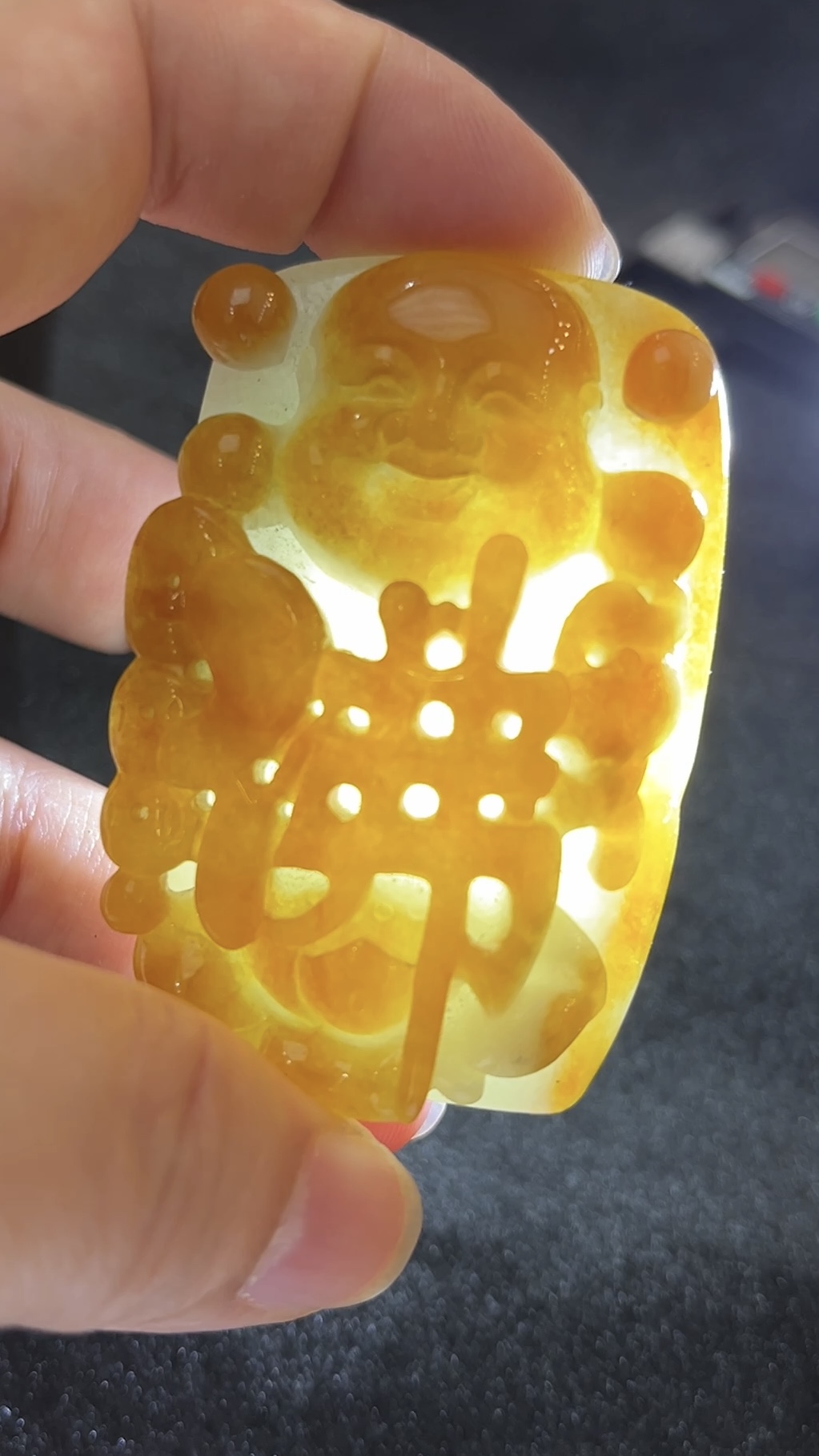 紅色象徵喜慶、熱情與守護,黃色代表智慧、財富與吉祥,兩者融合更顯富貴靈光,是一款集美學、文化與精神信仰於一身的玉器作品。