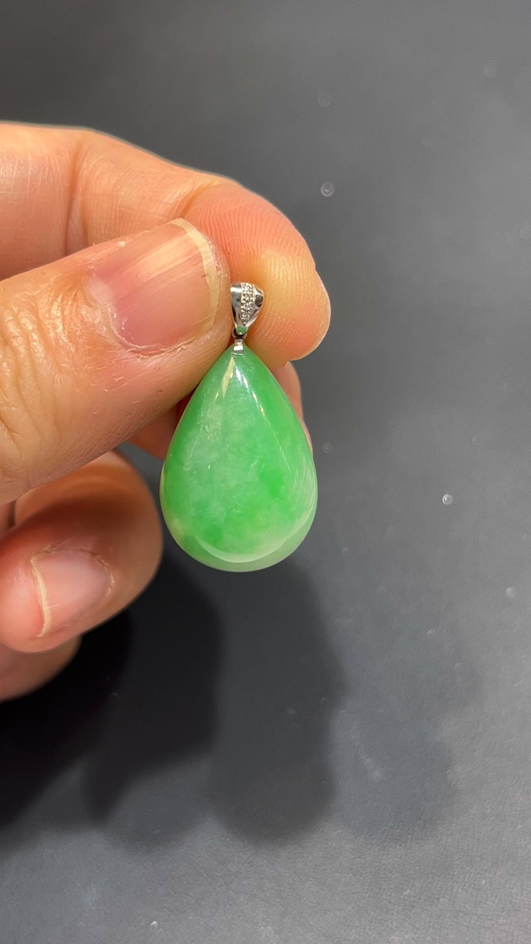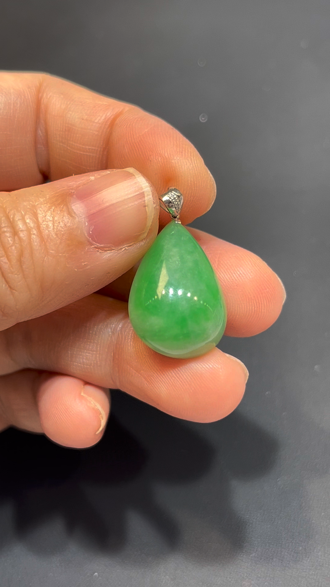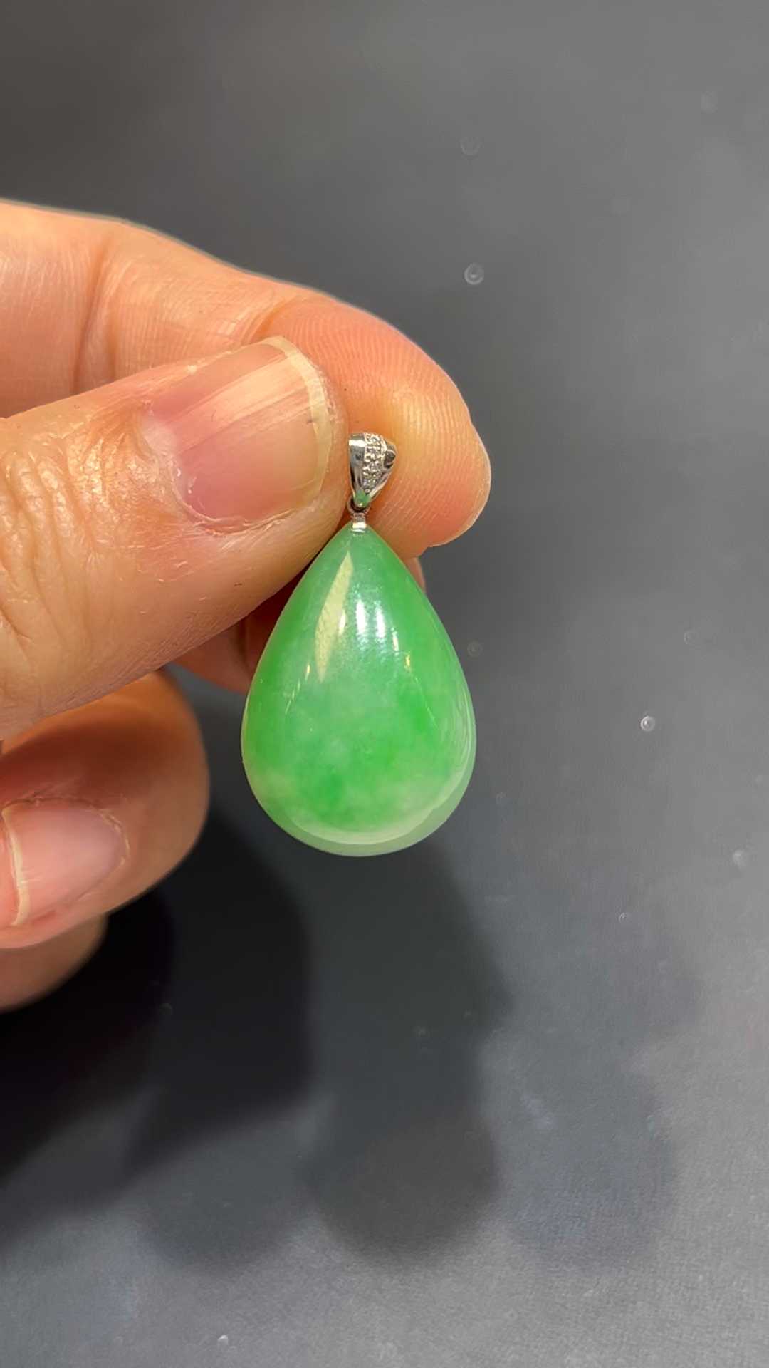 翡翠水滴吊墜,編號836,嚴選天然緬甸翡翠玉料,質地細膩潤澤,種好通透。整體呈現鮮綠色澤,亮麗奪目,展現翡翠獨有的靈性美感。