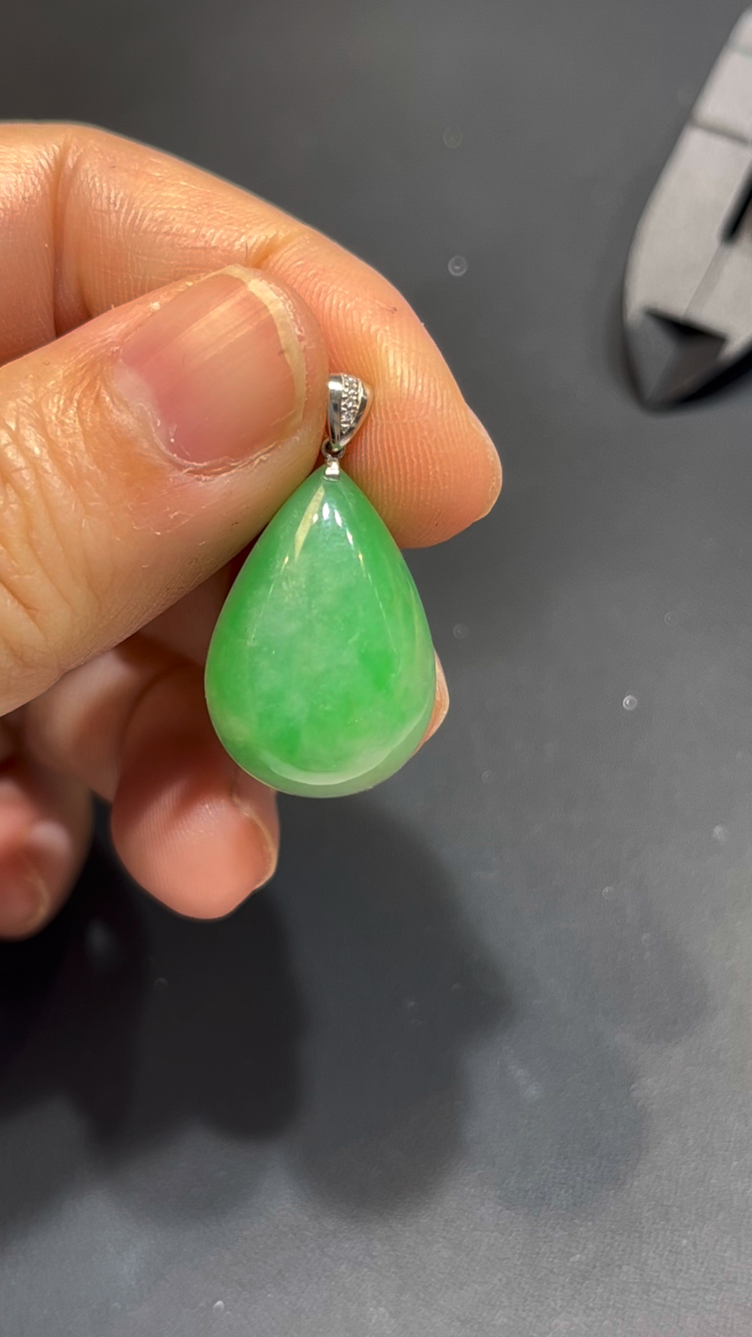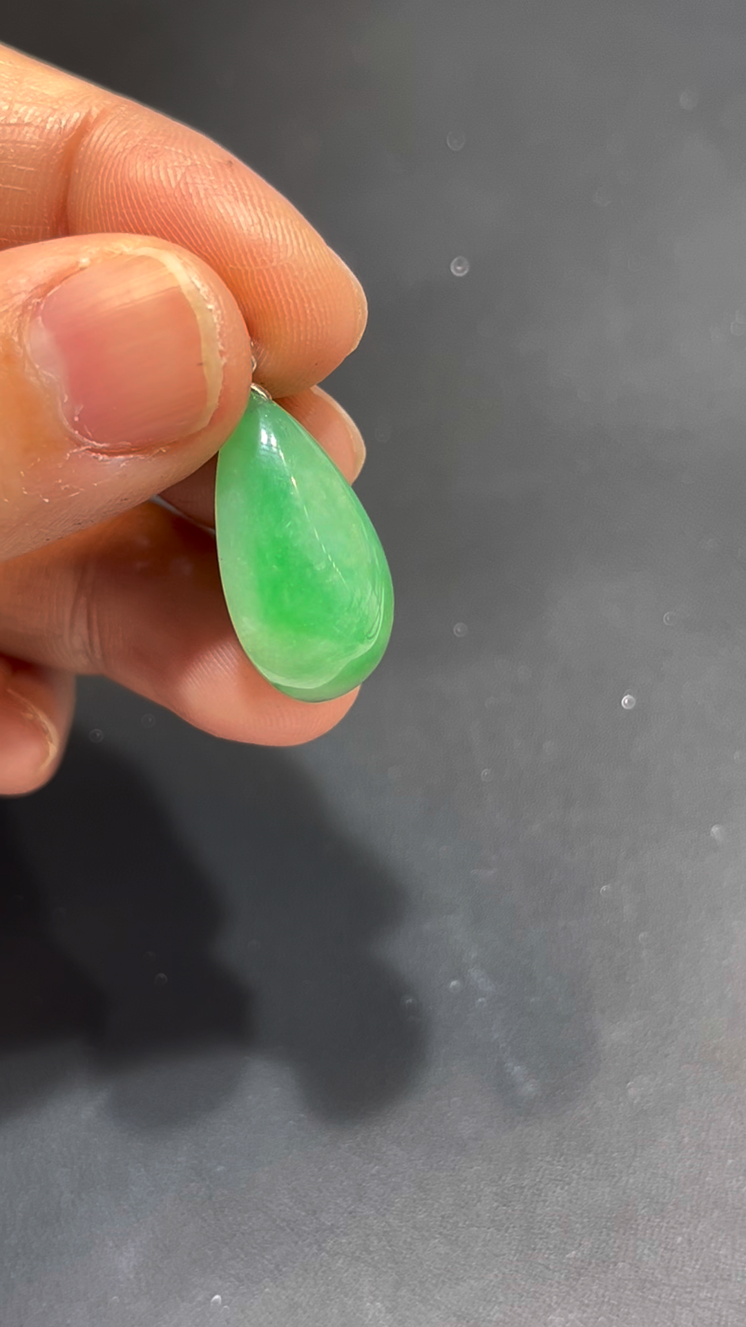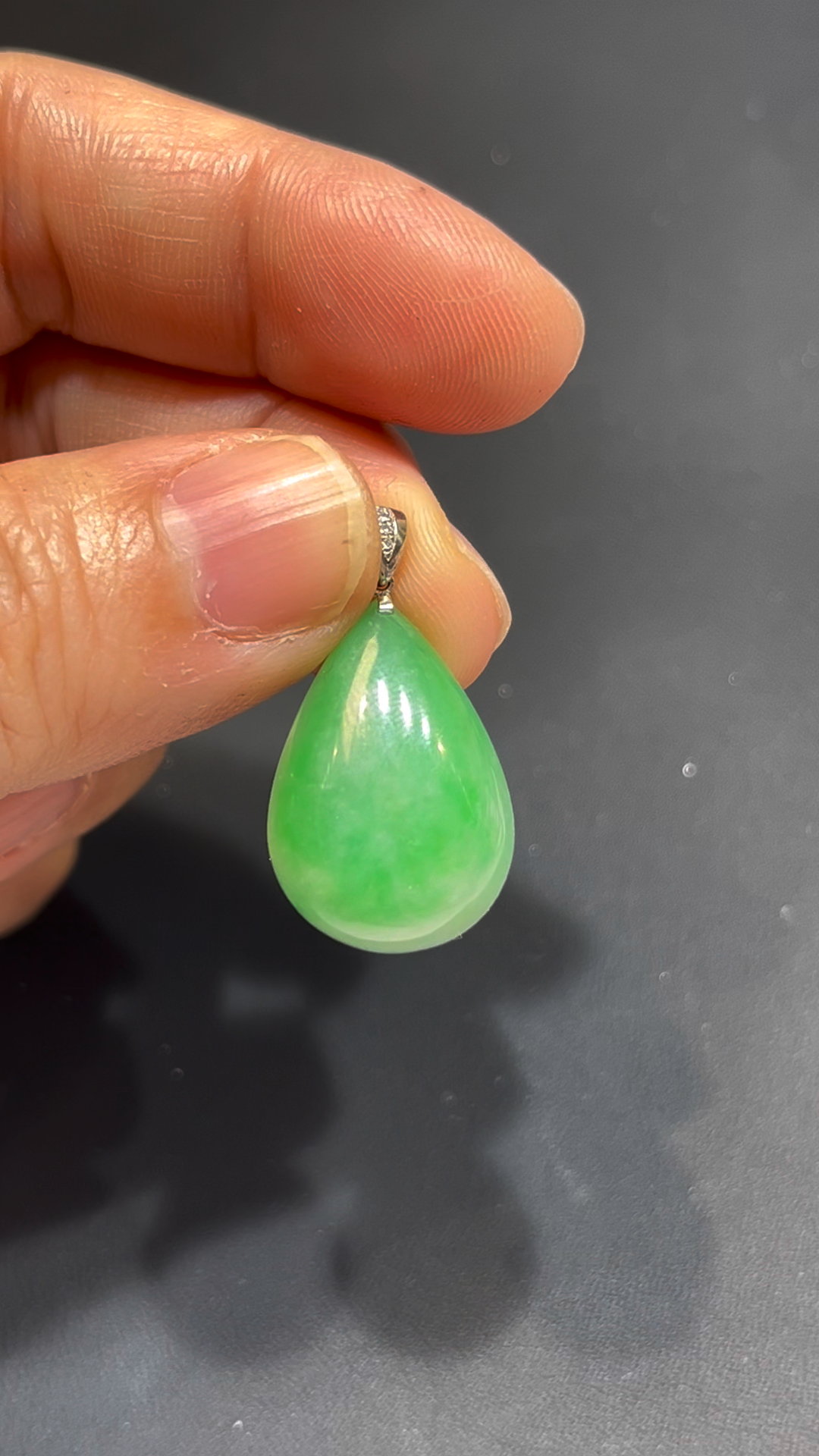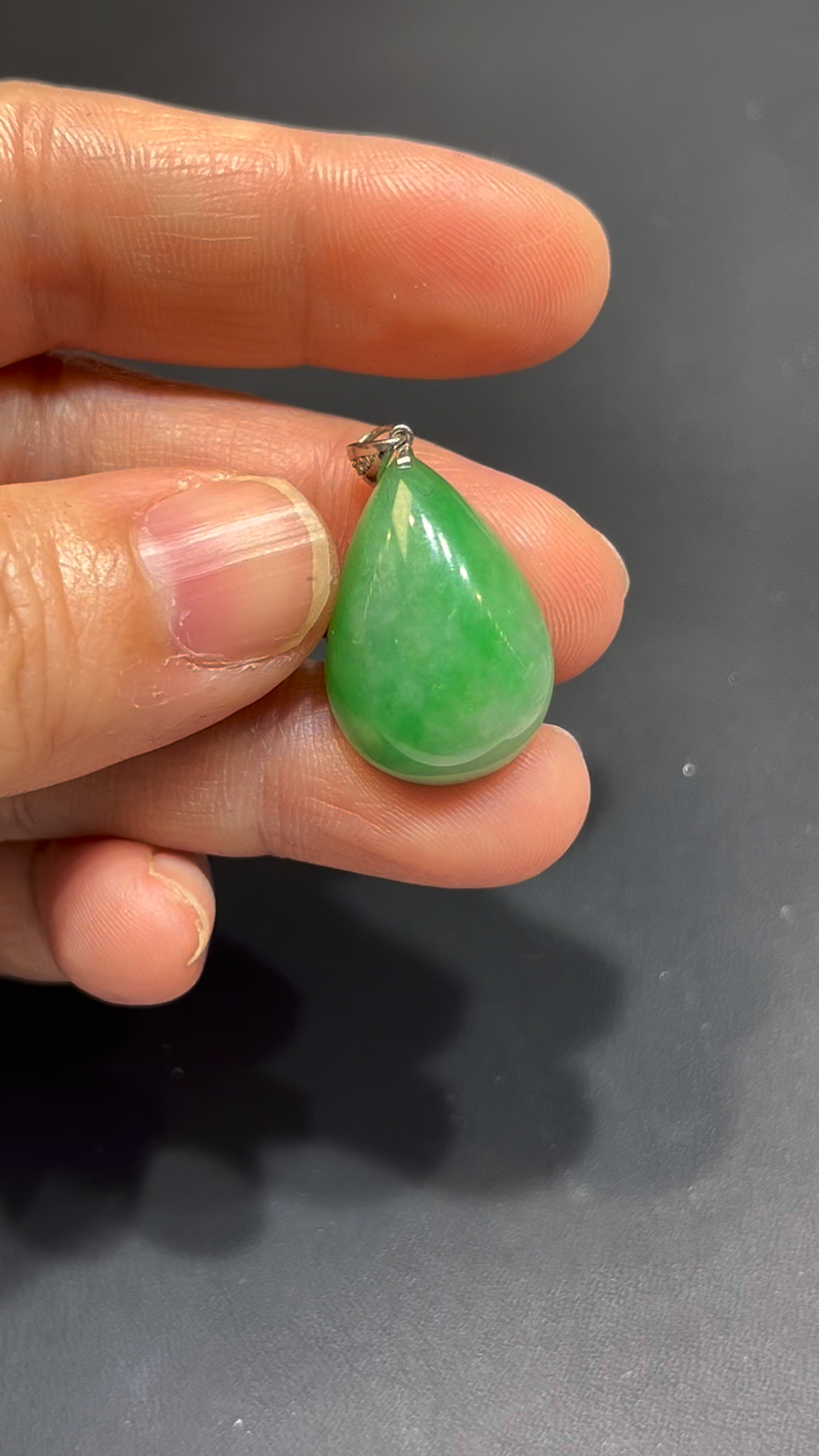 翡翠水滴吊墜,編號836,嚴選天然緬甸翡翠玉料,質地細膩潤澤,種好通透。整體呈現鮮綠色澤,亮麗奪目,展現翡翠獨有的靈性美感。