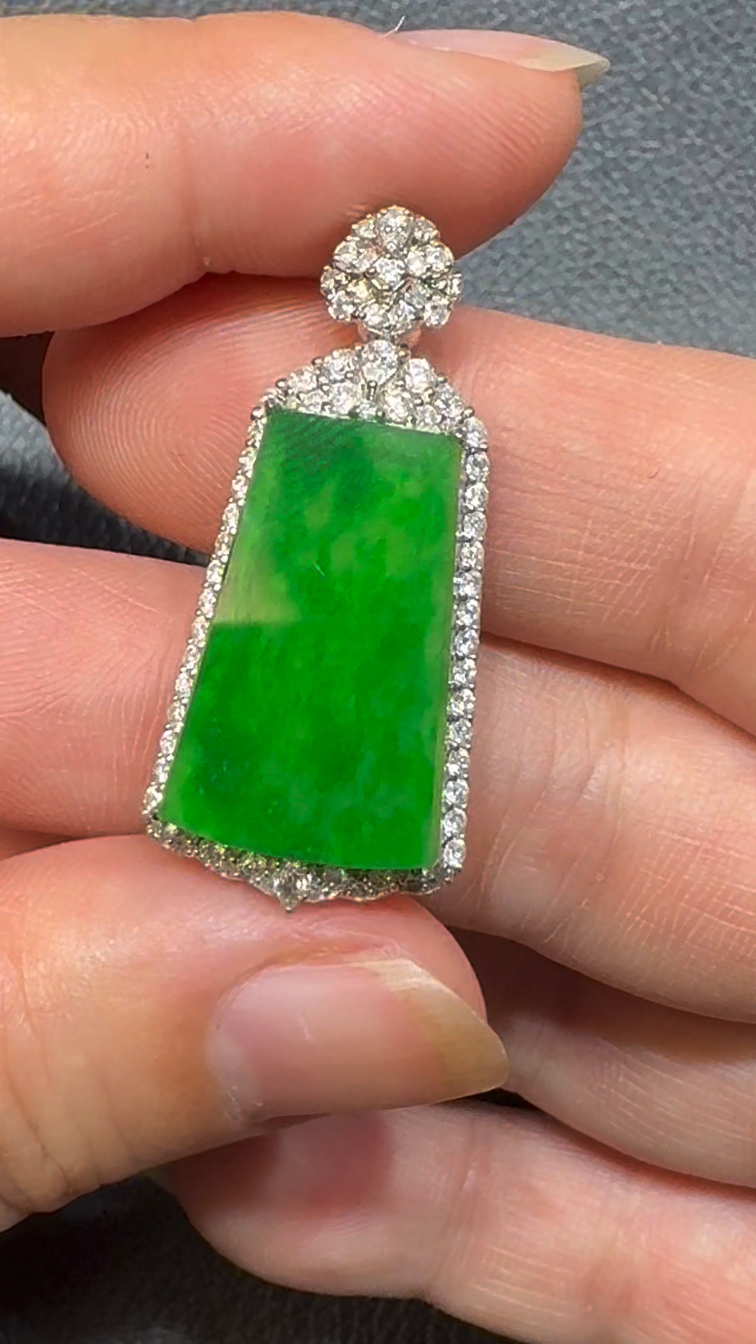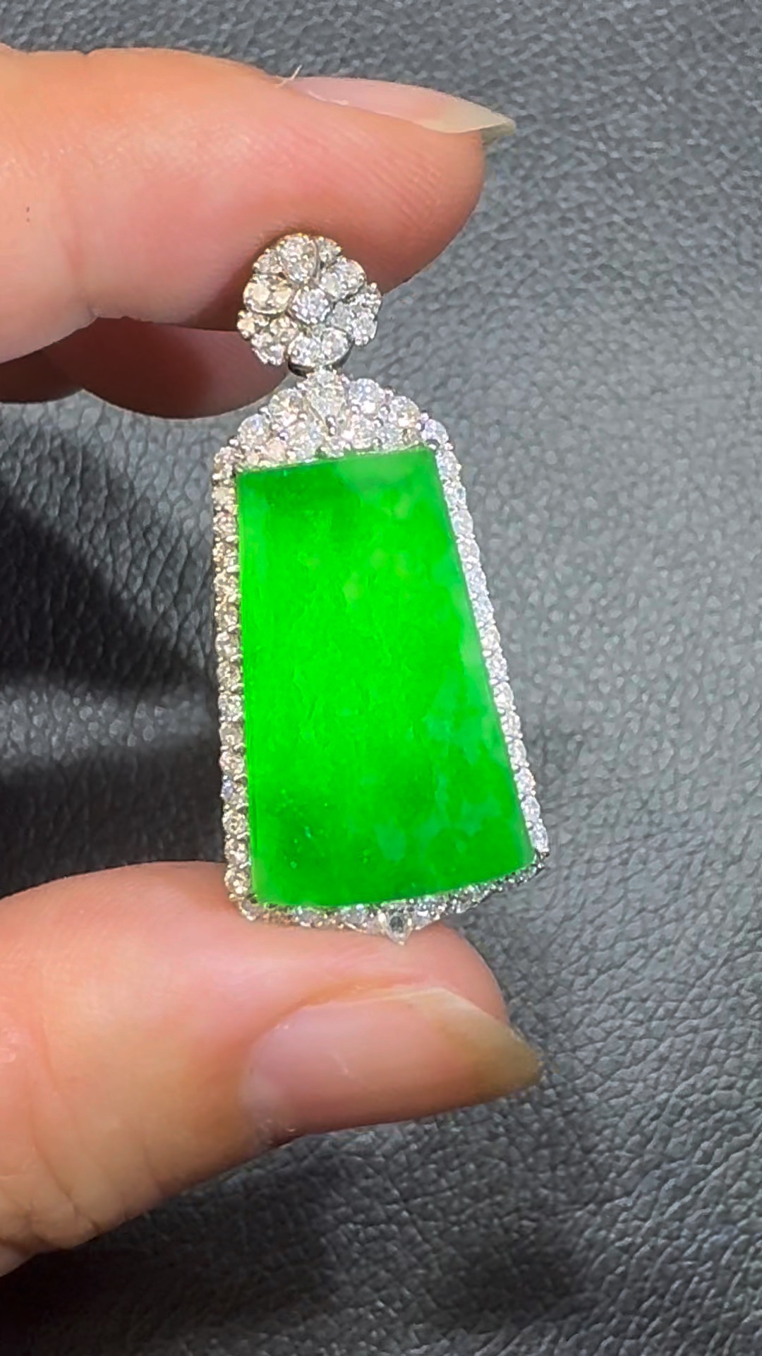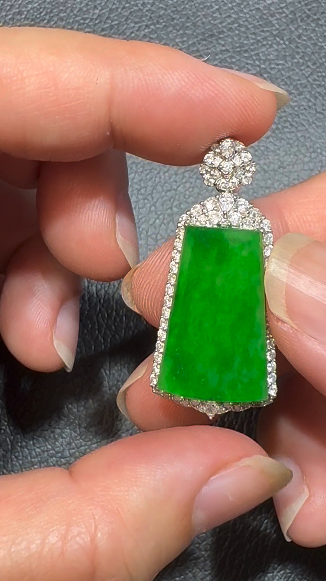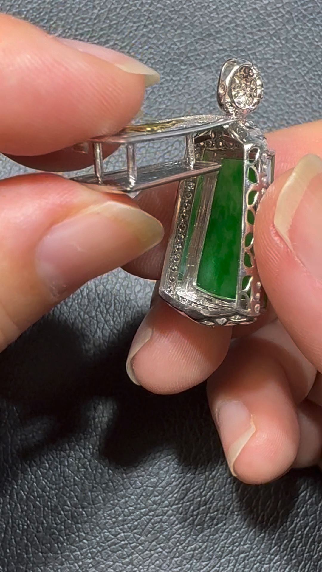 翡翠直播商品#106-18K白金鑽石翡翠陽綠無事牌吊墜