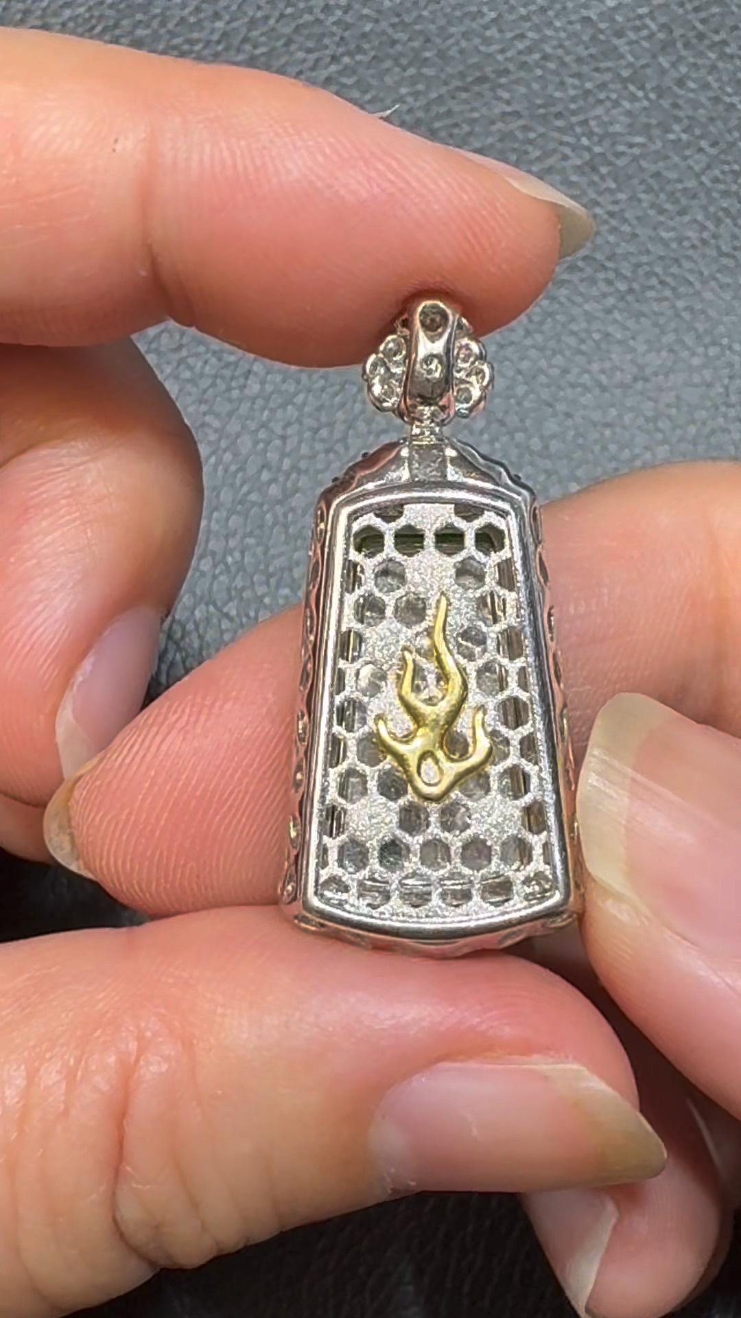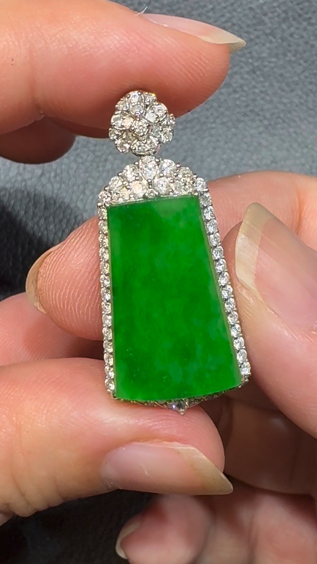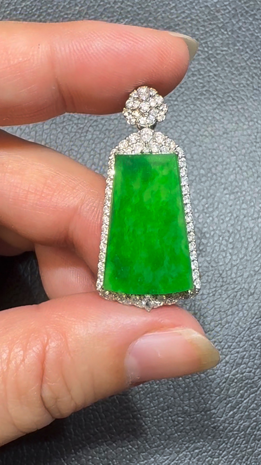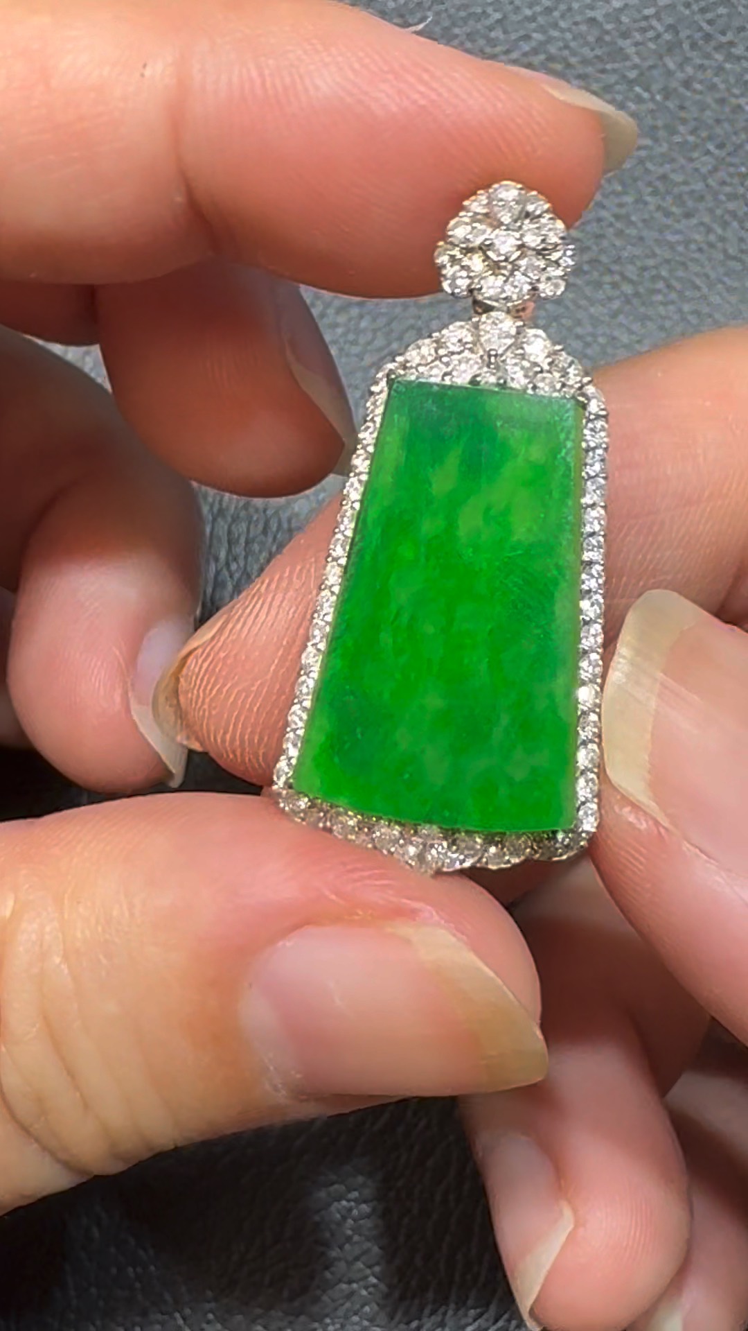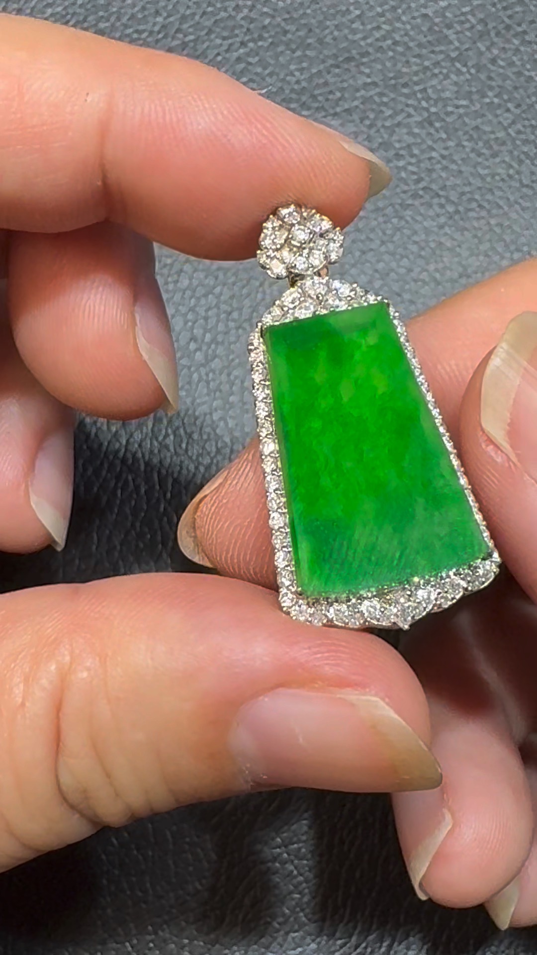 翡翠直播商品#106-18K白金鑽石翡翠陽綠無事牌吊墜