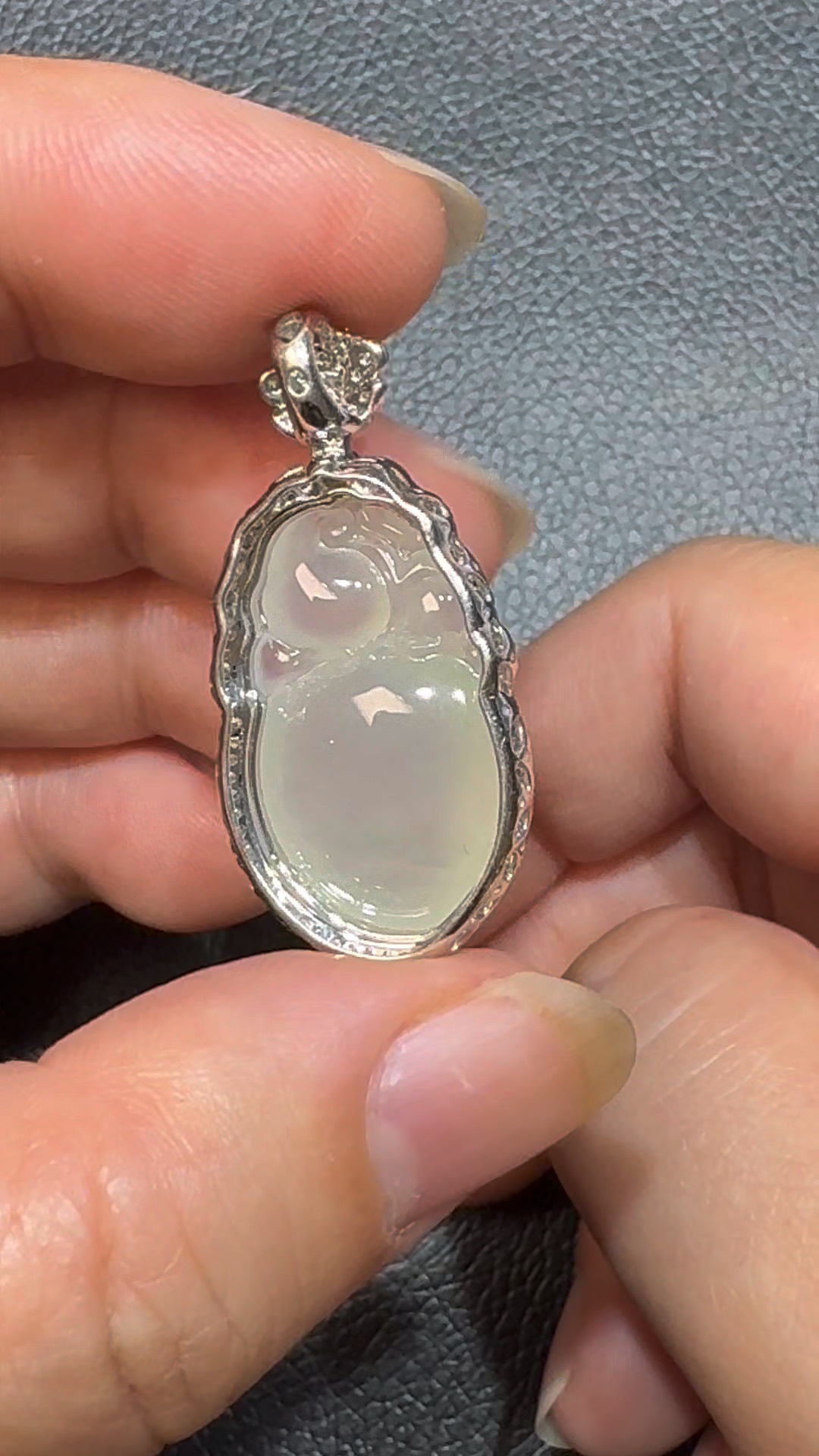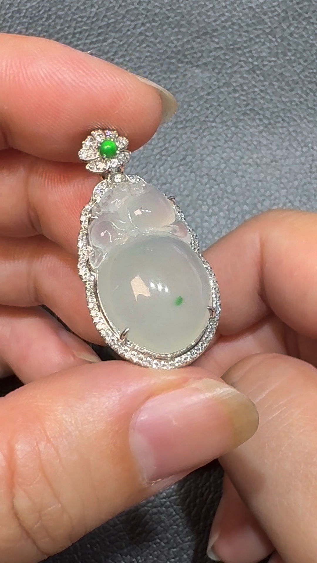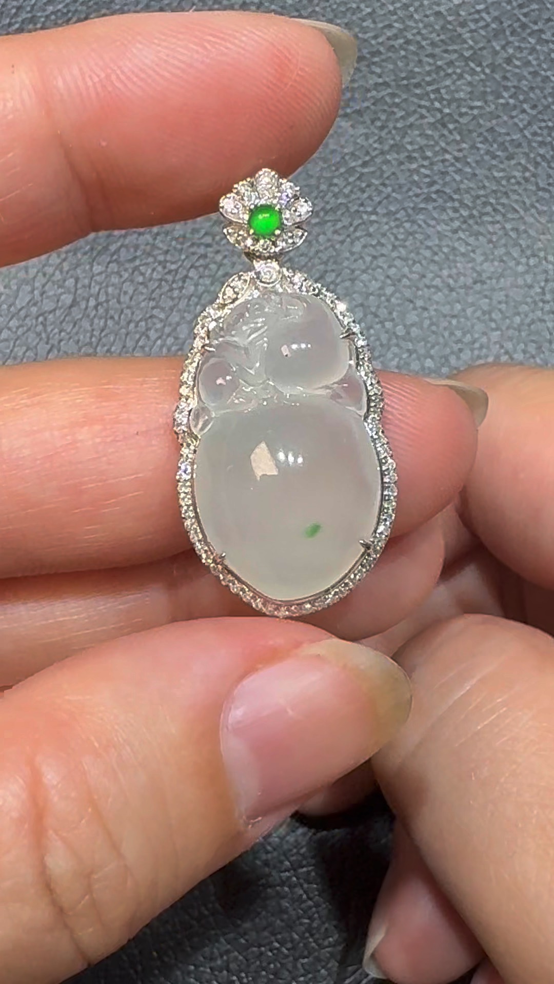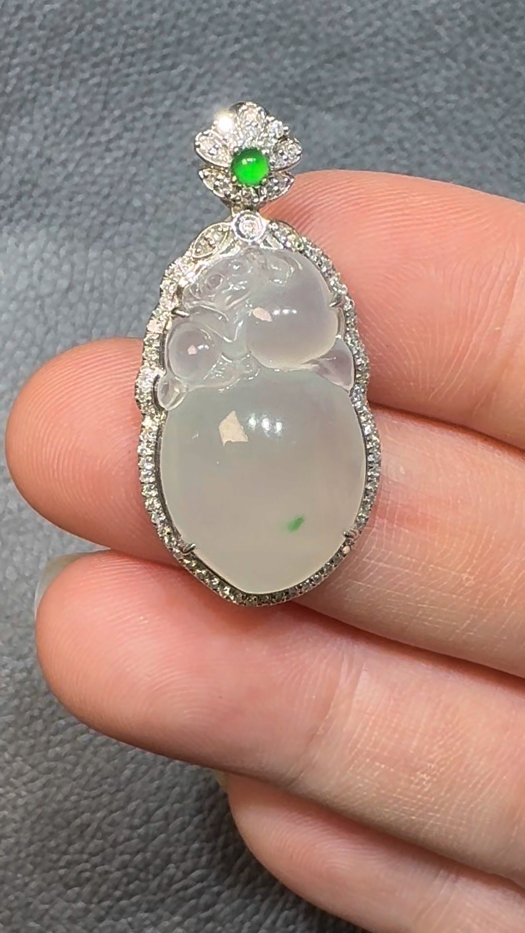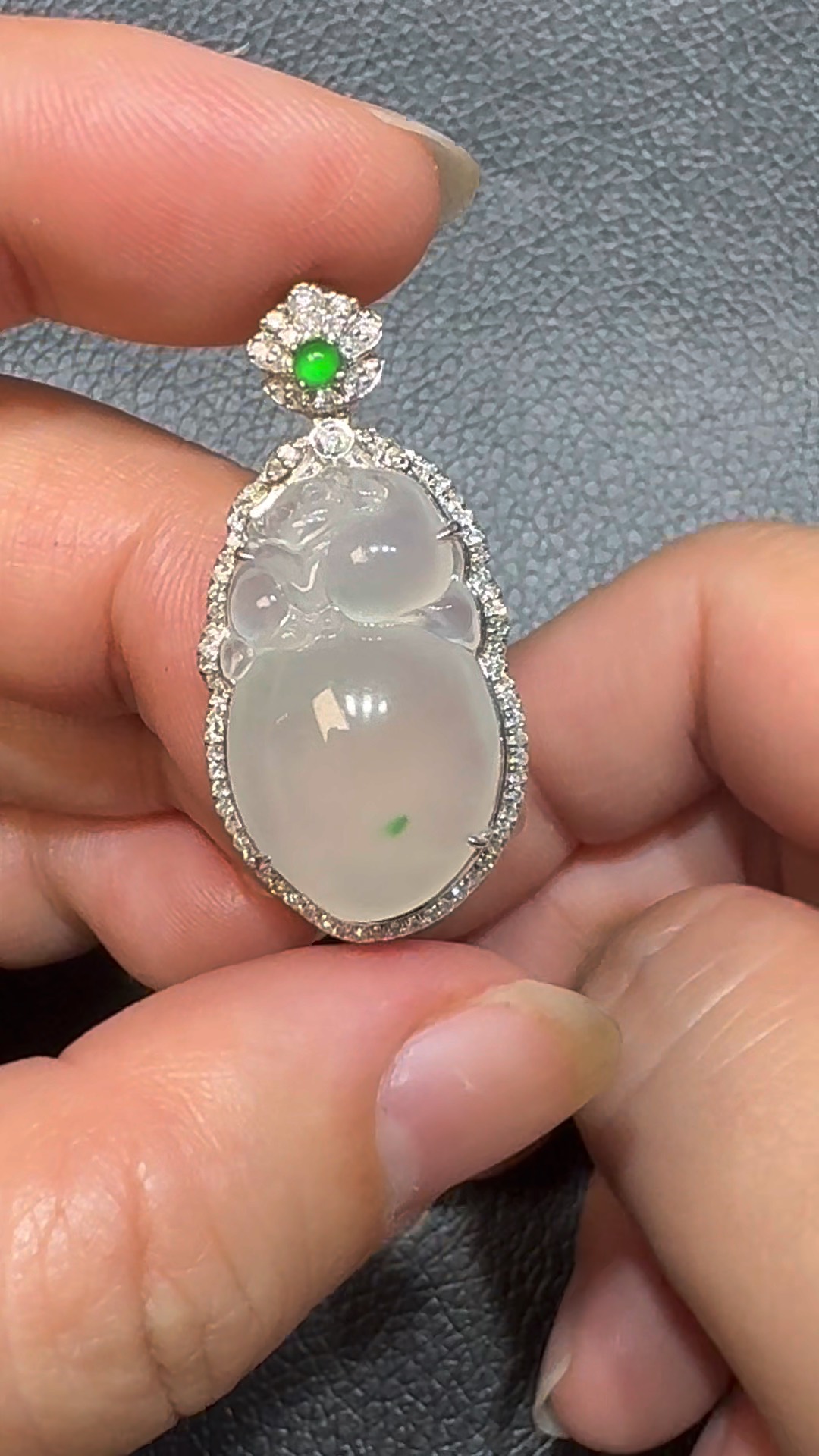 翡翠直播商品#107-18K白金鑽石翡翠猴桃翡翠吊墜