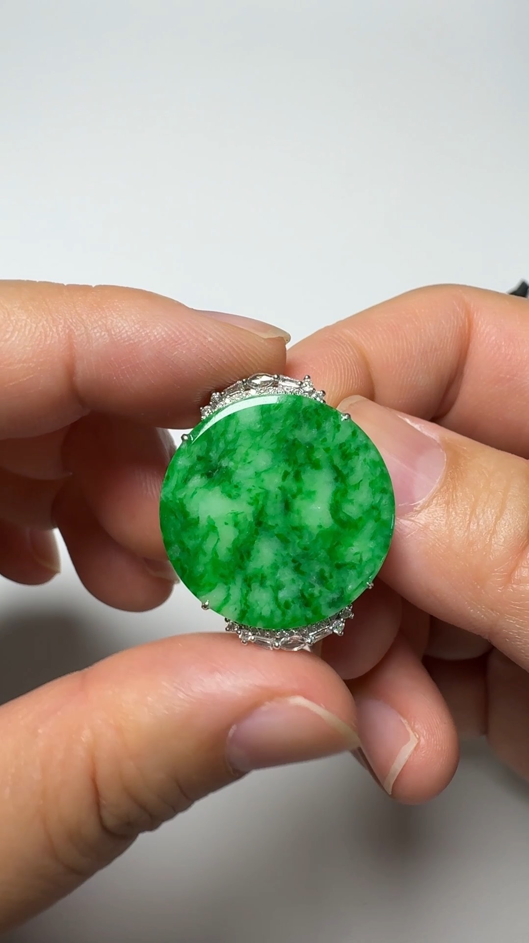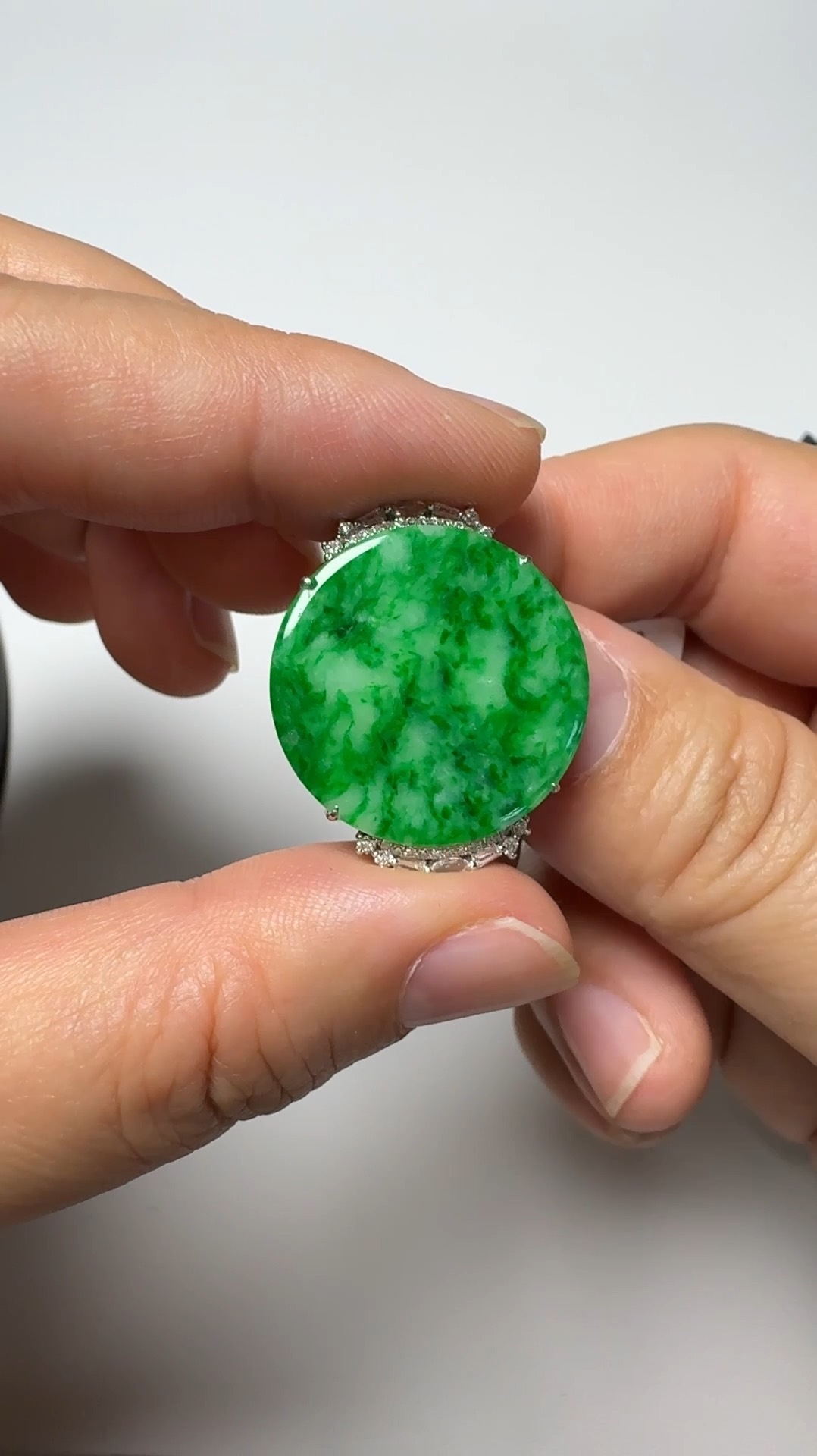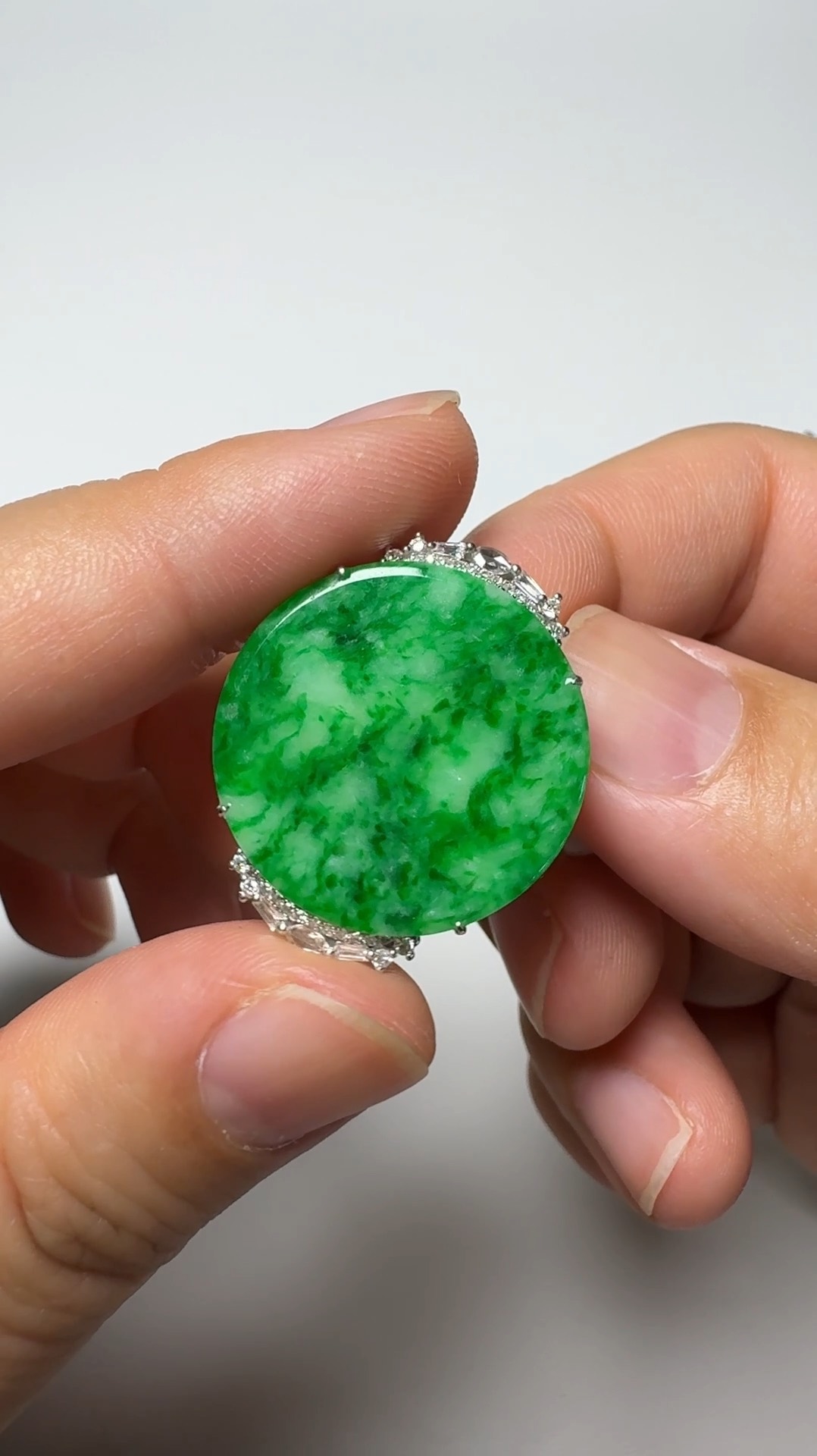 翡翠直播商品#150-18K白金鑽石平安扣無事牌翡翠吊墜
