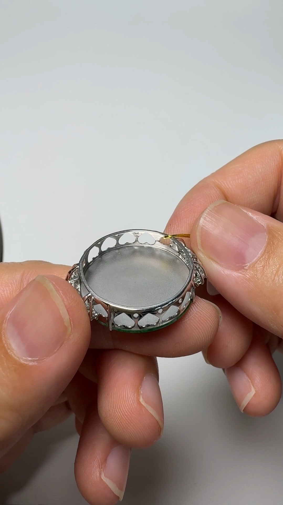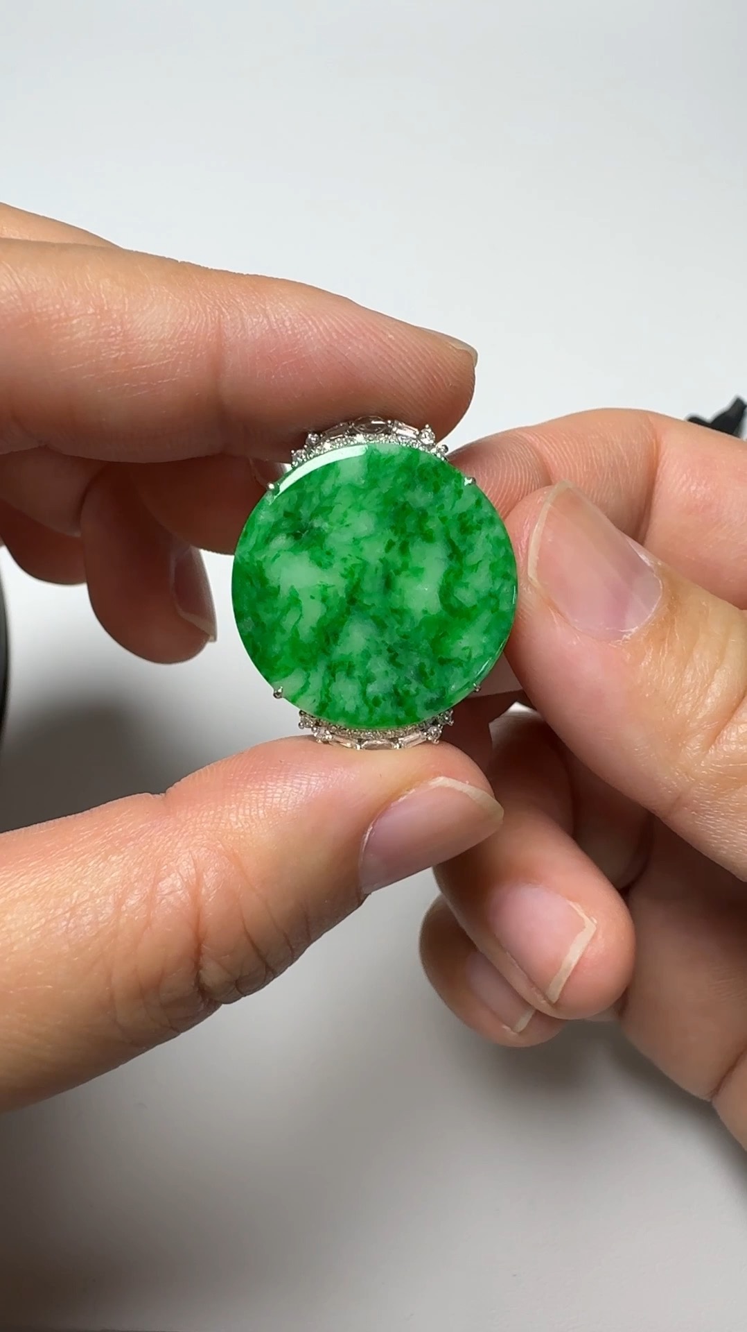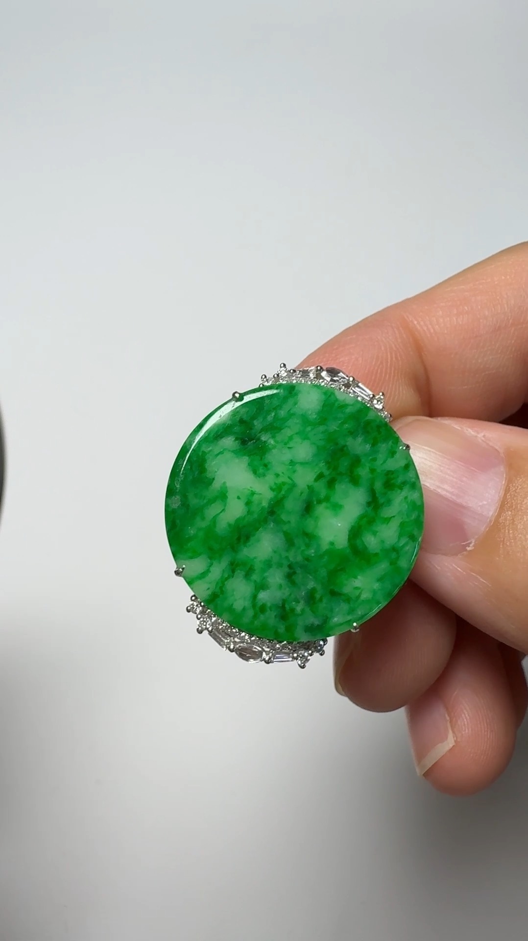 翡翠直播商品#150-18K白金鑽石平安扣無事牌翡翠吊墜