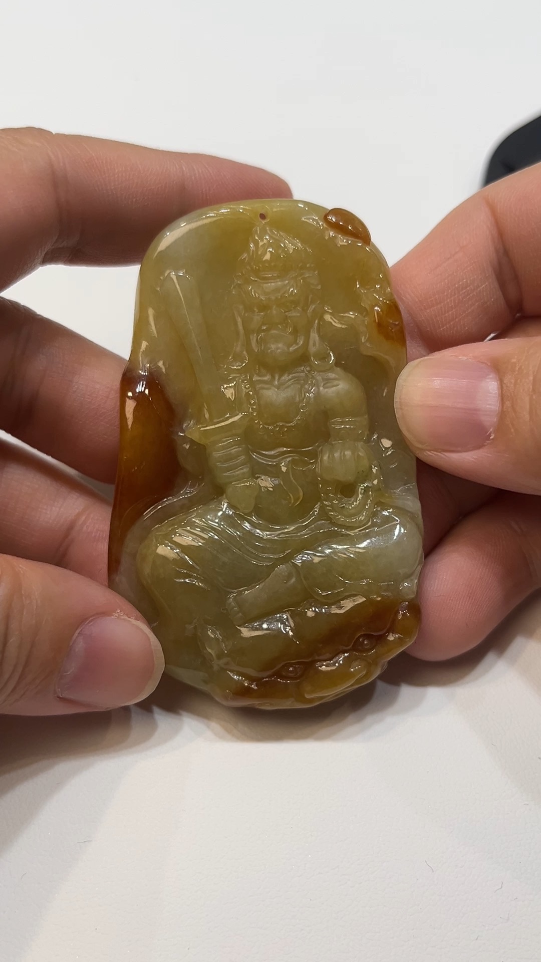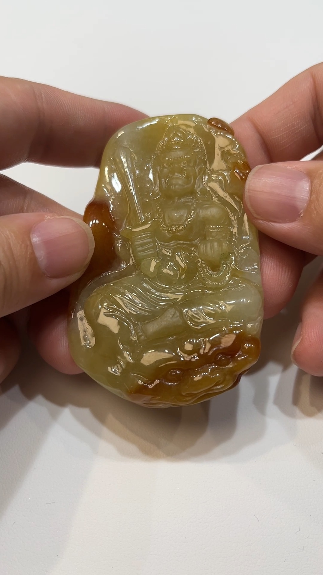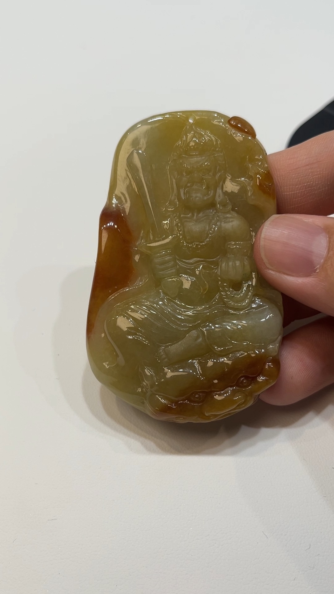 翡翠直播商品#176-黃翡不動明王不動尊菩薩翡翠吊墜