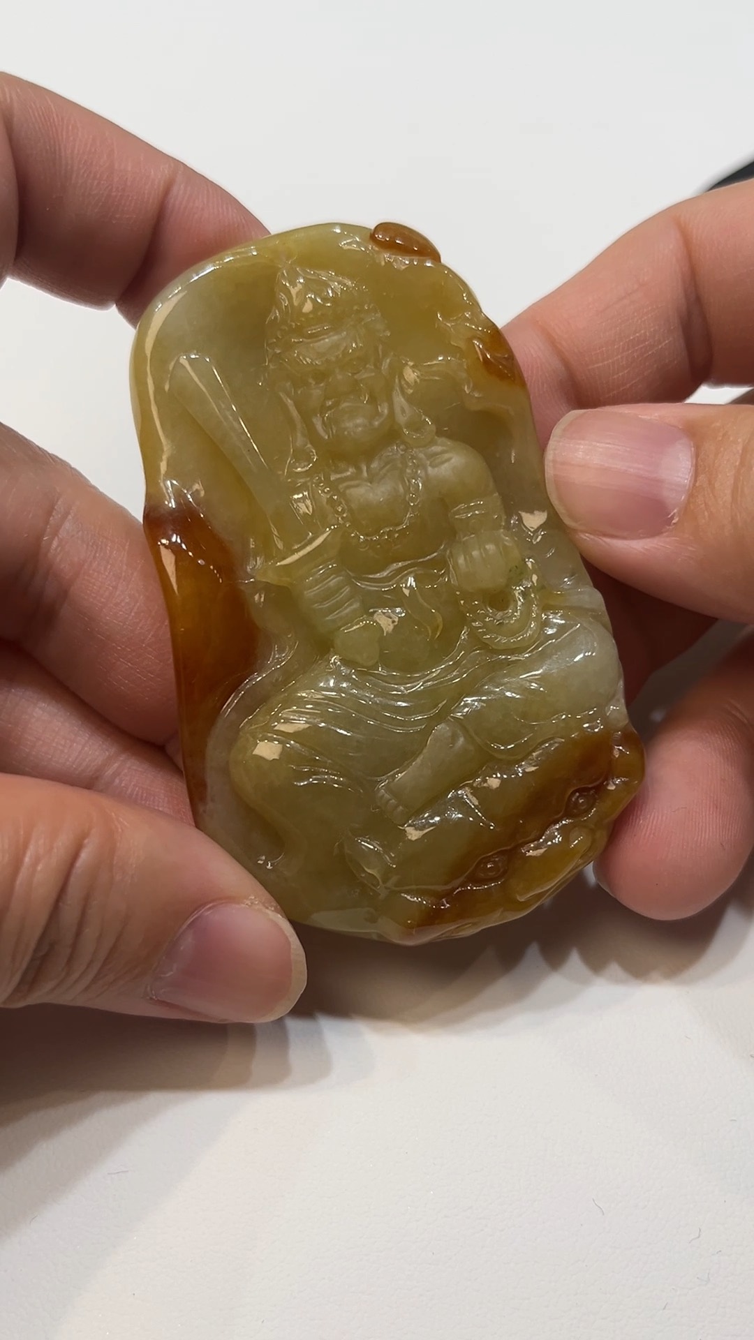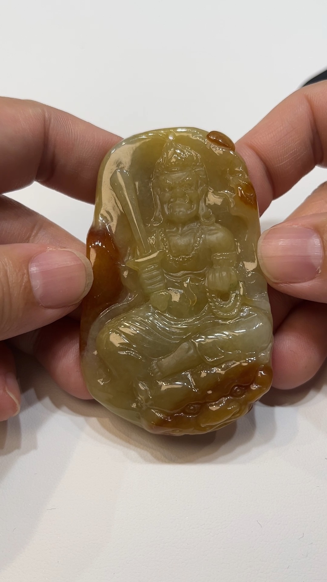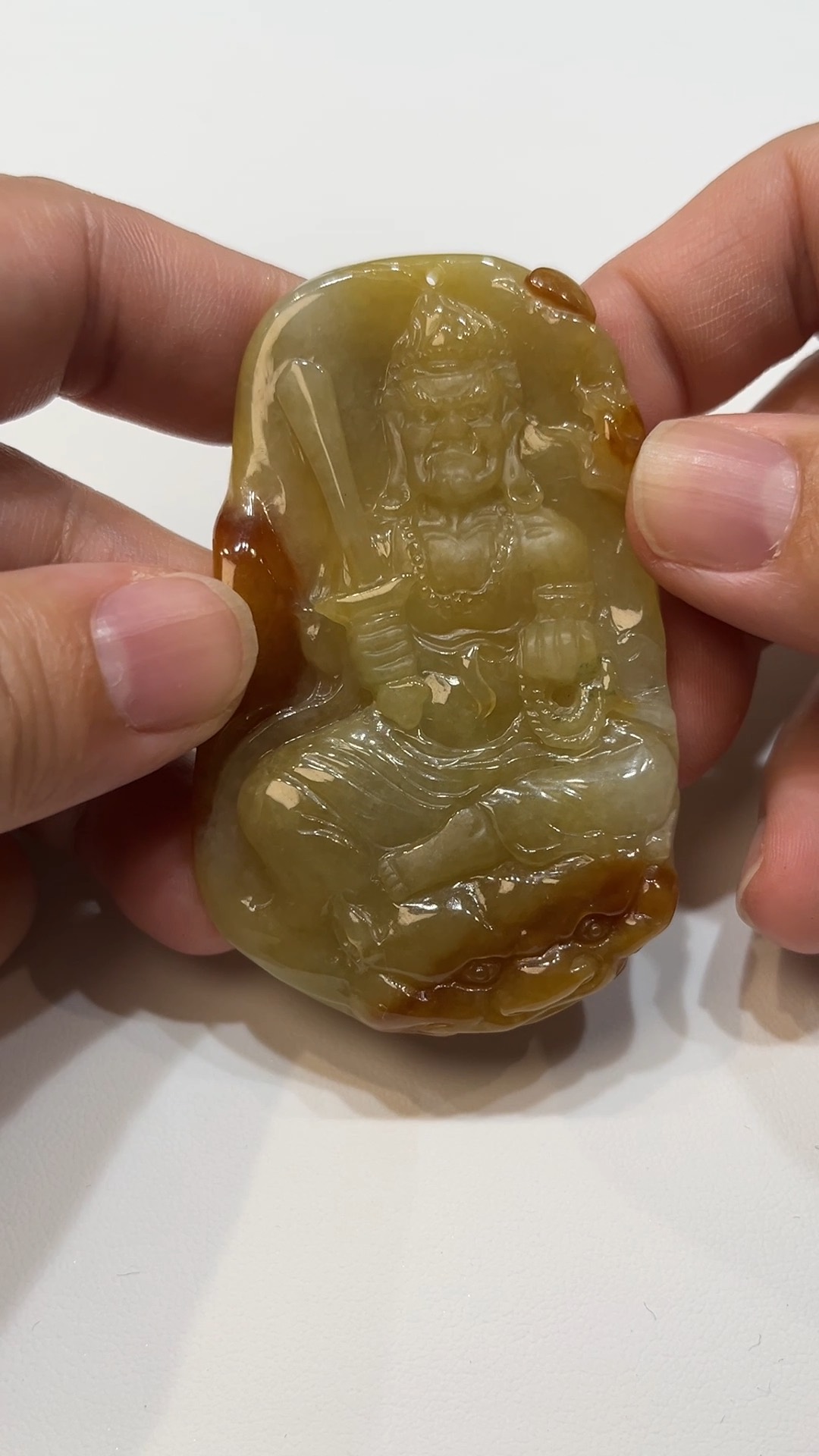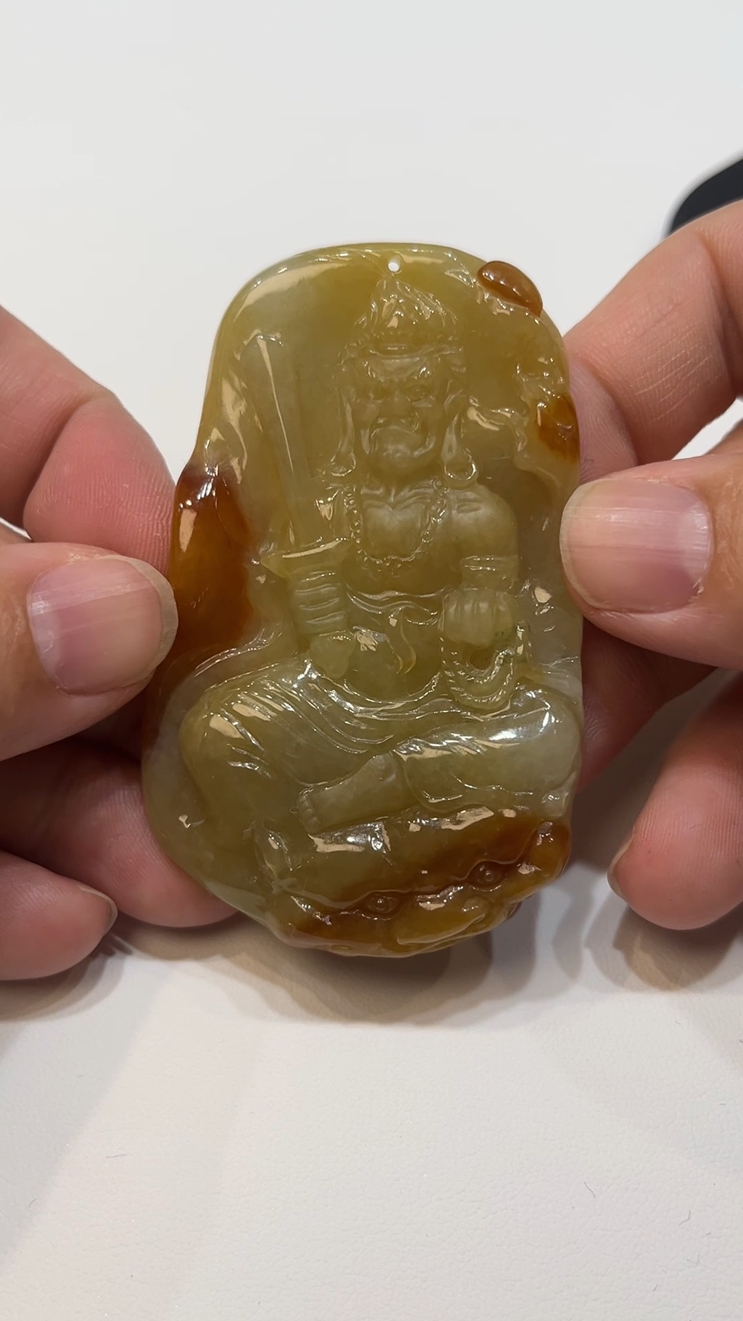 翡翠直播商品#176-黃翡不動明王不動尊菩薩翡翠吊墜