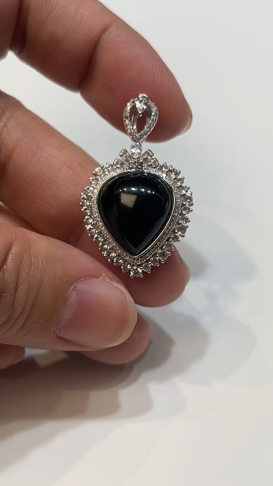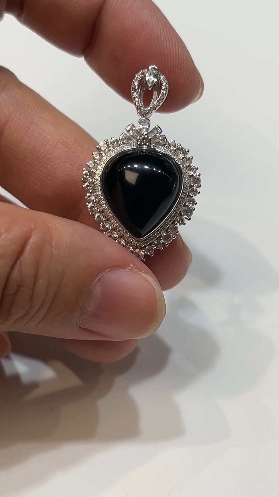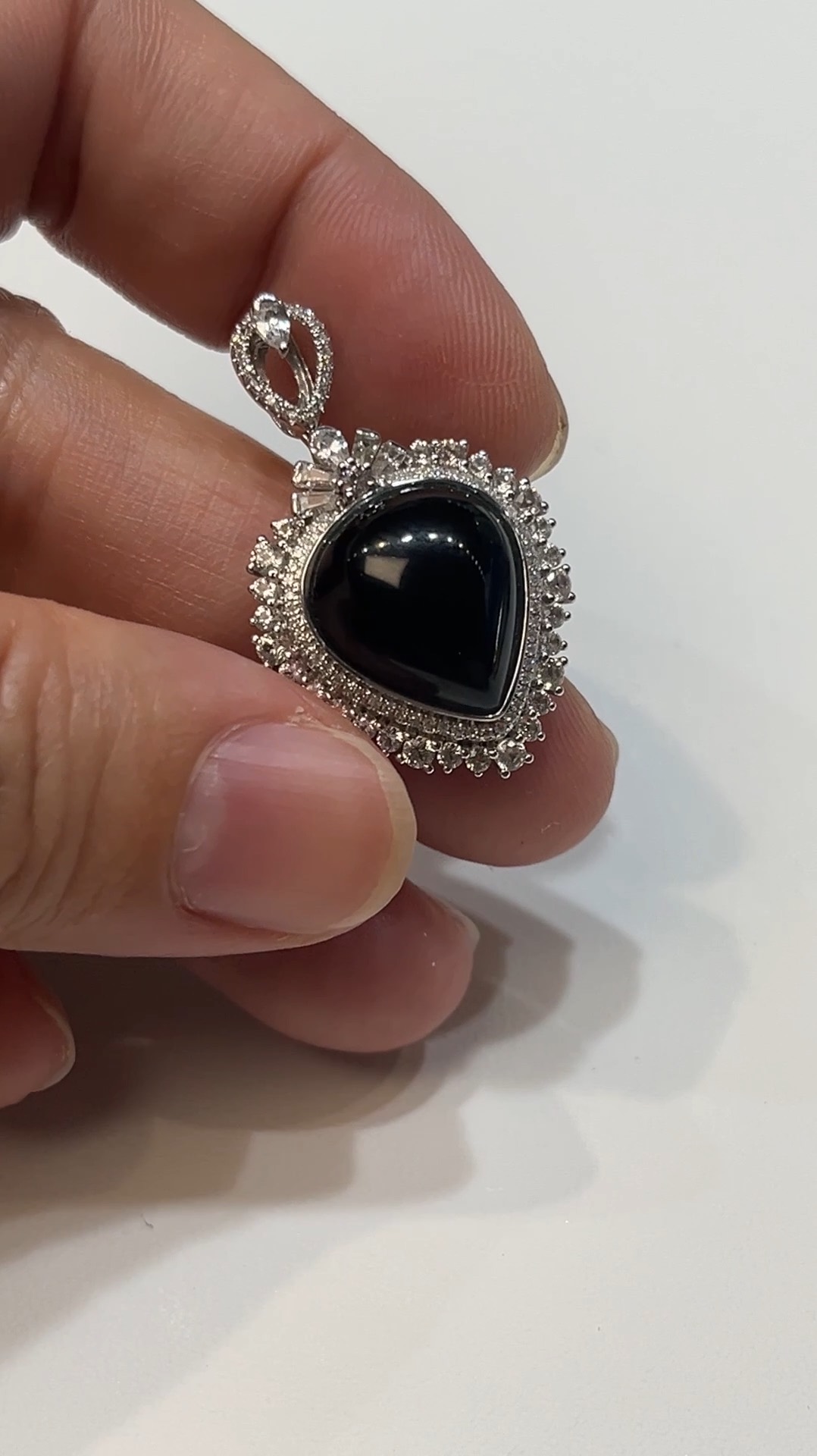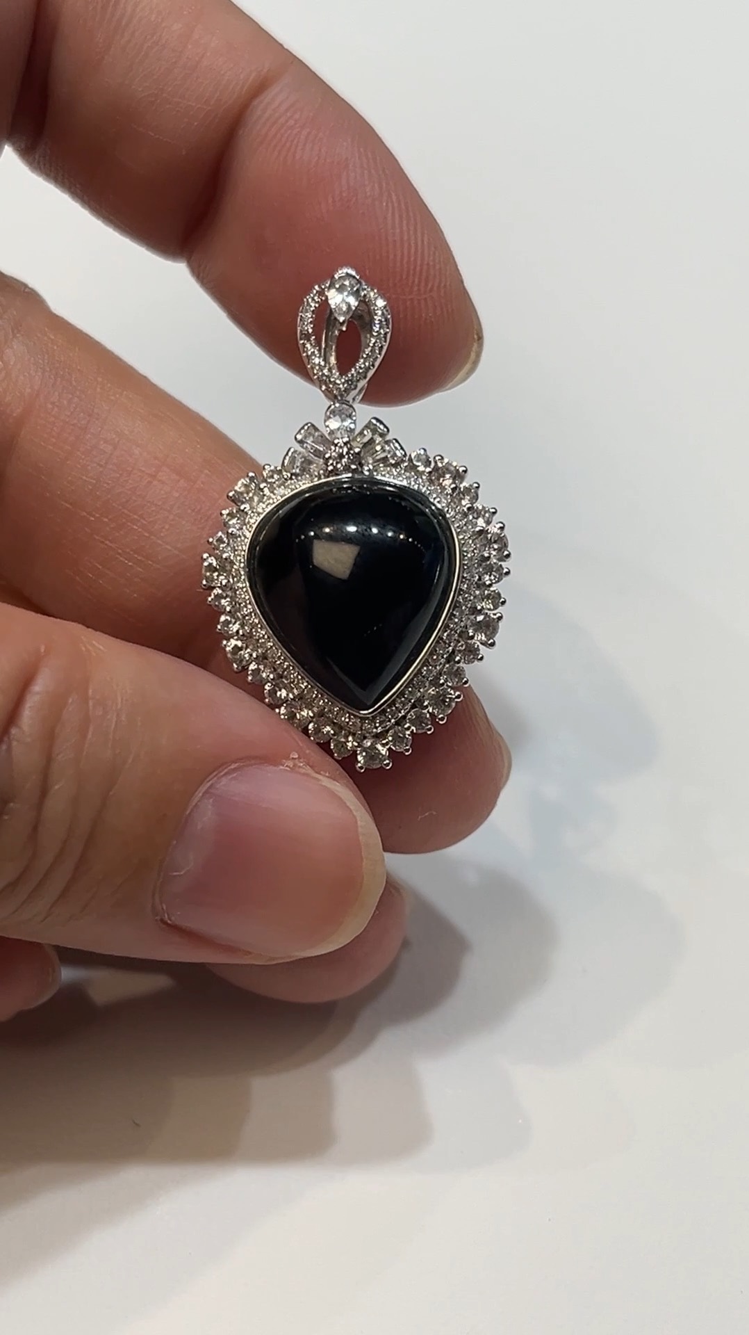 翡翠直播商品#182-18K白金鑽石翡翠墨翠心形吊墜