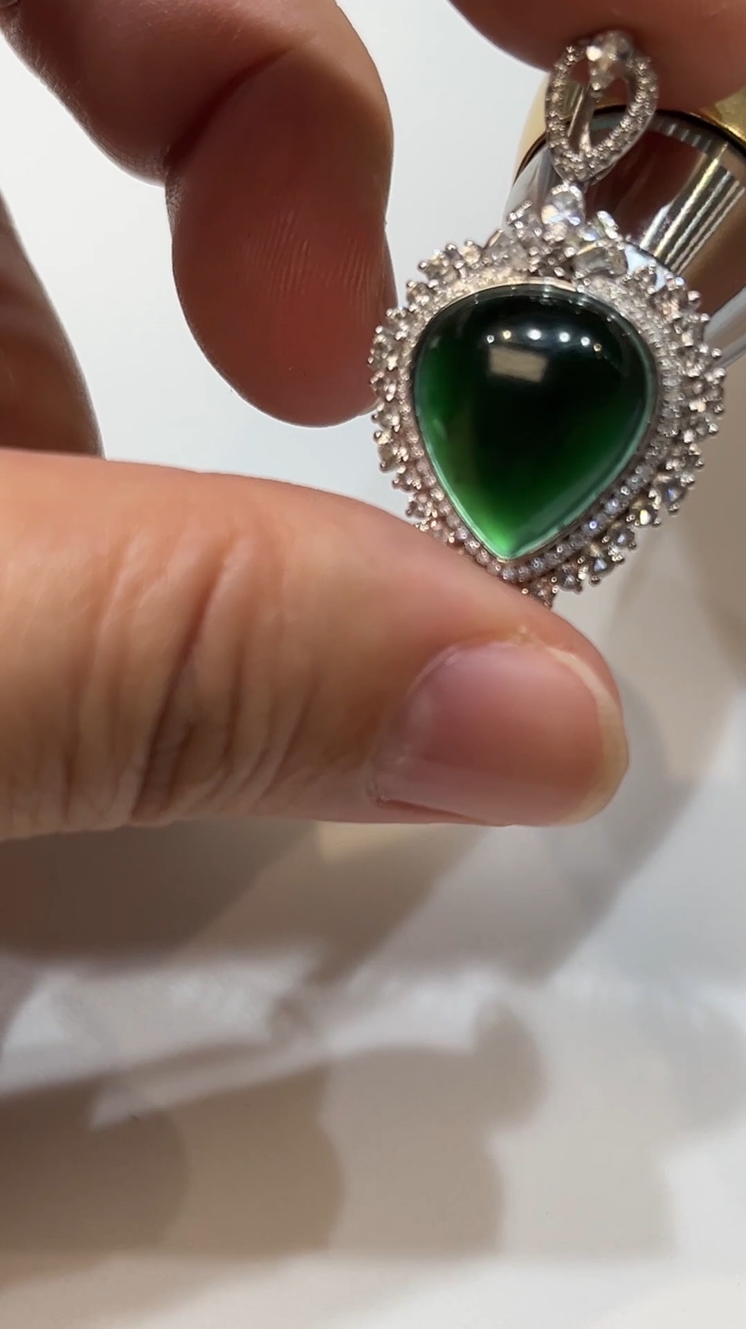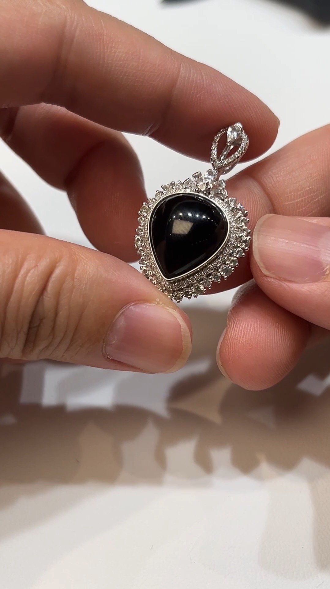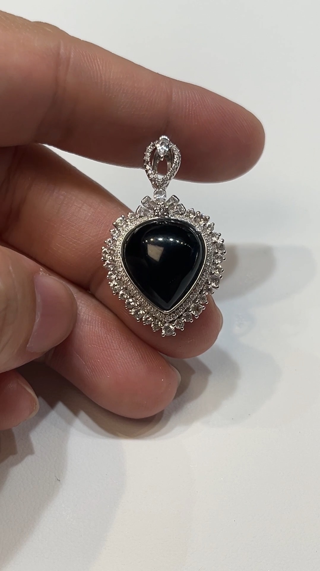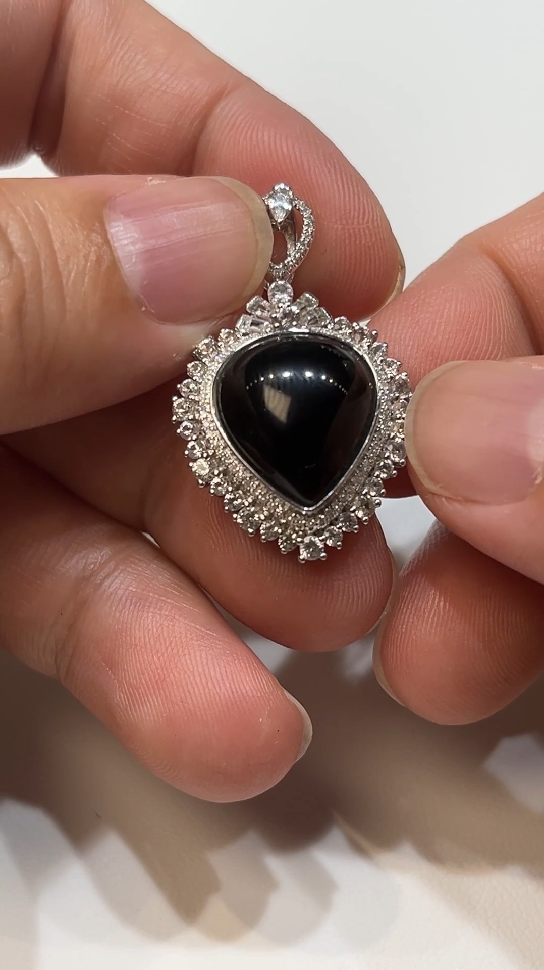 翡翠直播商品#182-18K白金鑽石翡翠墨翠心形吊墜