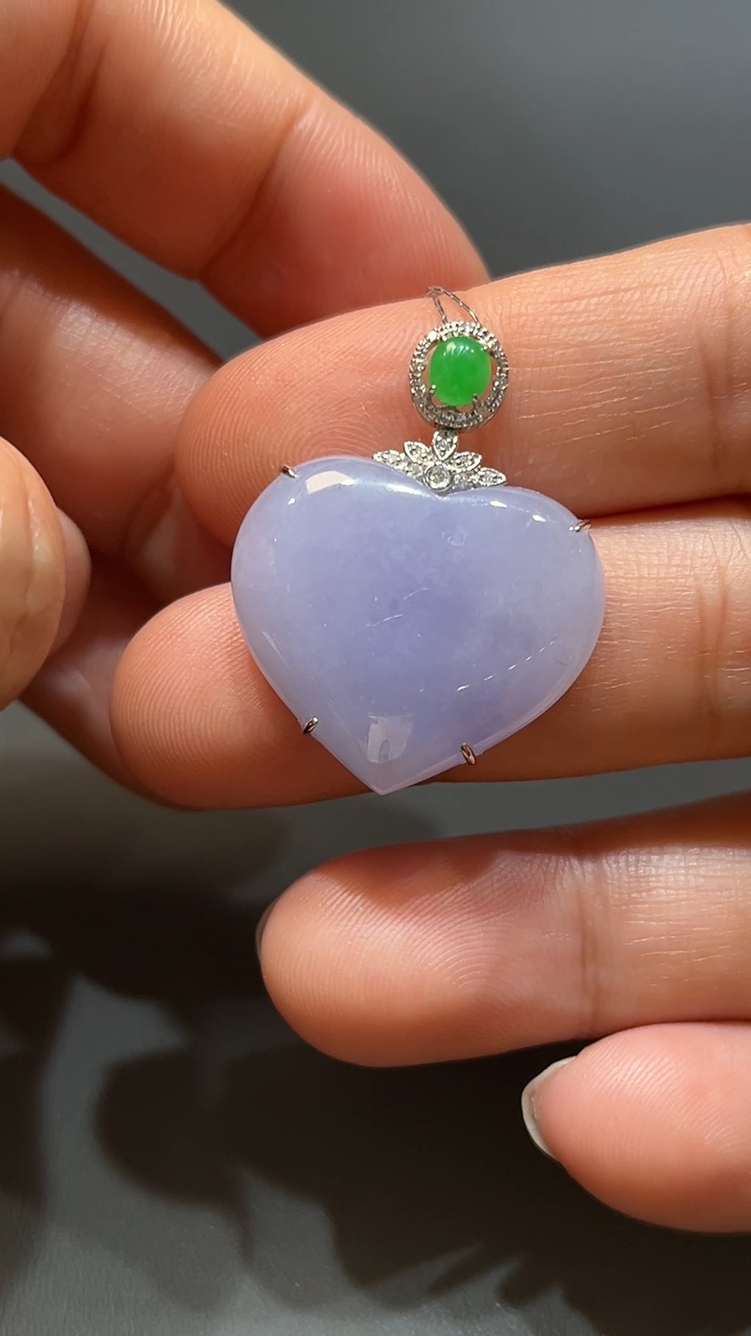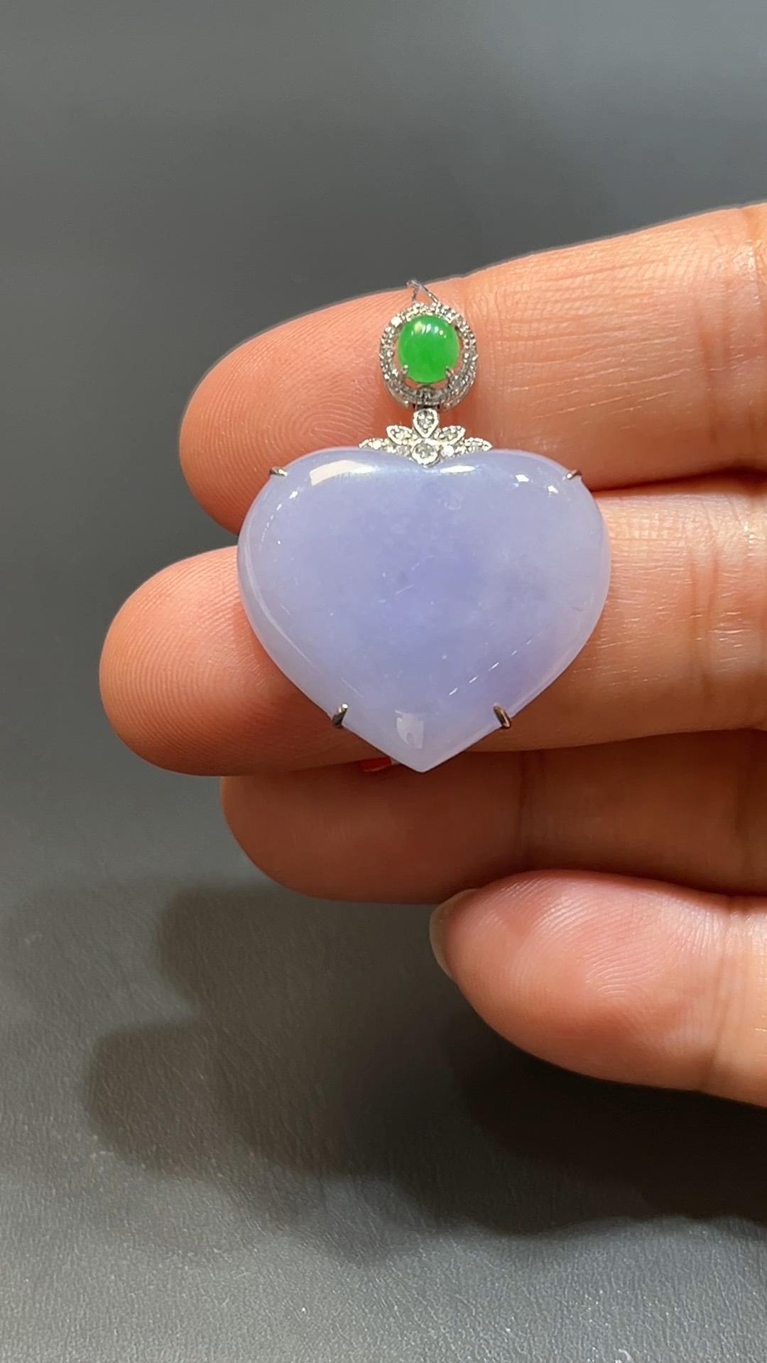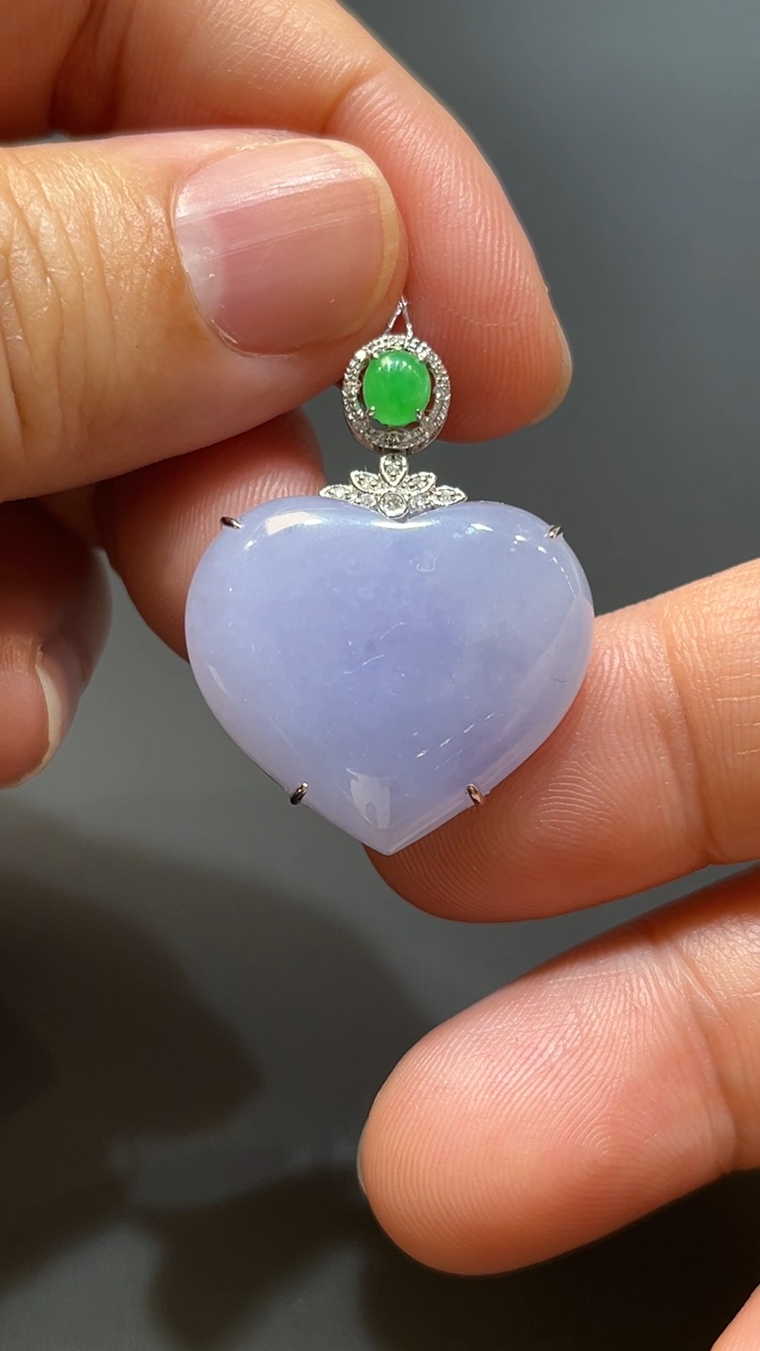 翡翠直播商品#203-18K白金鑽石心形翡翠吊墜