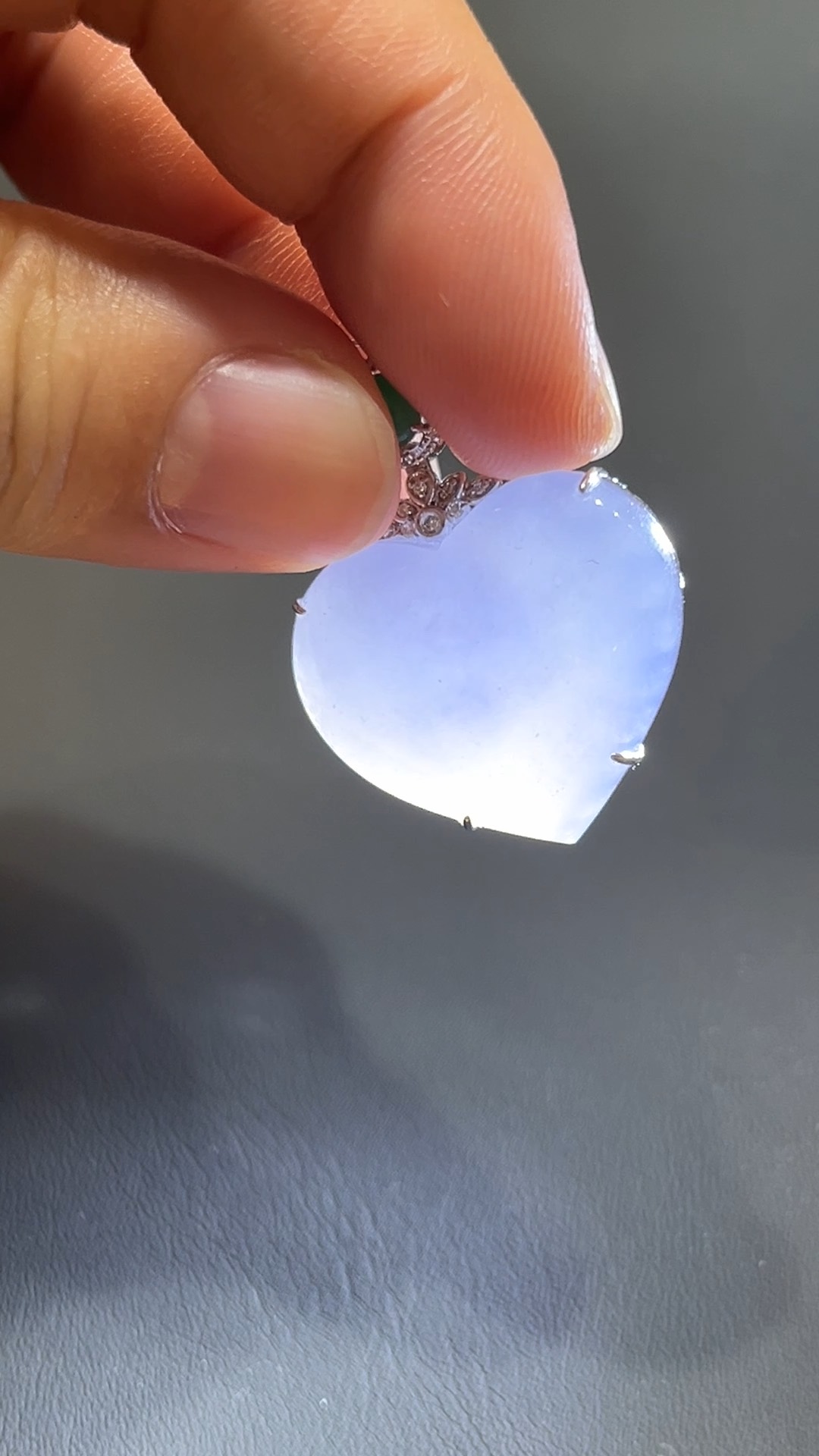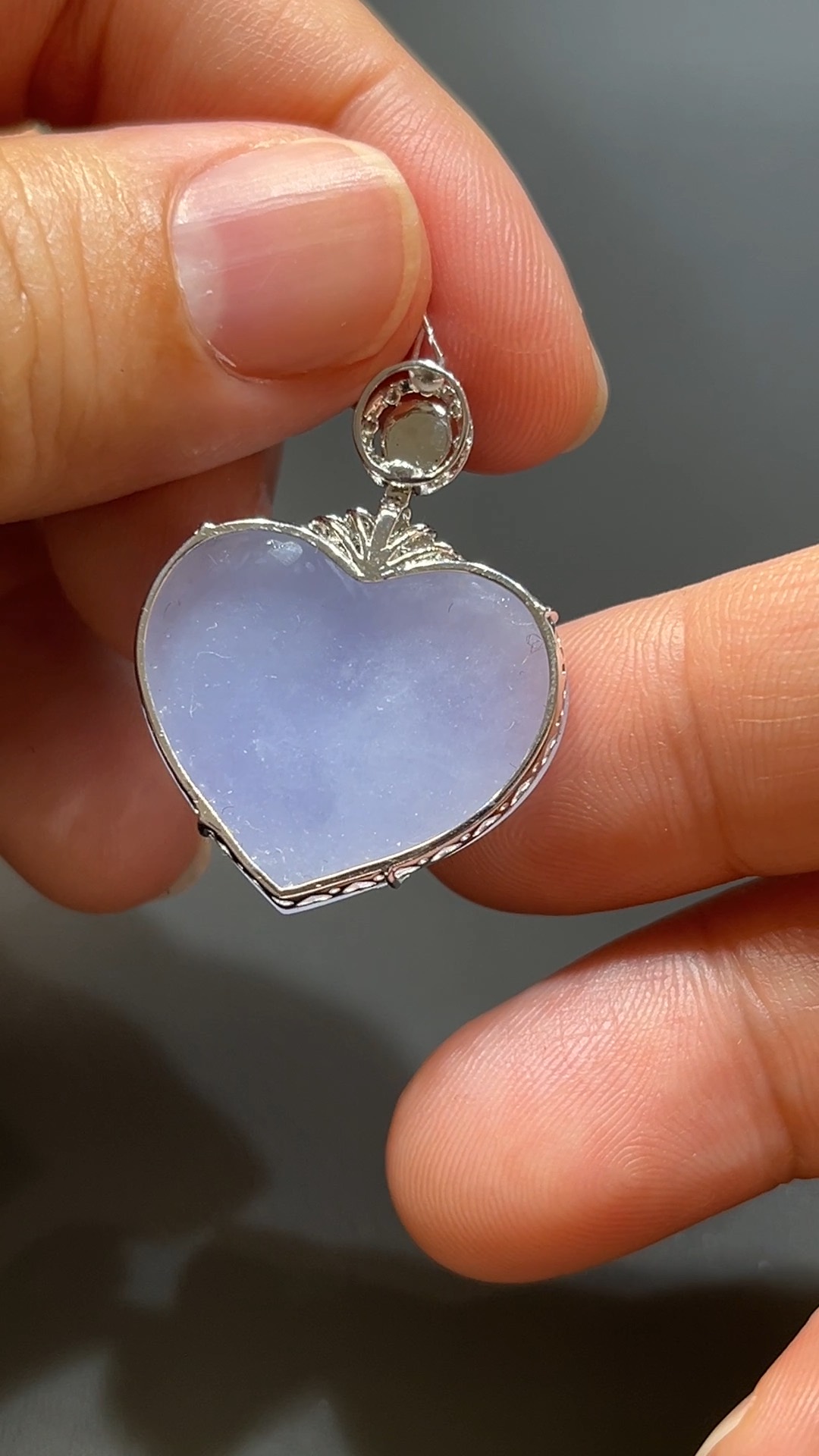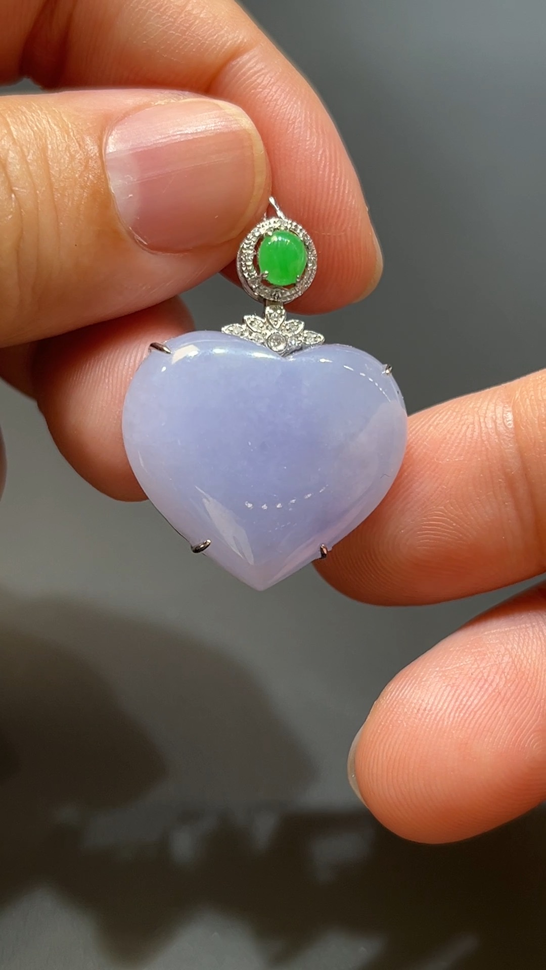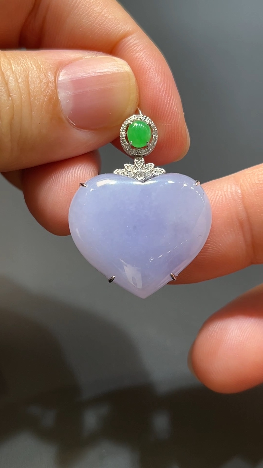 翡翠直播商品#203-18K白金鑽石心形翡翠吊墜