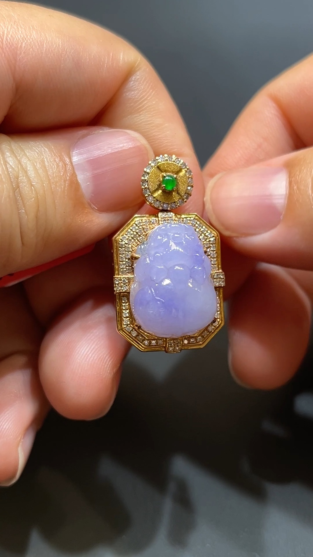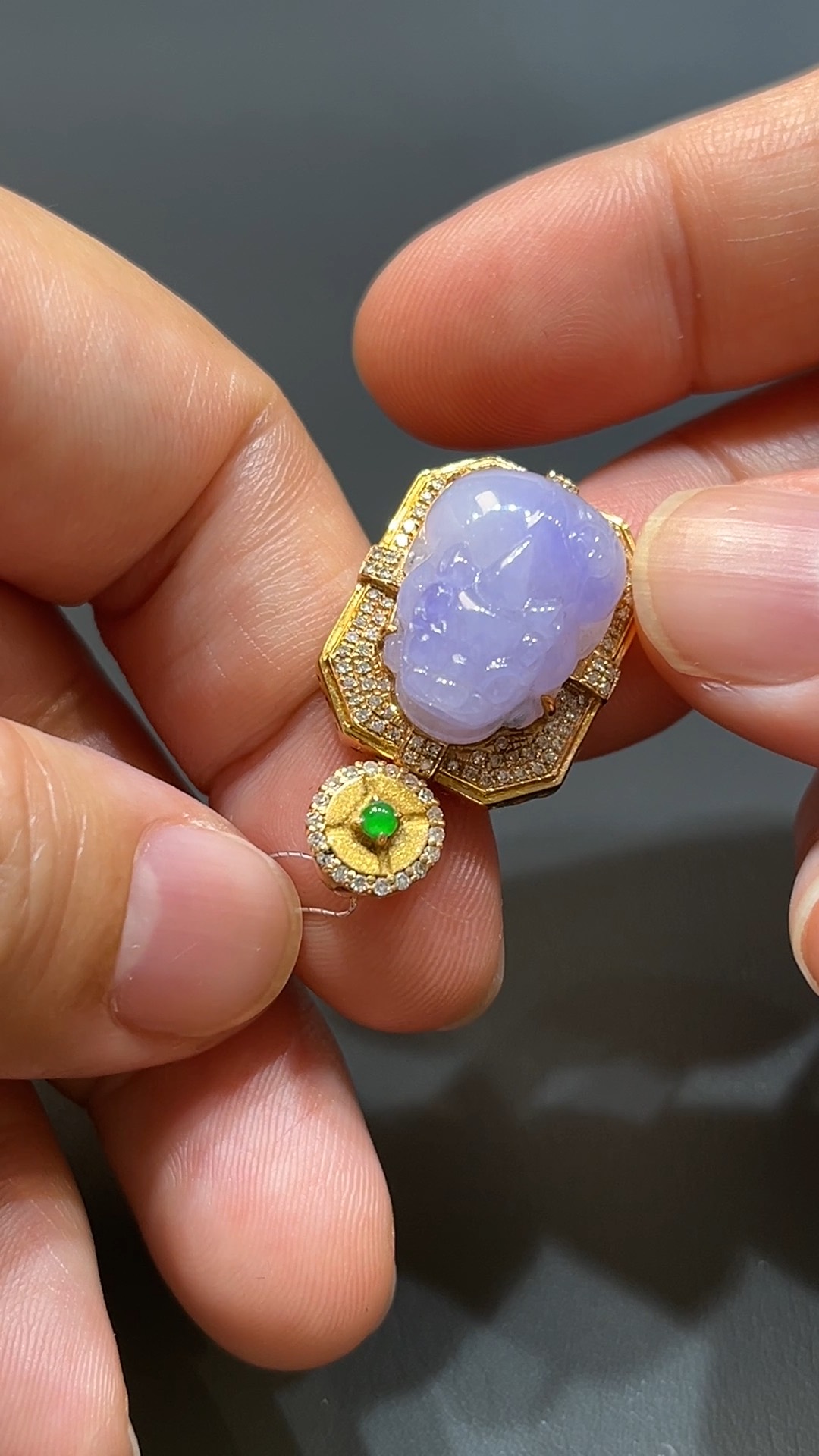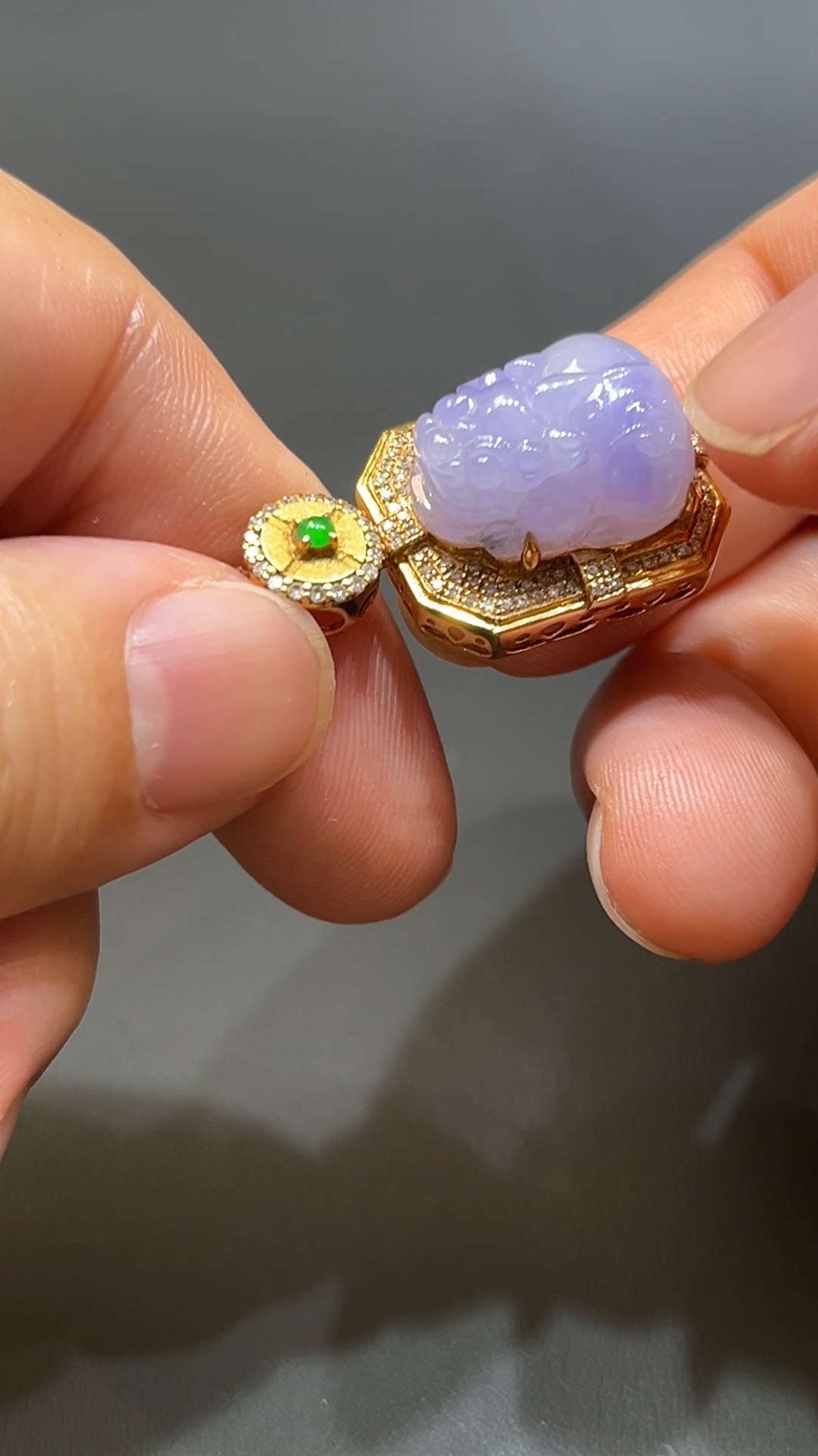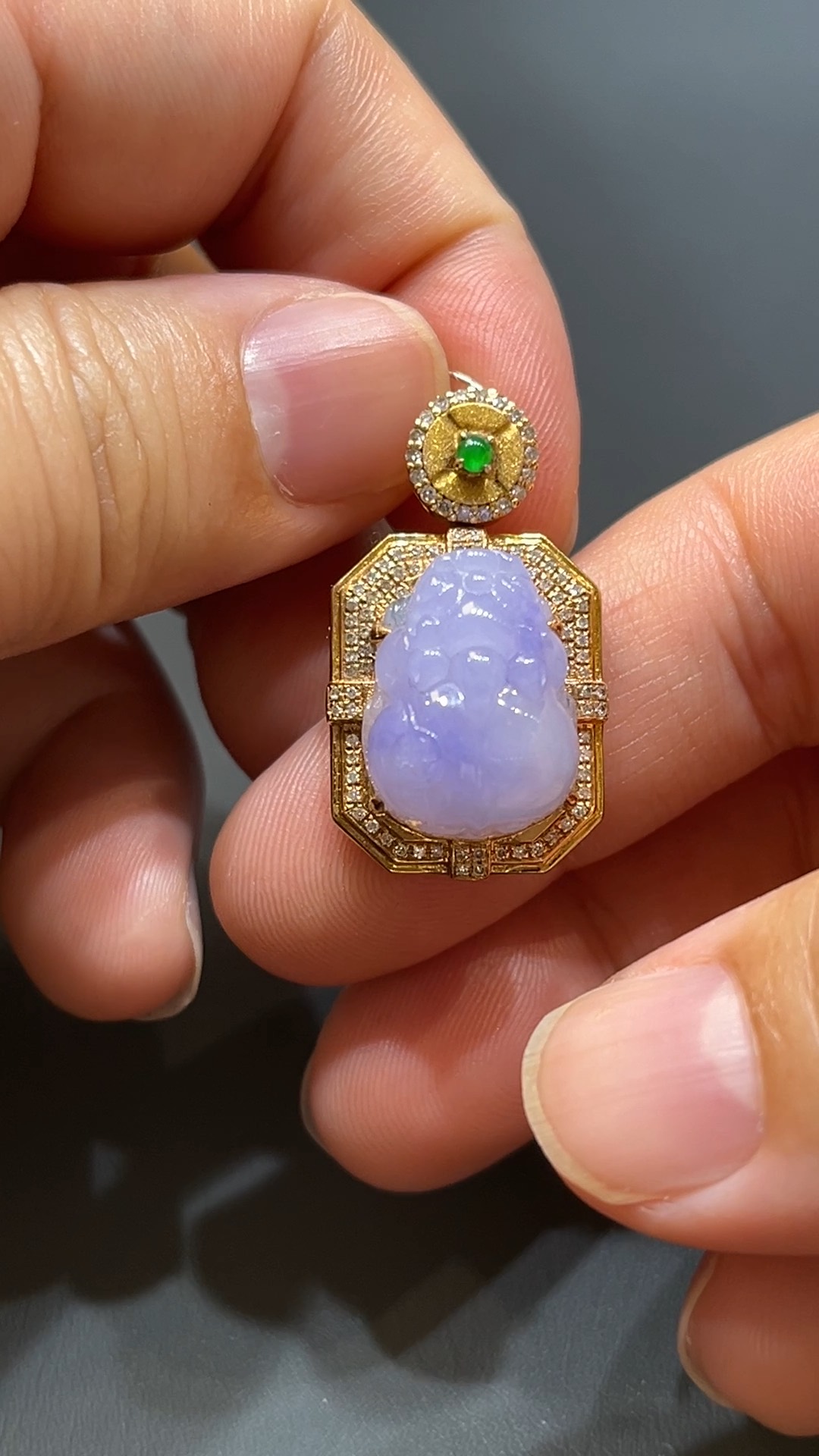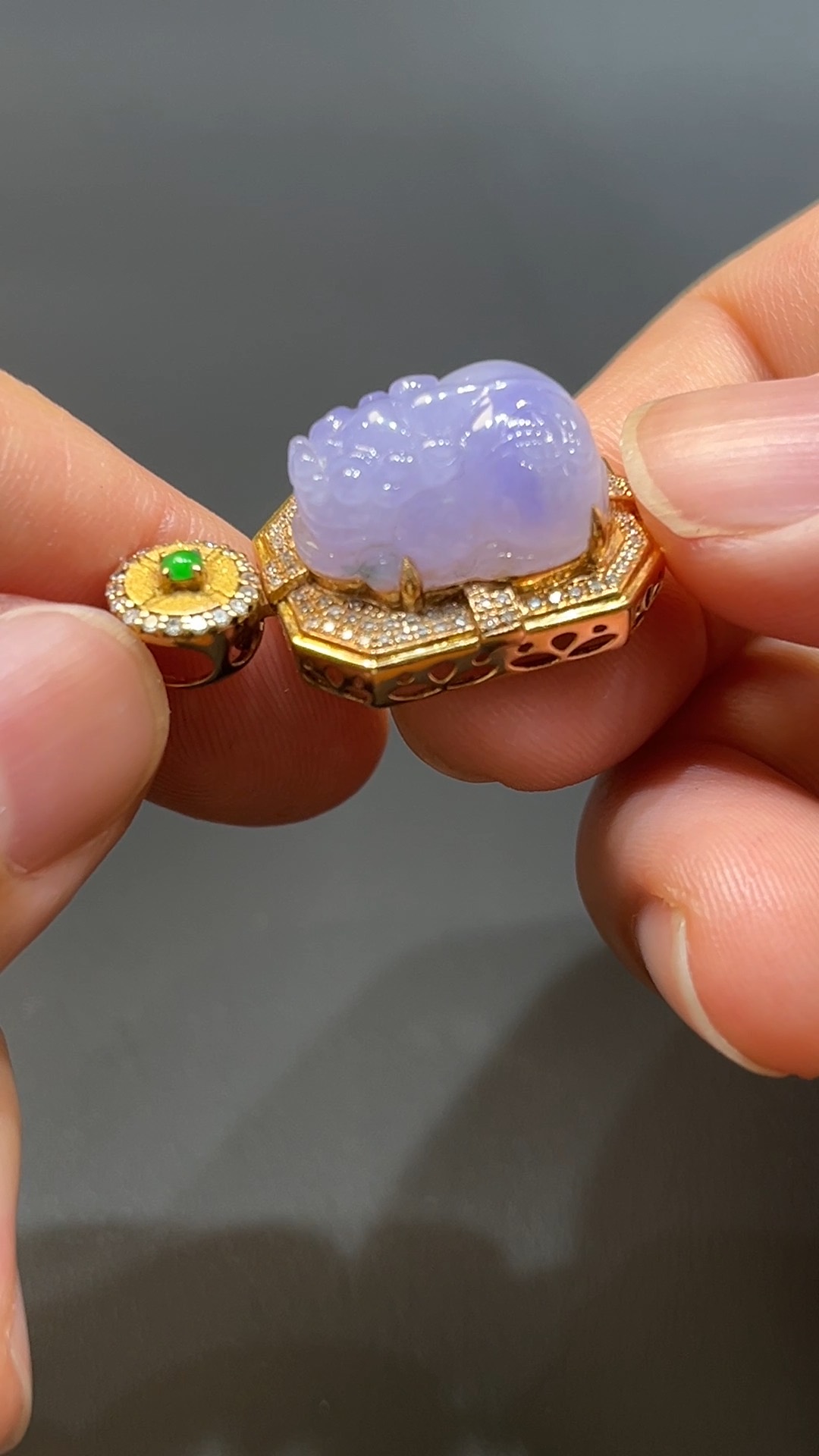翡翠直播商品#205-18K玫瑰金鑽石鑲嵌招財貔貅吊墜