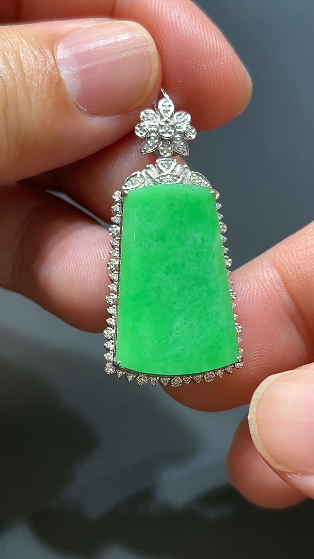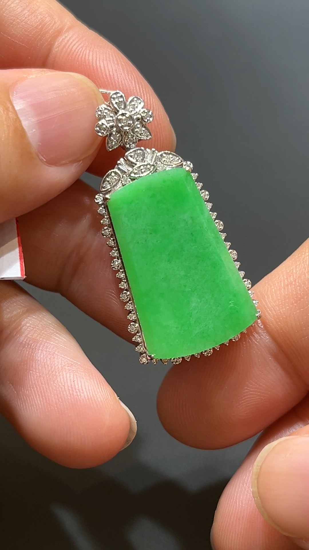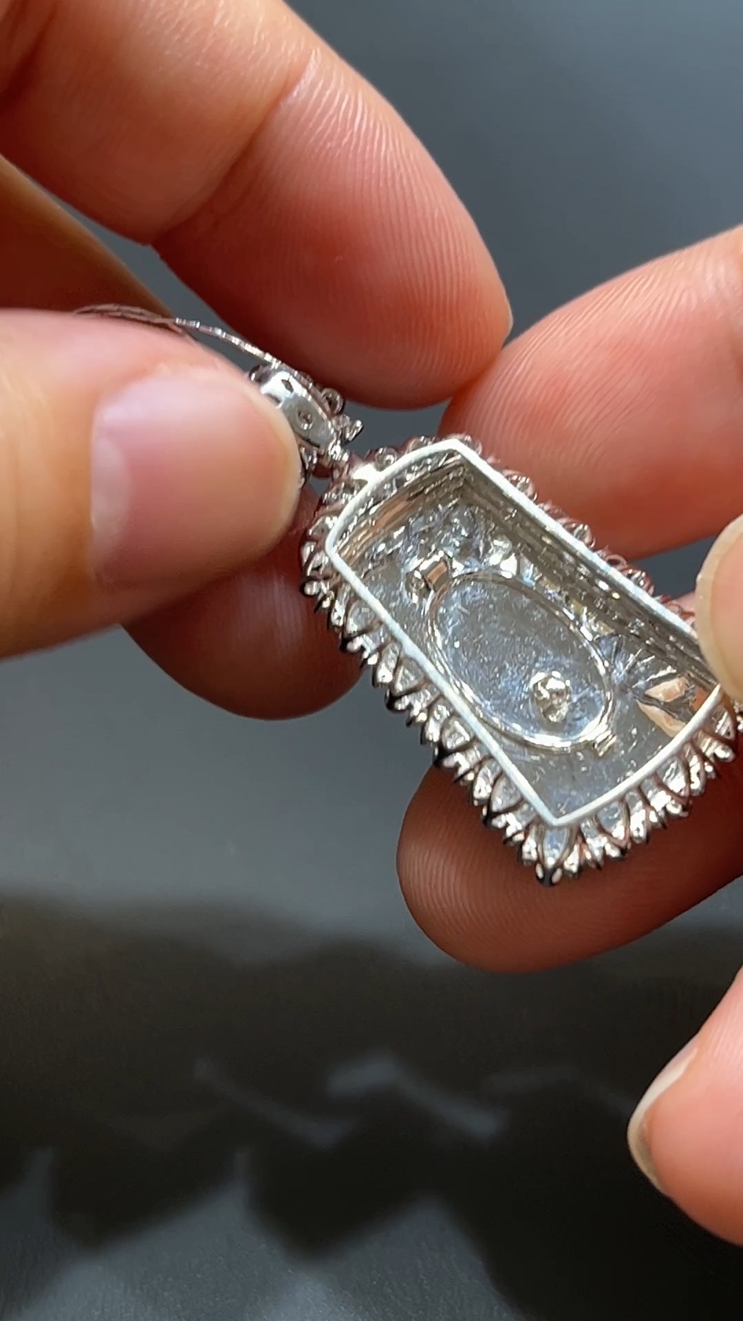 翡翠直播商品#207-18K白金鑽石鑲無事牌吊墜