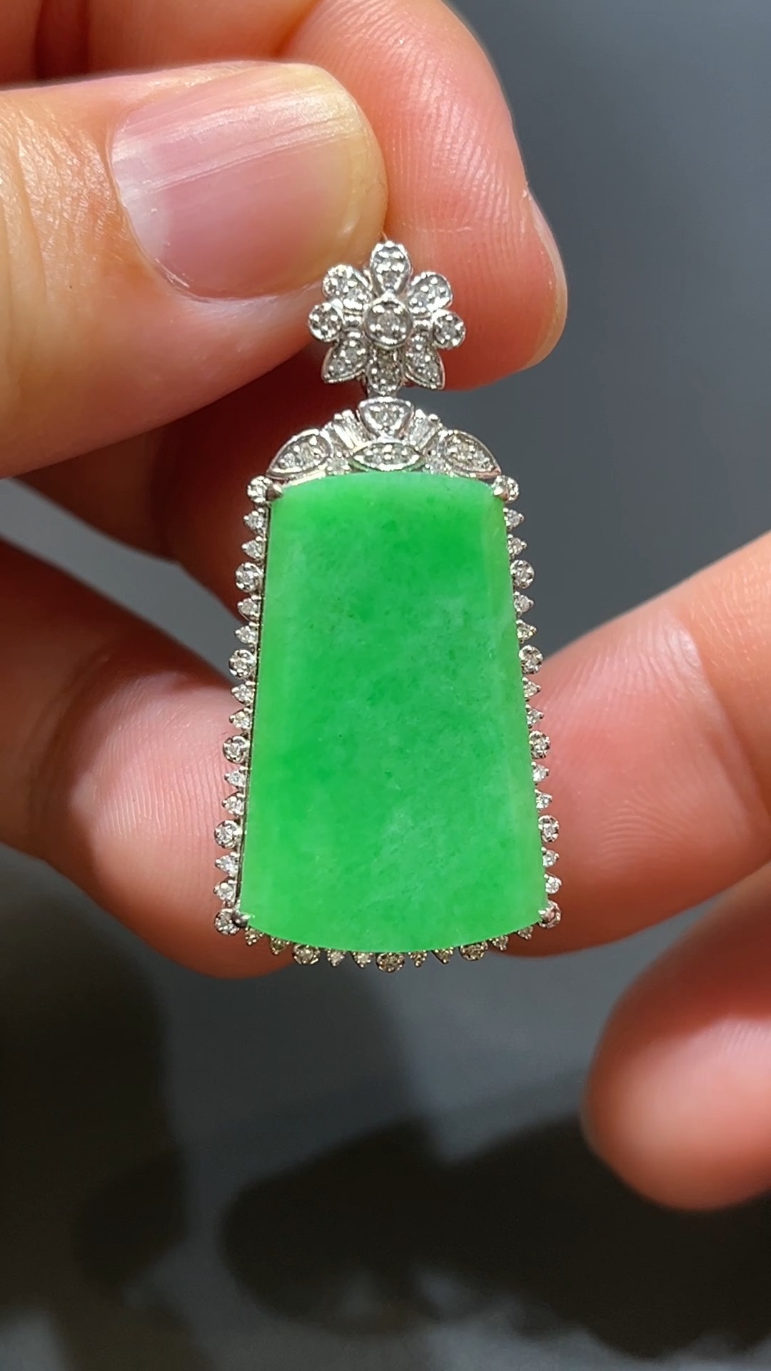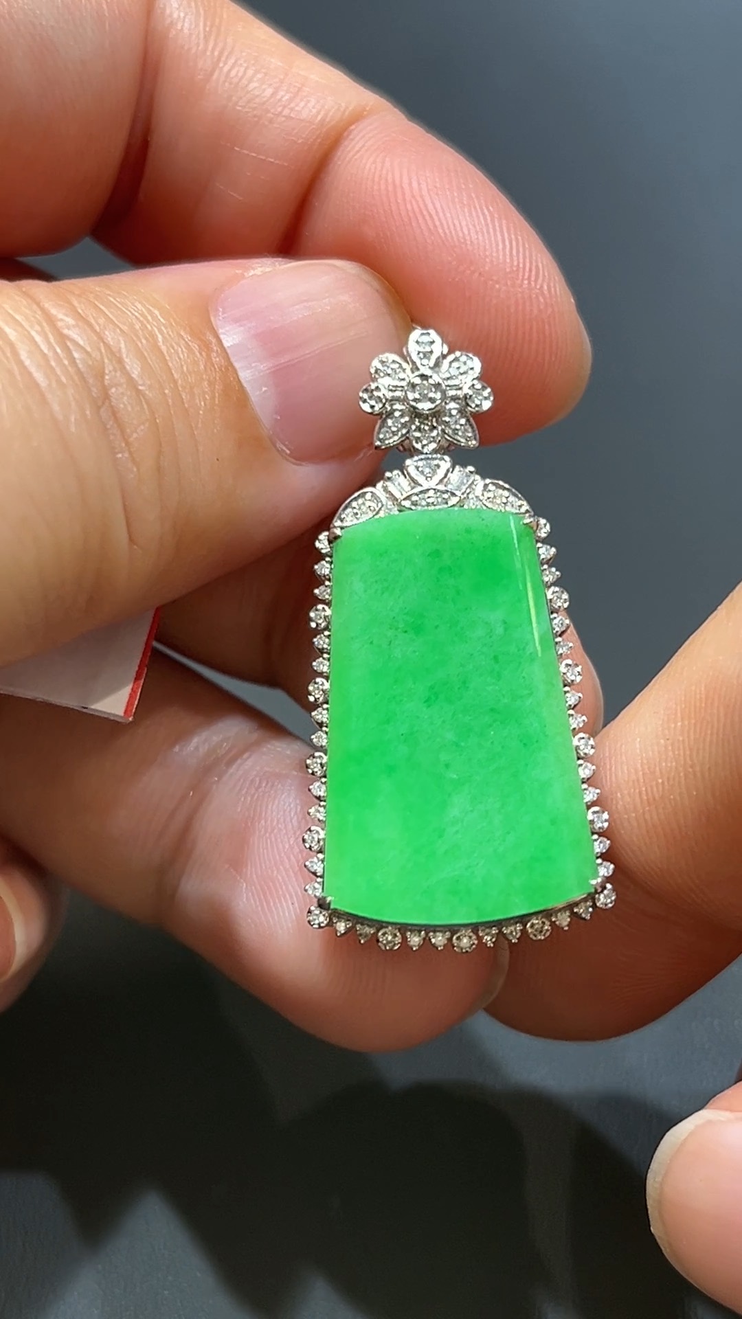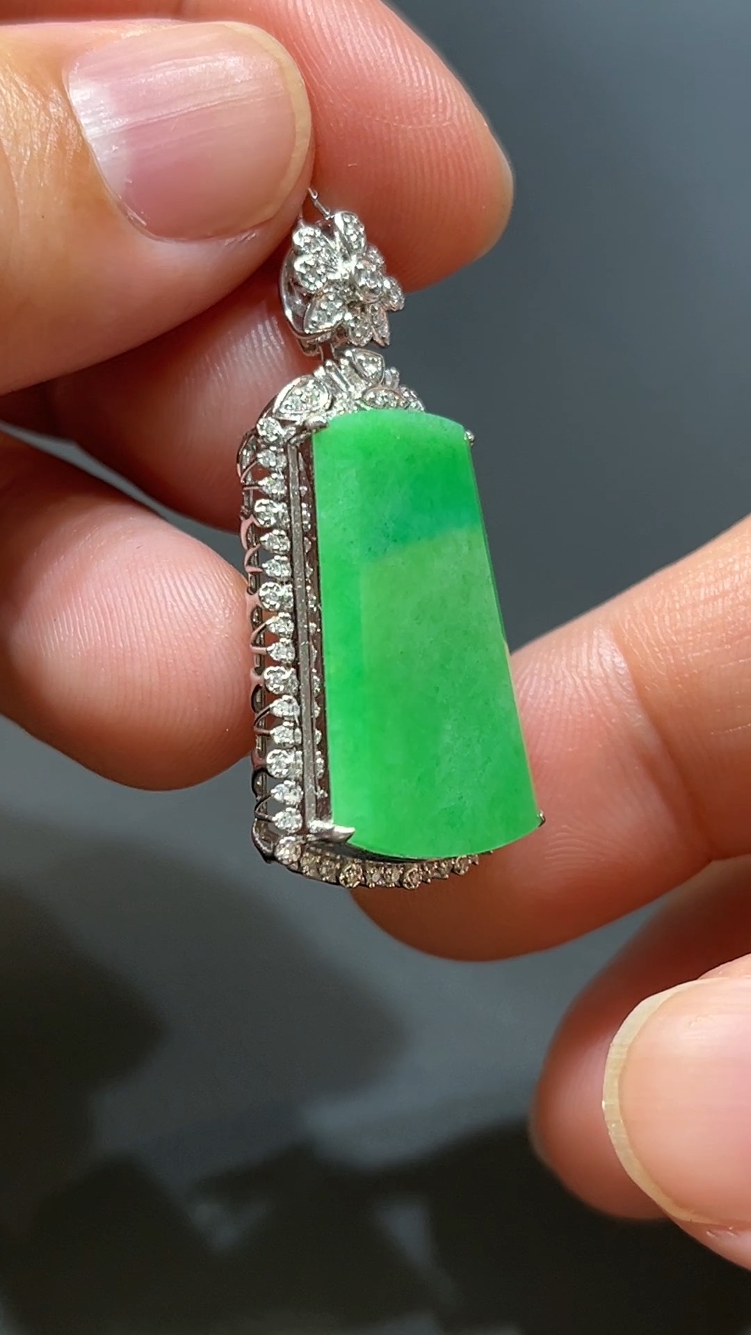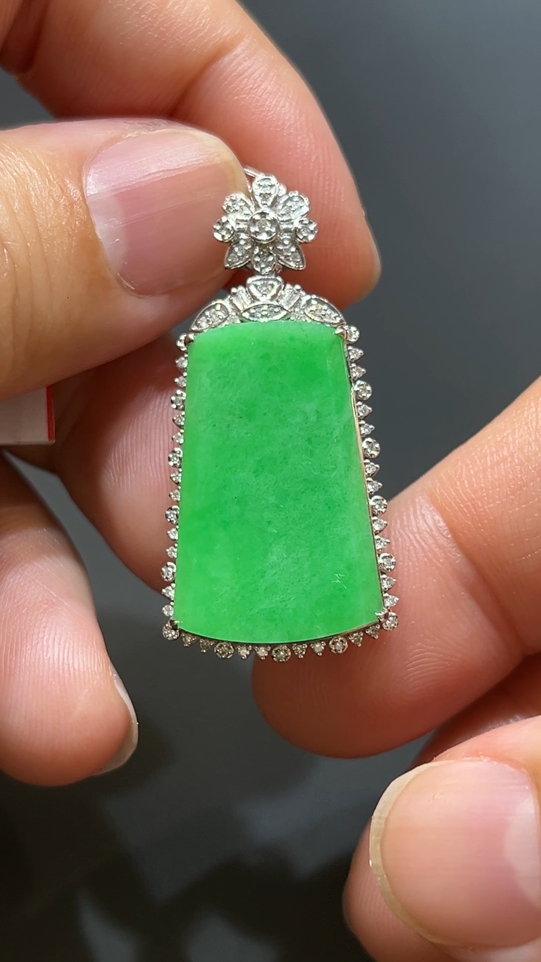 翡翠直播商品#207-18K白金鑽石鑲無事牌吊墜