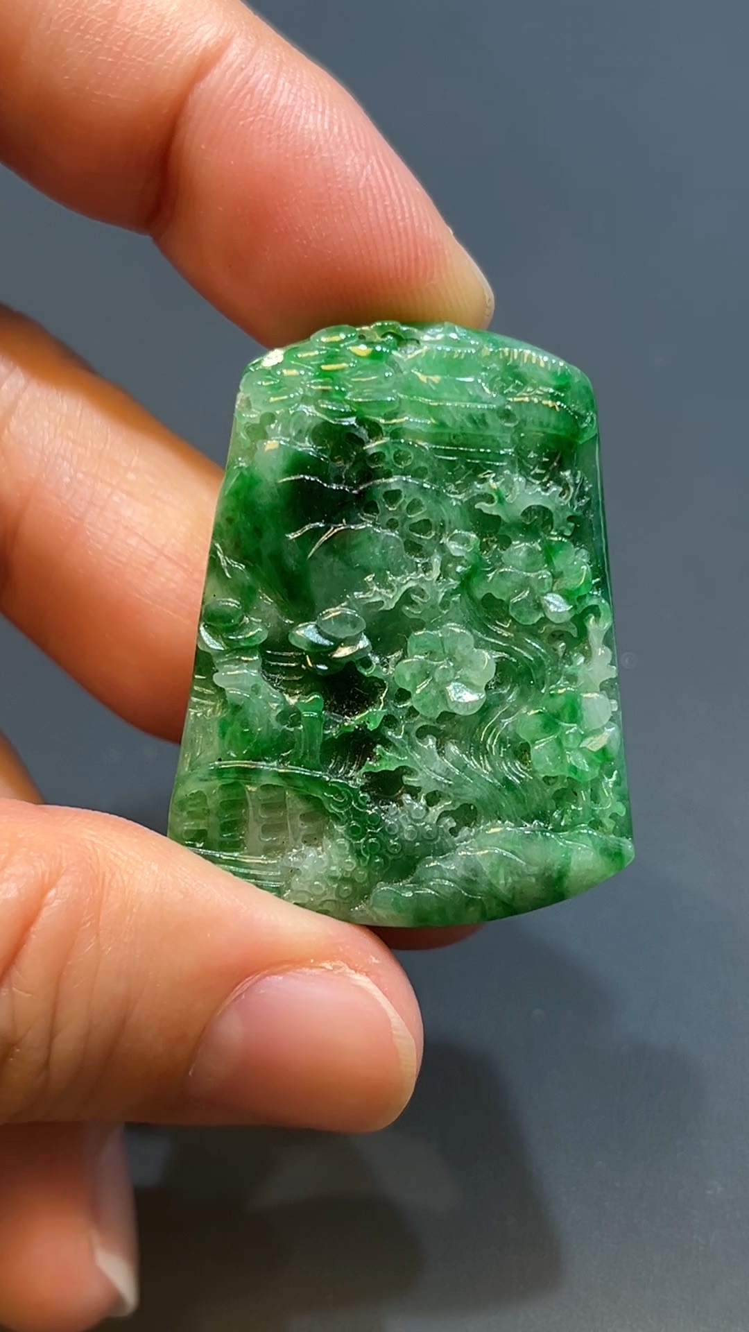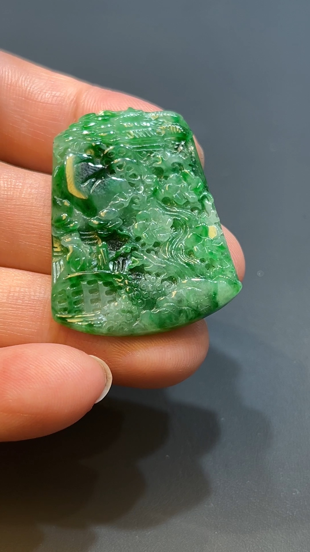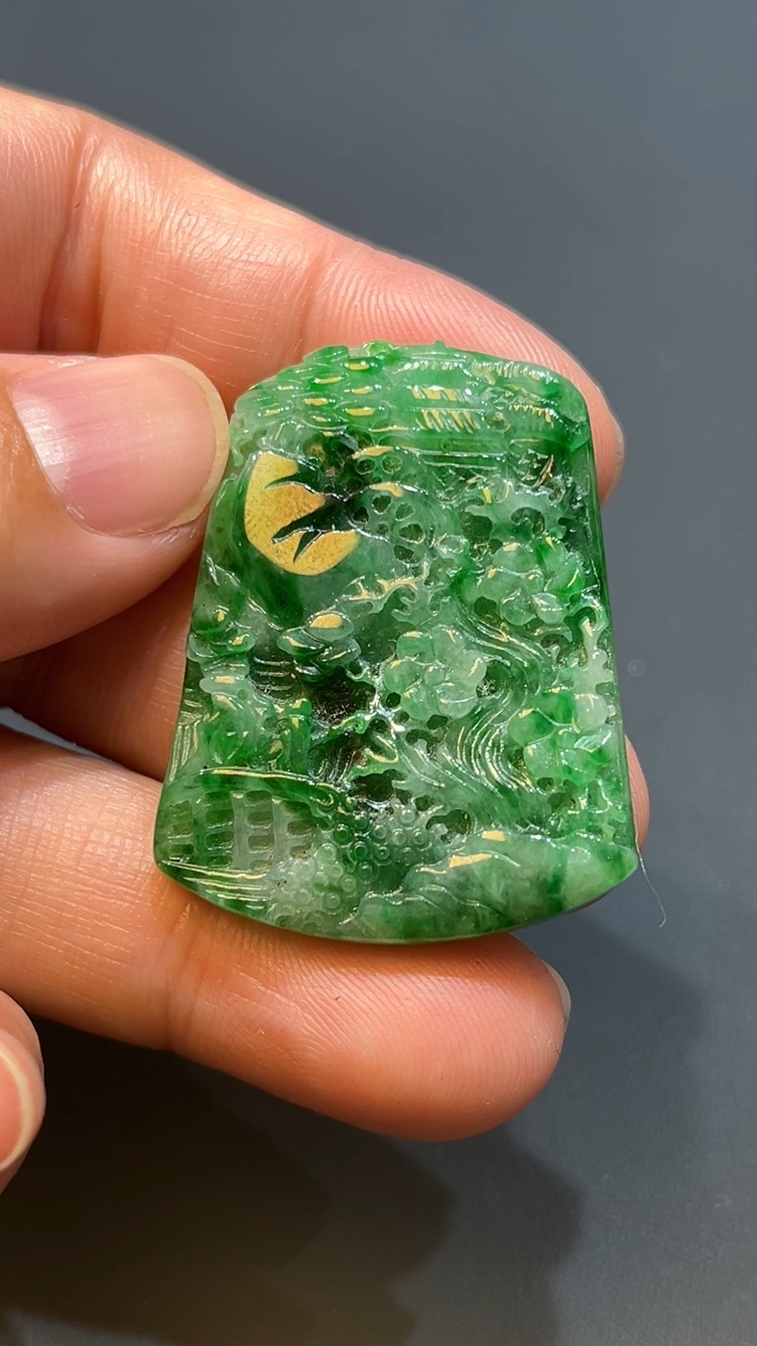 翡翠直播商品#225-滿綠山水牌翡翠吊墜