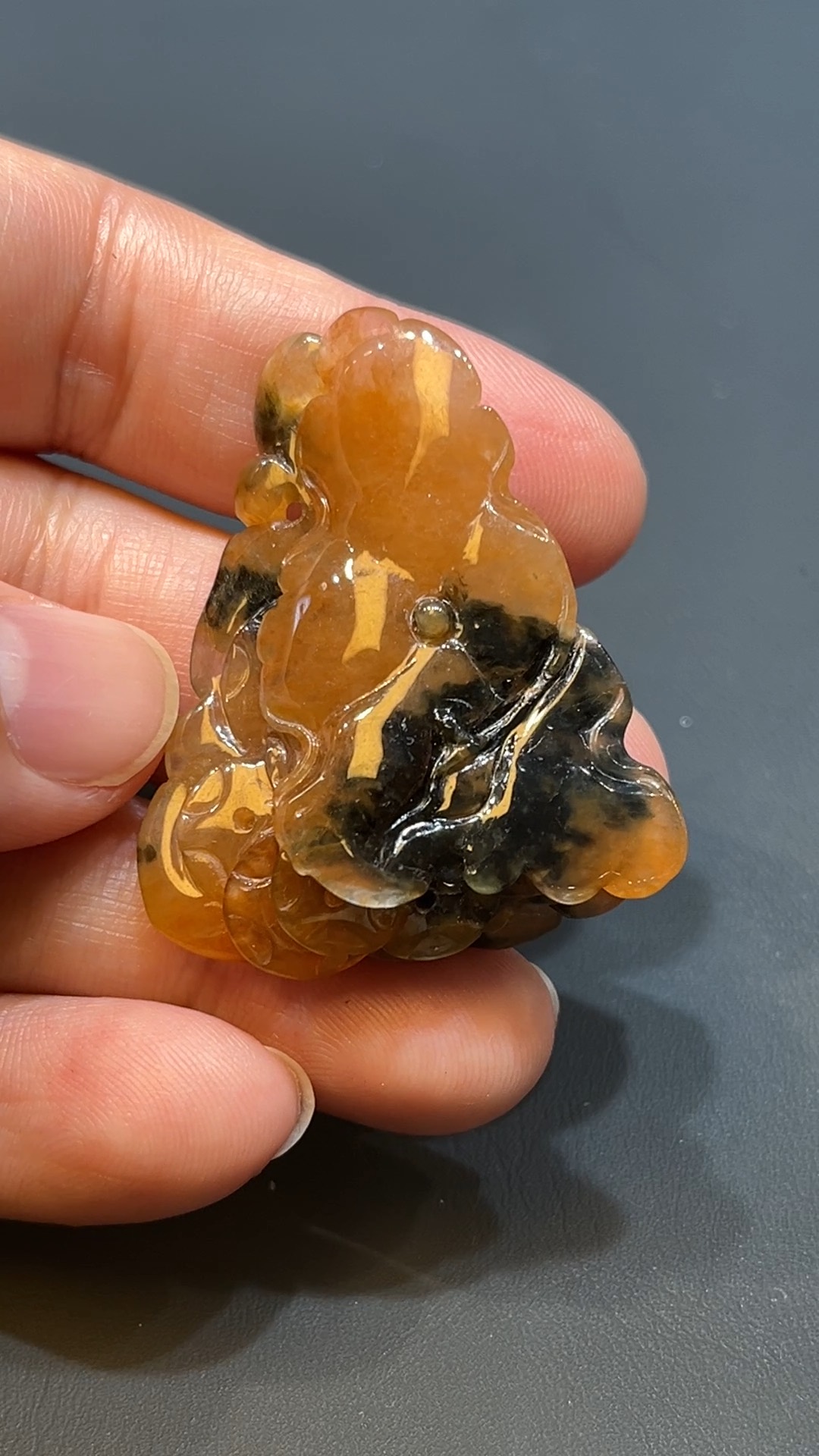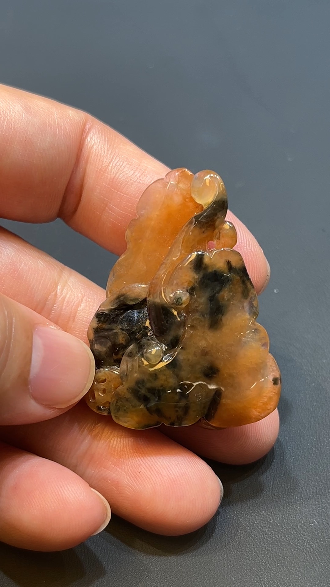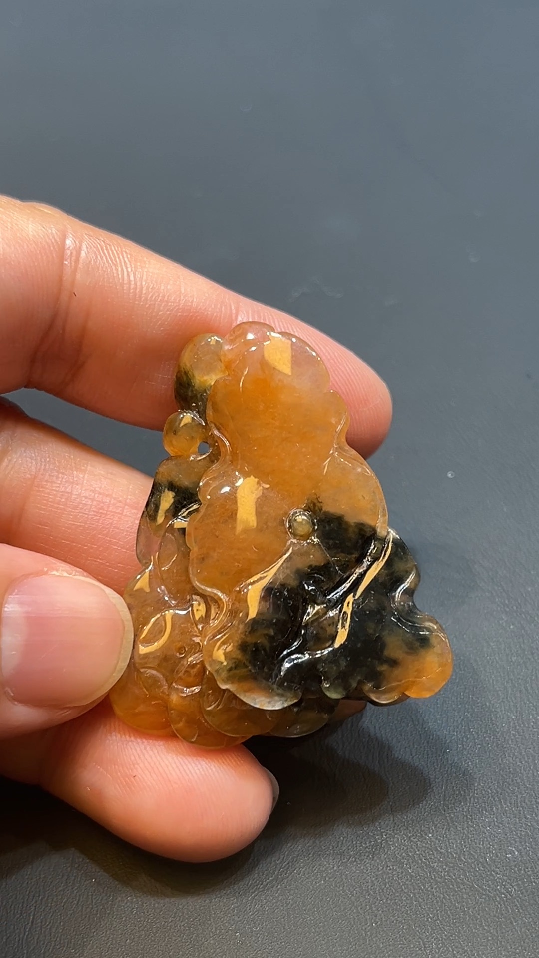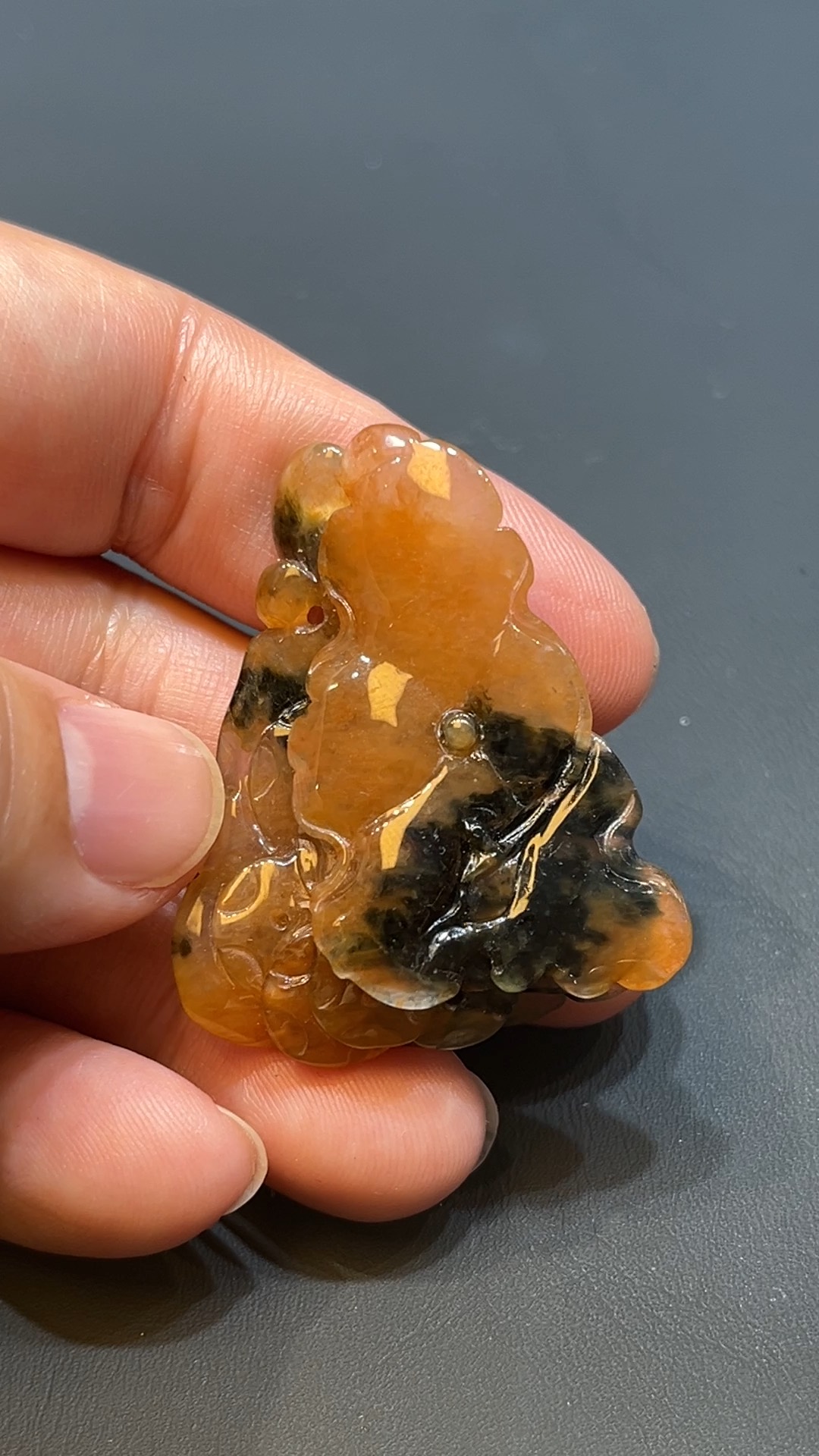 翡翠直播商品#226-紅翡帶烏鷄特色荷葉翡翠吊墜