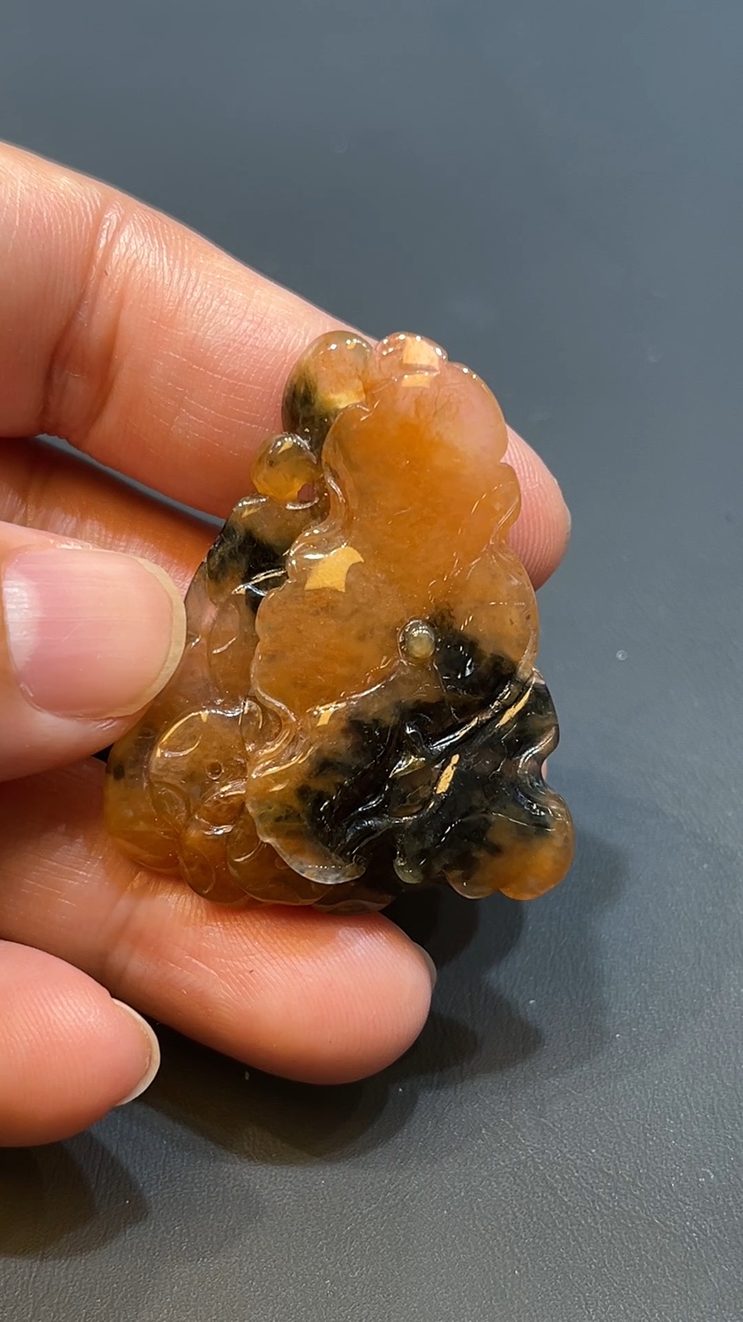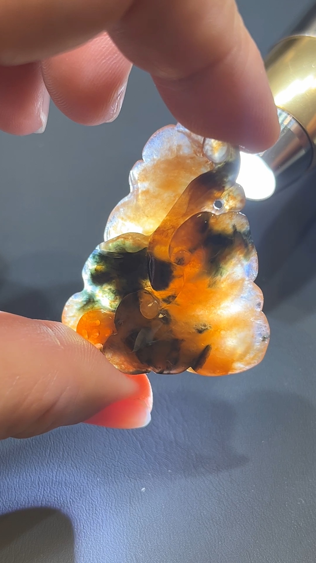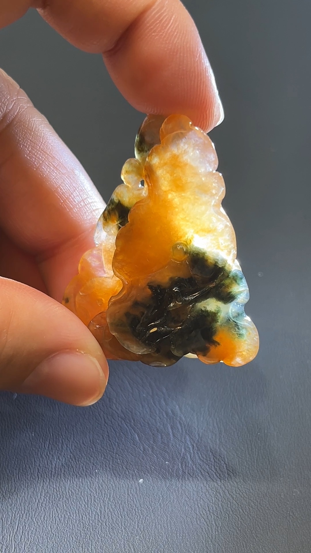 翡翠直播商品#226-紅翡帶烏鷄特色荷葉翡翠吊墜