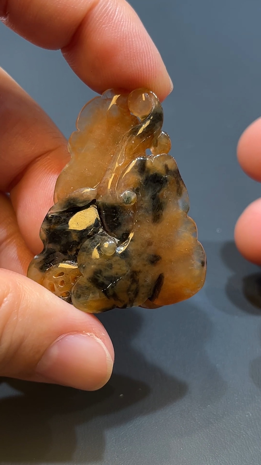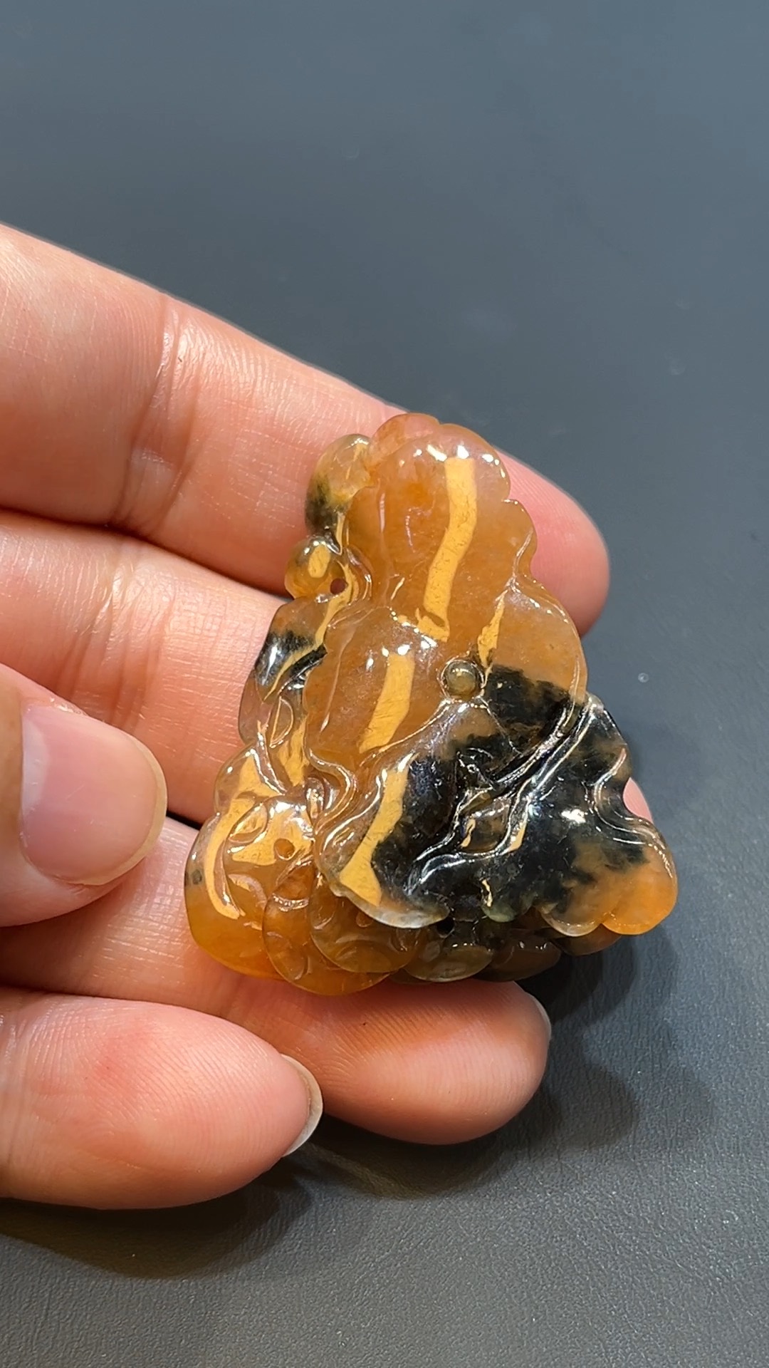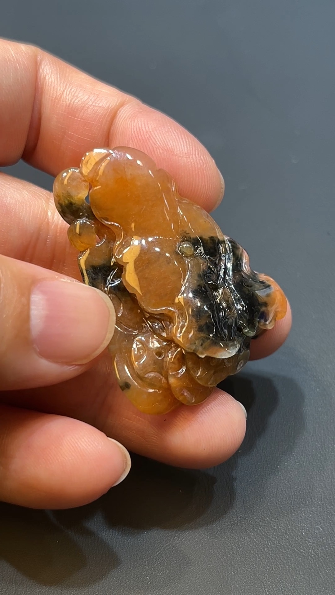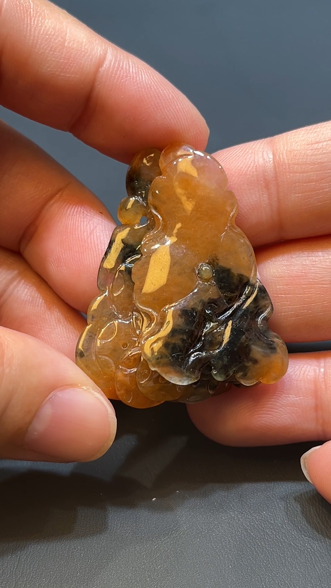翡翠直播商品#226-紅翡帶烏鷄特色荷葉翡翠吊墜