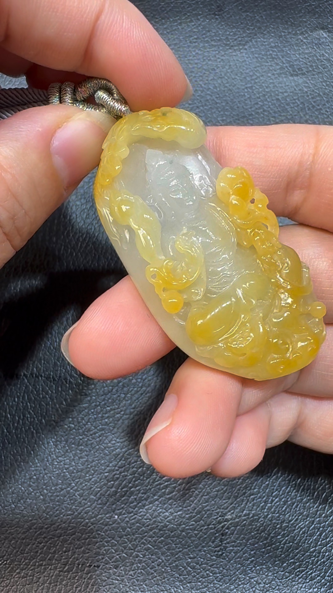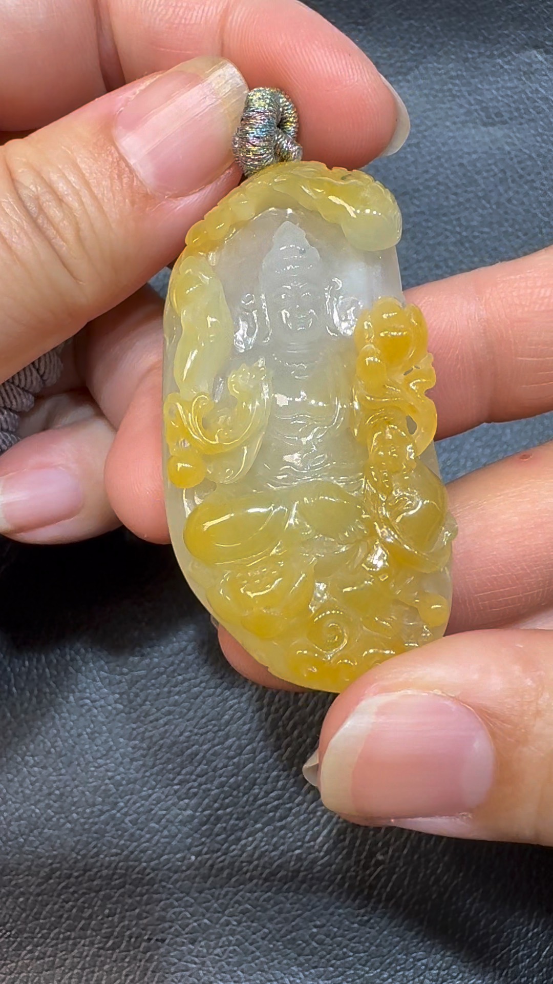 翡翠直播商品#64-翡翠玉器黃翡觀音翡翠吊墜