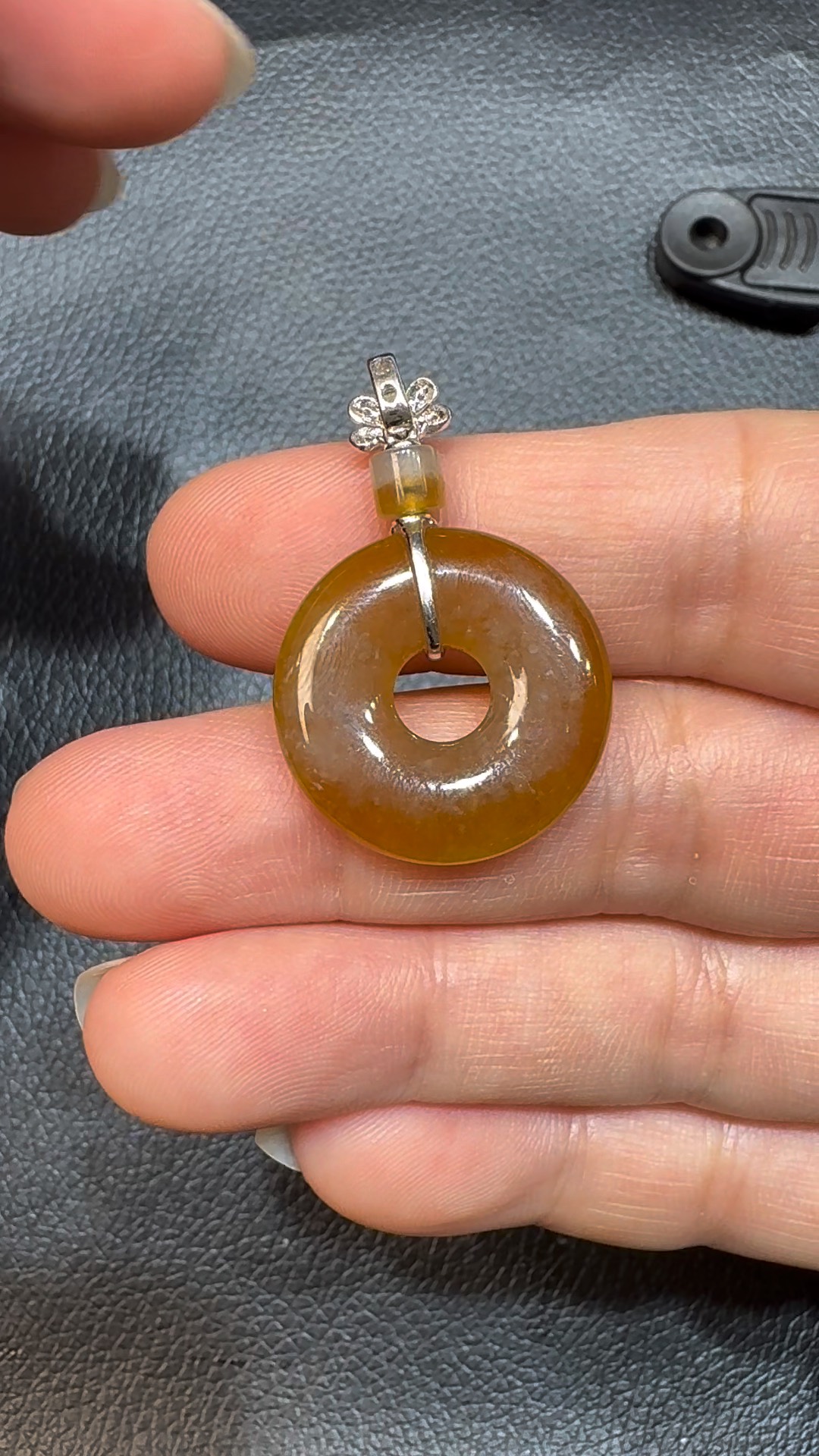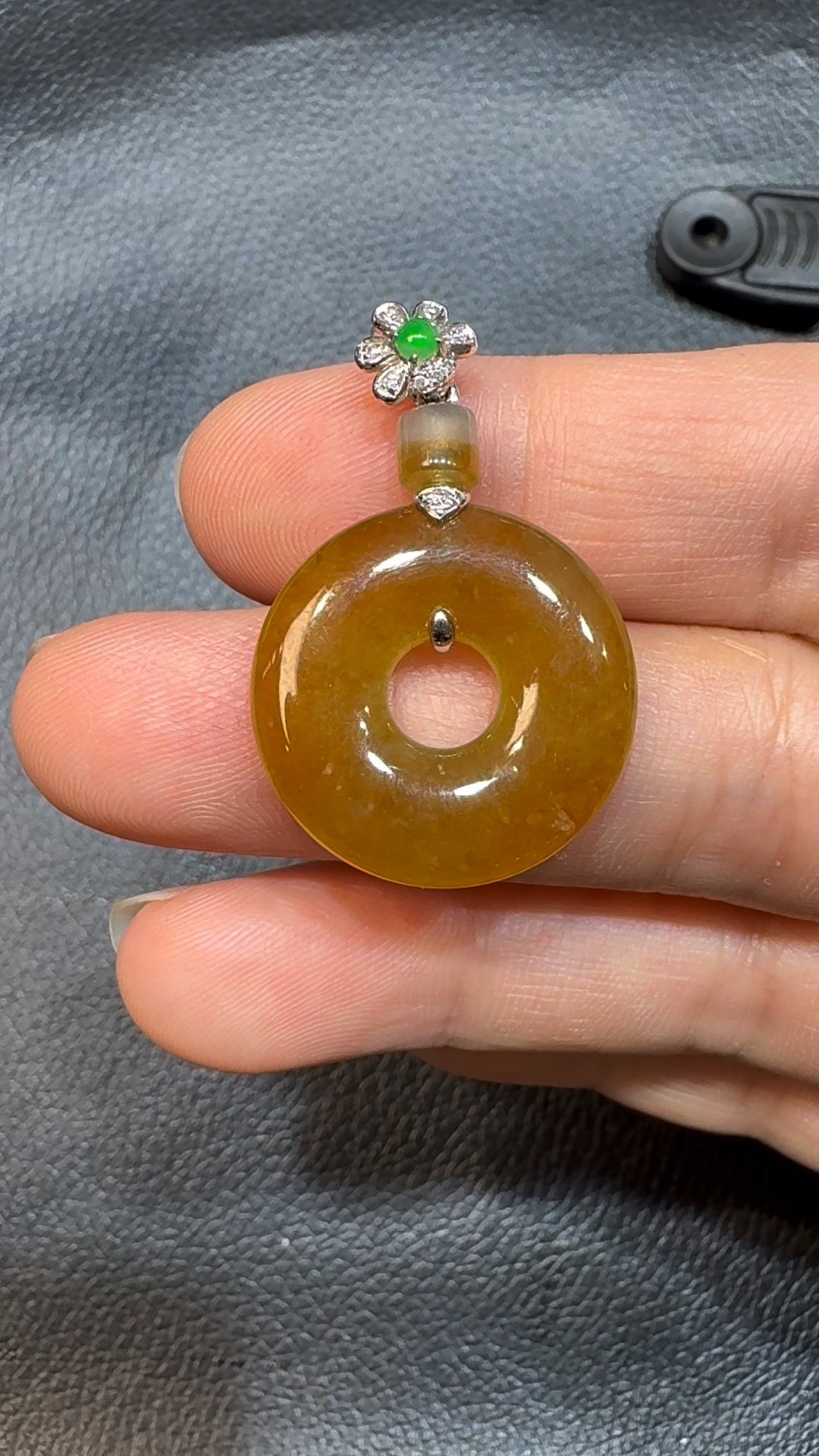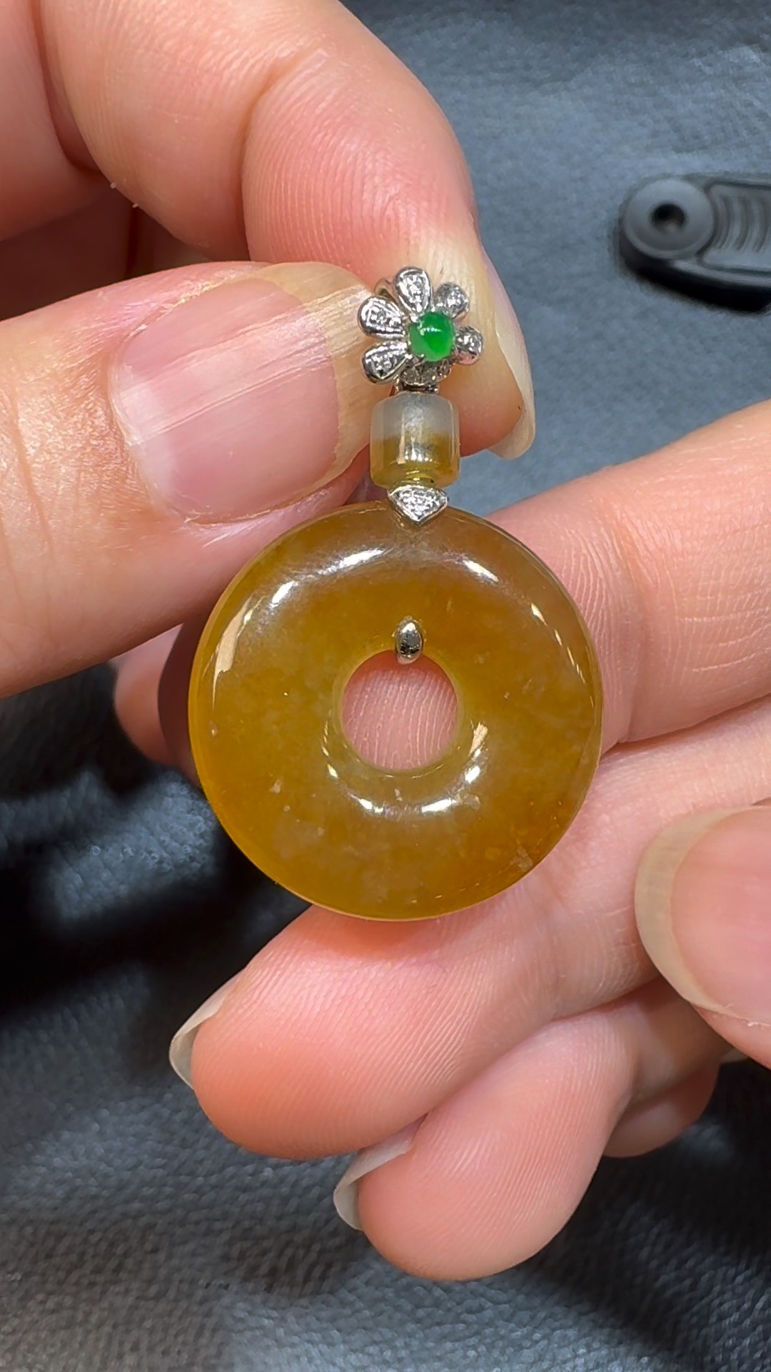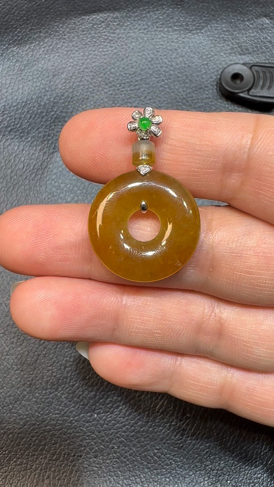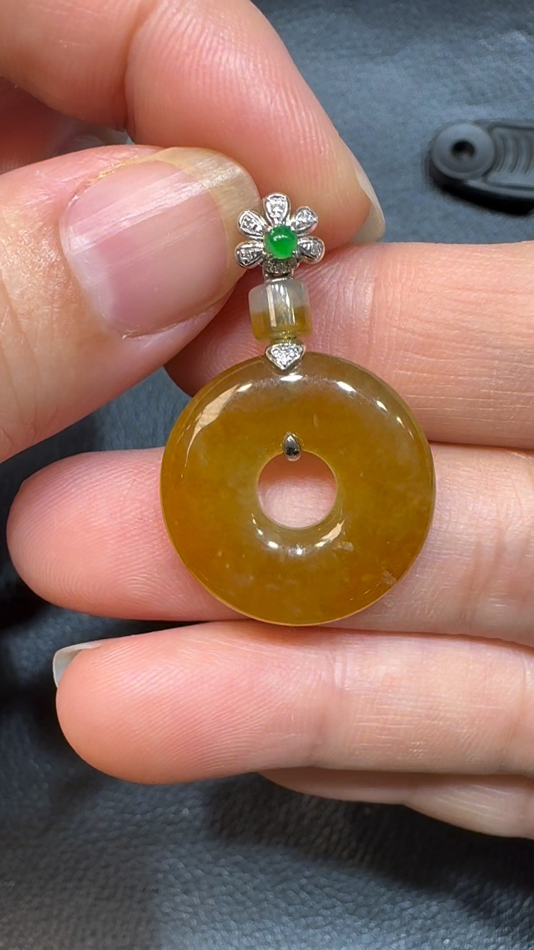 翡翠直播商品#69-18k白金鑽石紅黃翡平安扣平安環