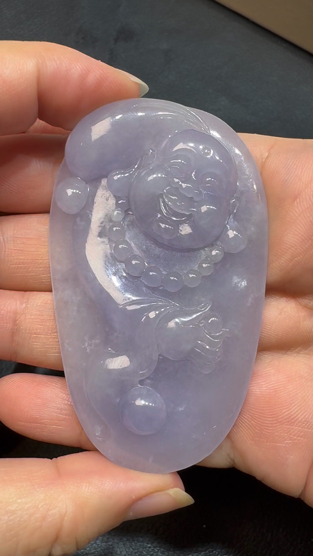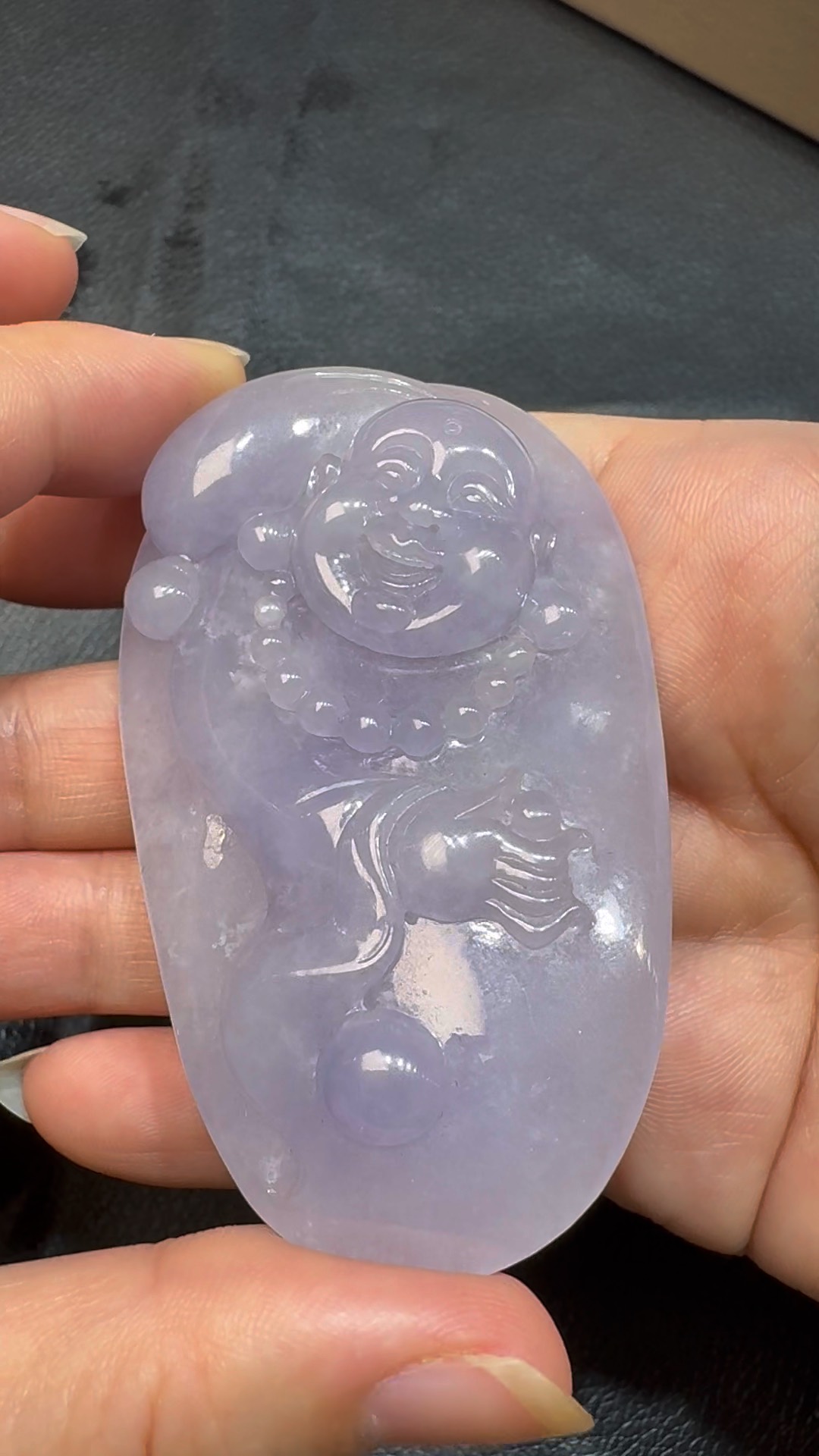 翡翠直播商品#92 -紫羅蘭布袋佛翡翠吊墜
