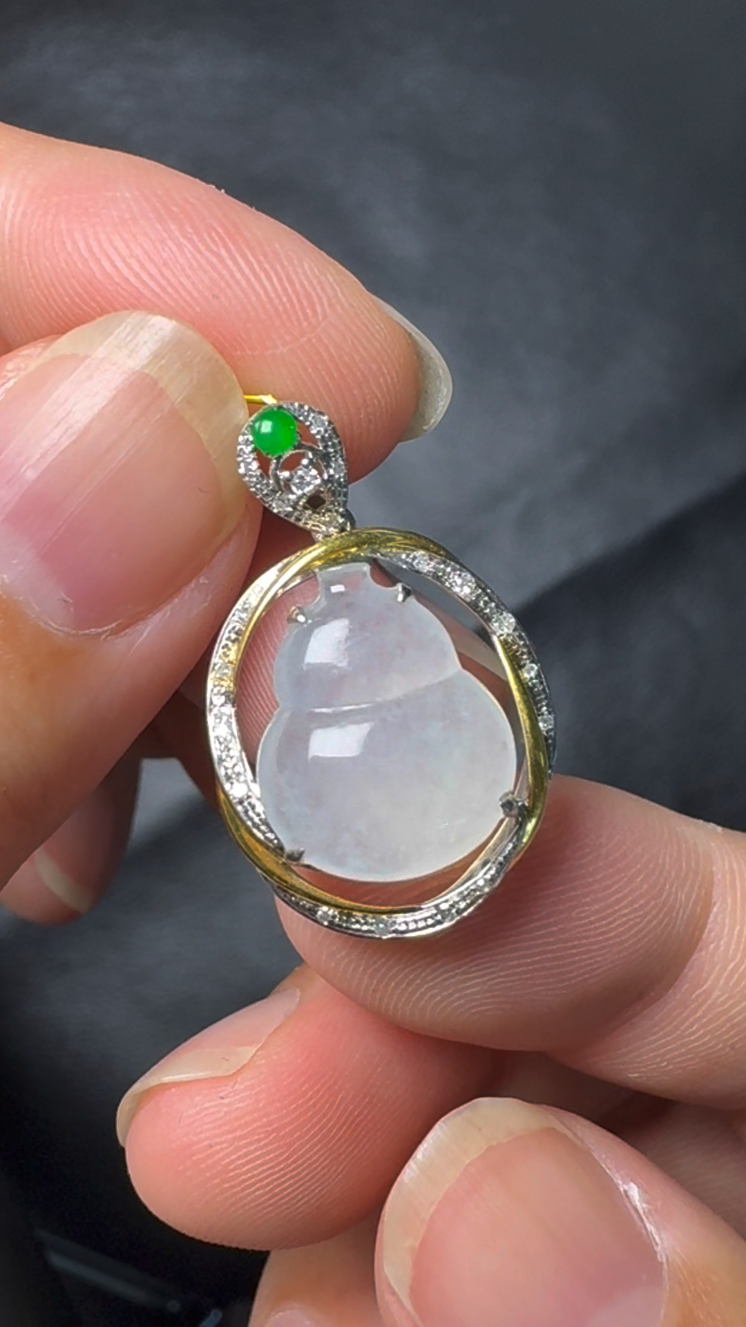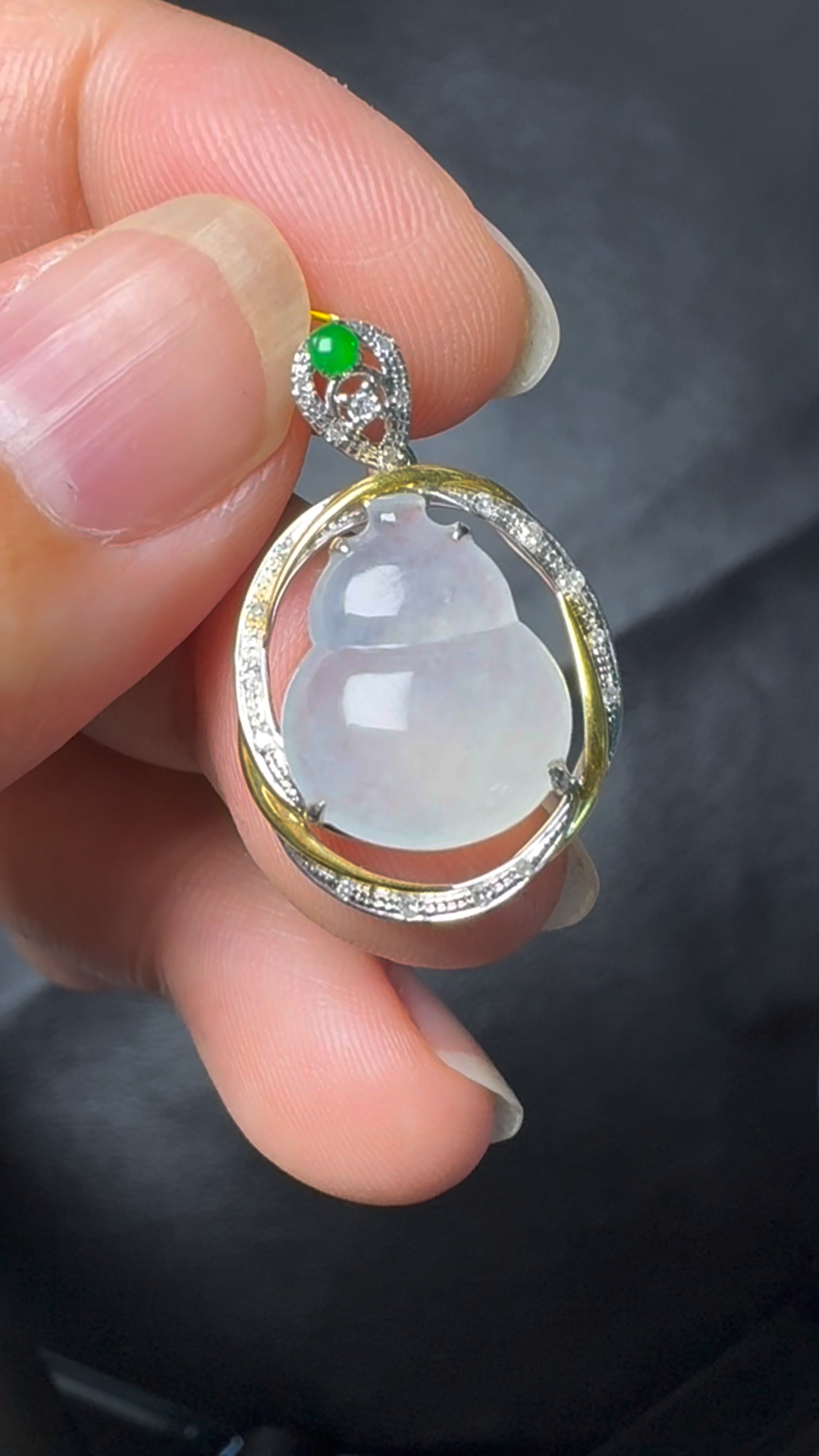 / 翡翠直播#10-18k白金鑽石葫蘆吊墜