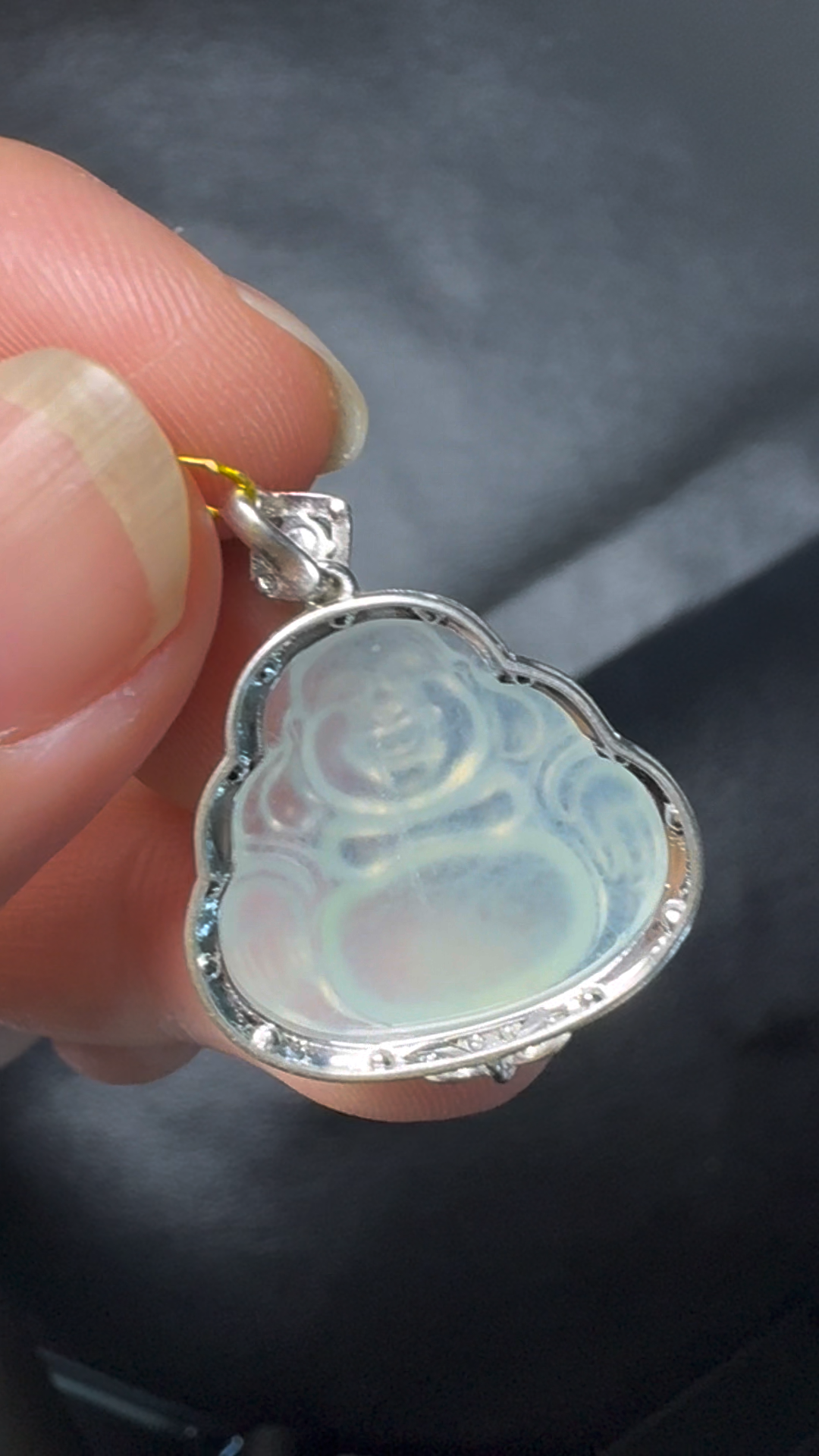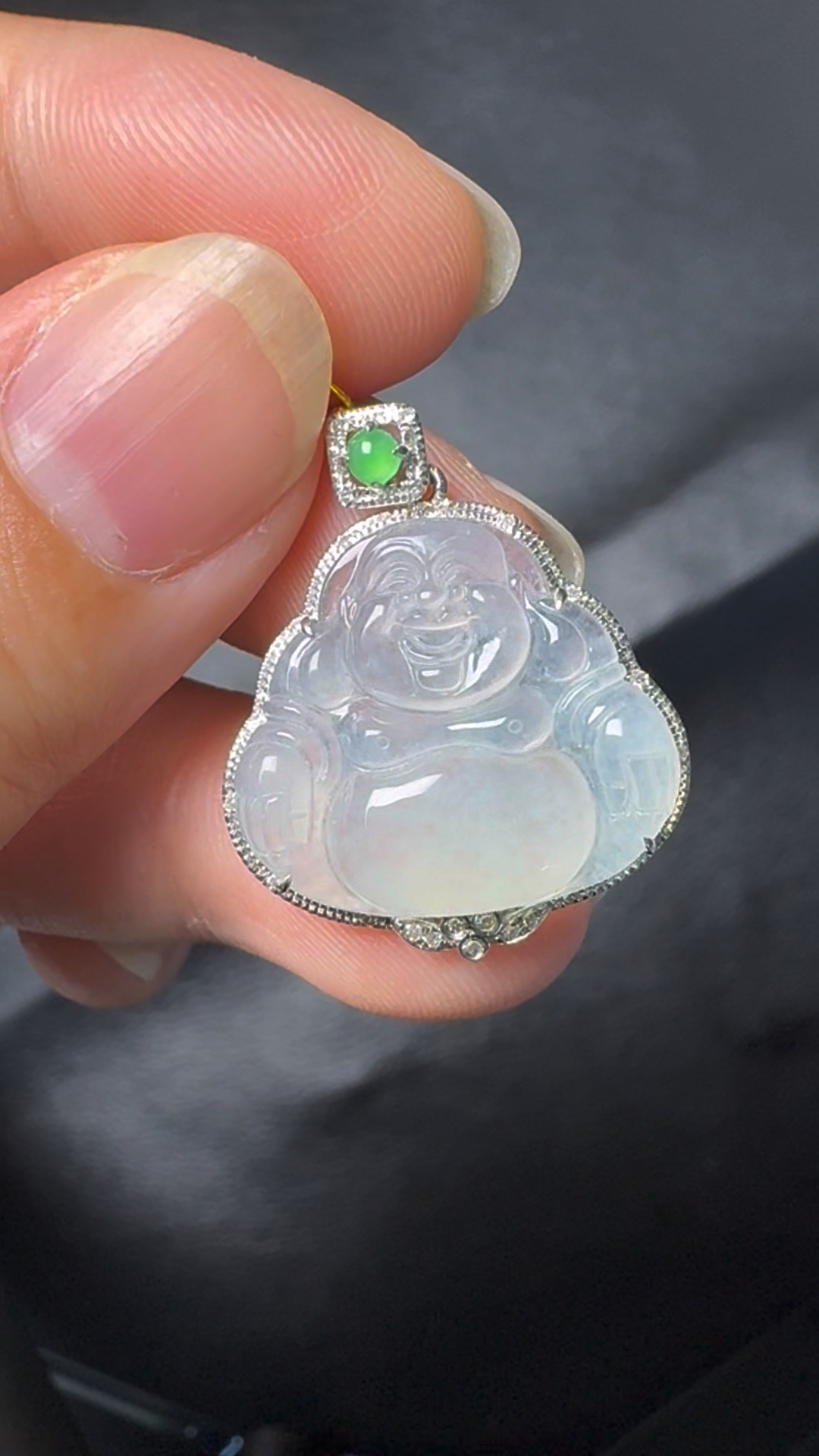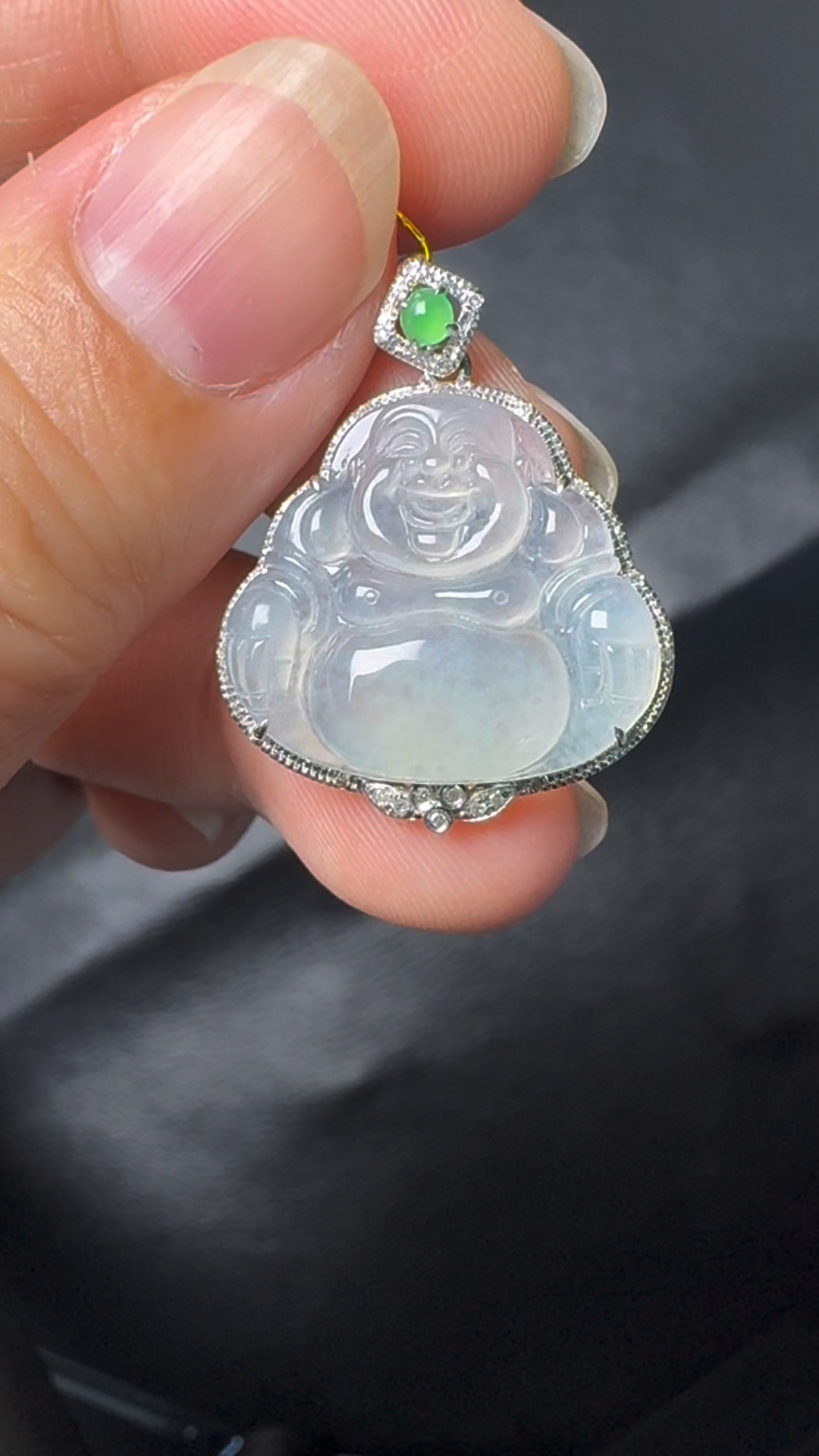翡翠直播#12-18k白金鑽石翡翠佛公吊墜