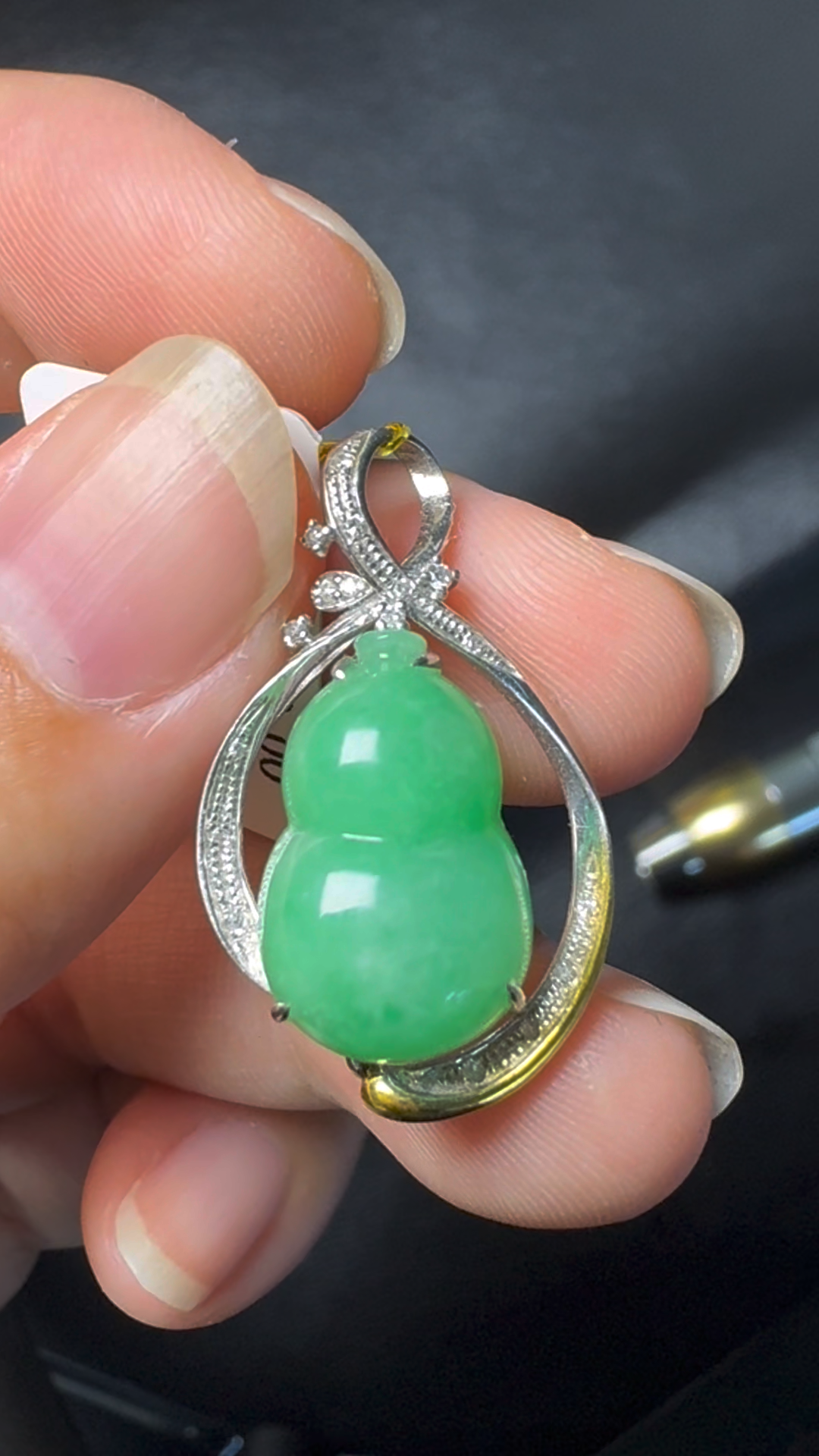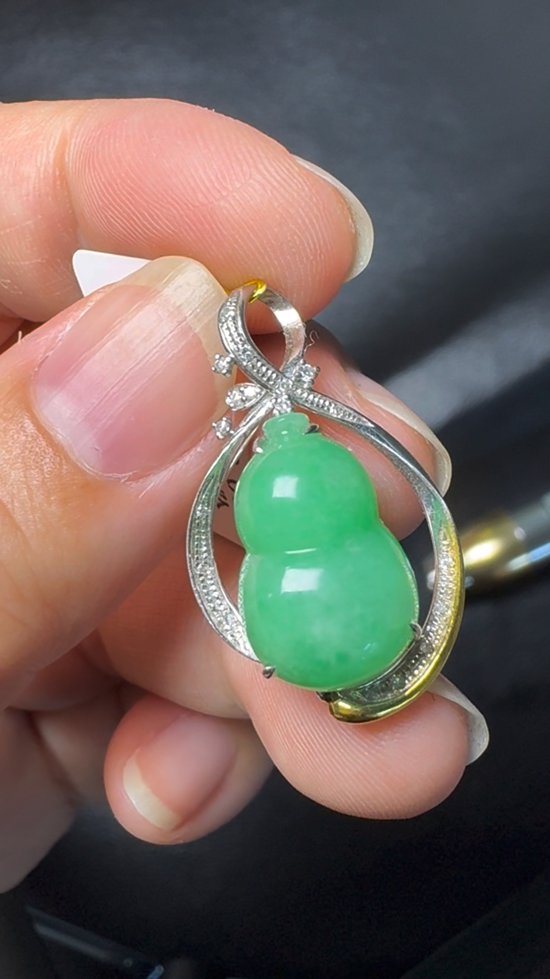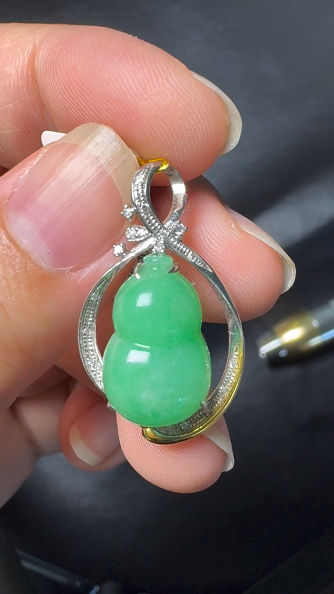 翡翠直播#18-18k白金鑽石翡翠葫蘆吊墜