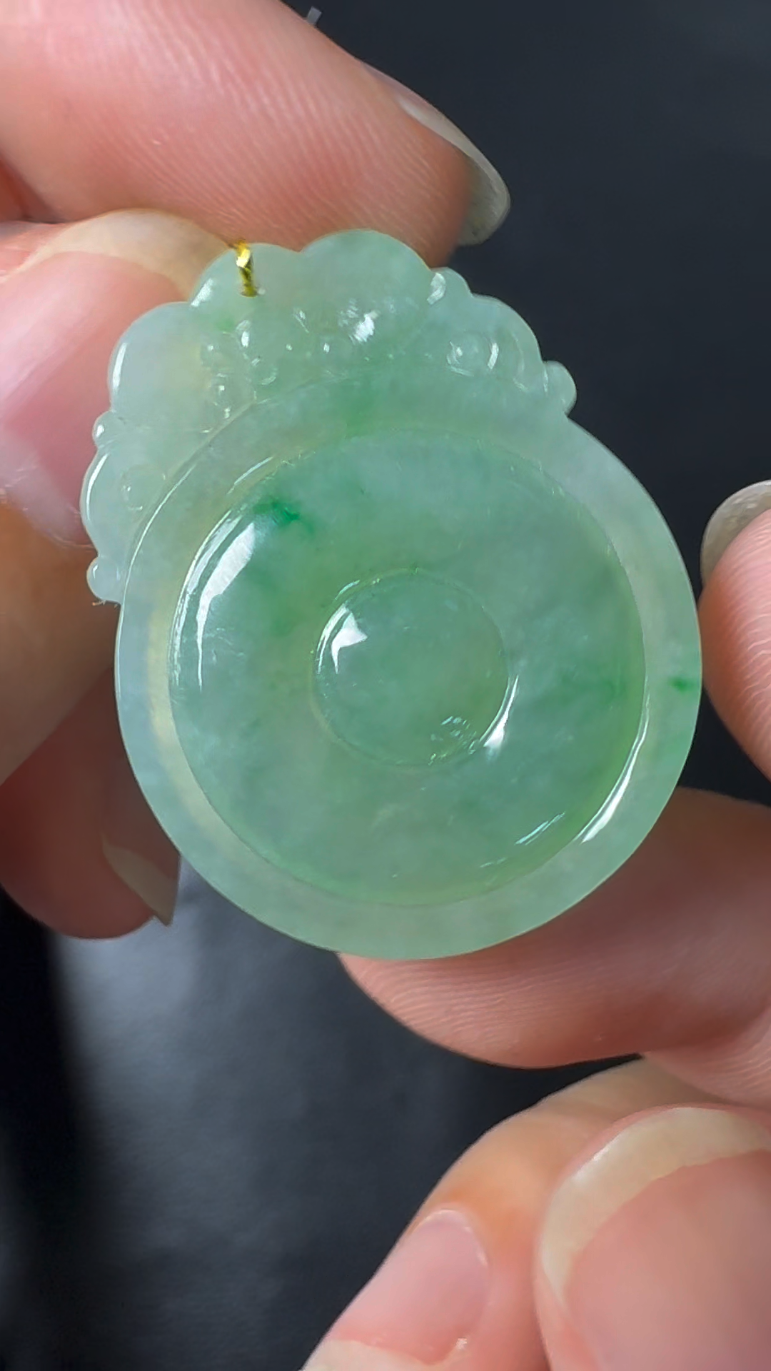 翡翠玉器精選 青潤吉扣・同料放大版淺綠平安扣翡翠吊墜 編號#367