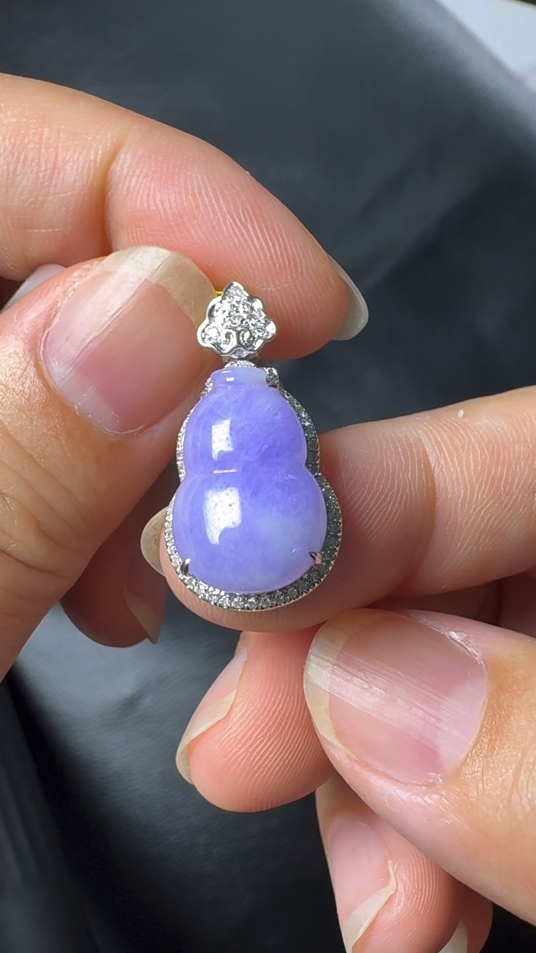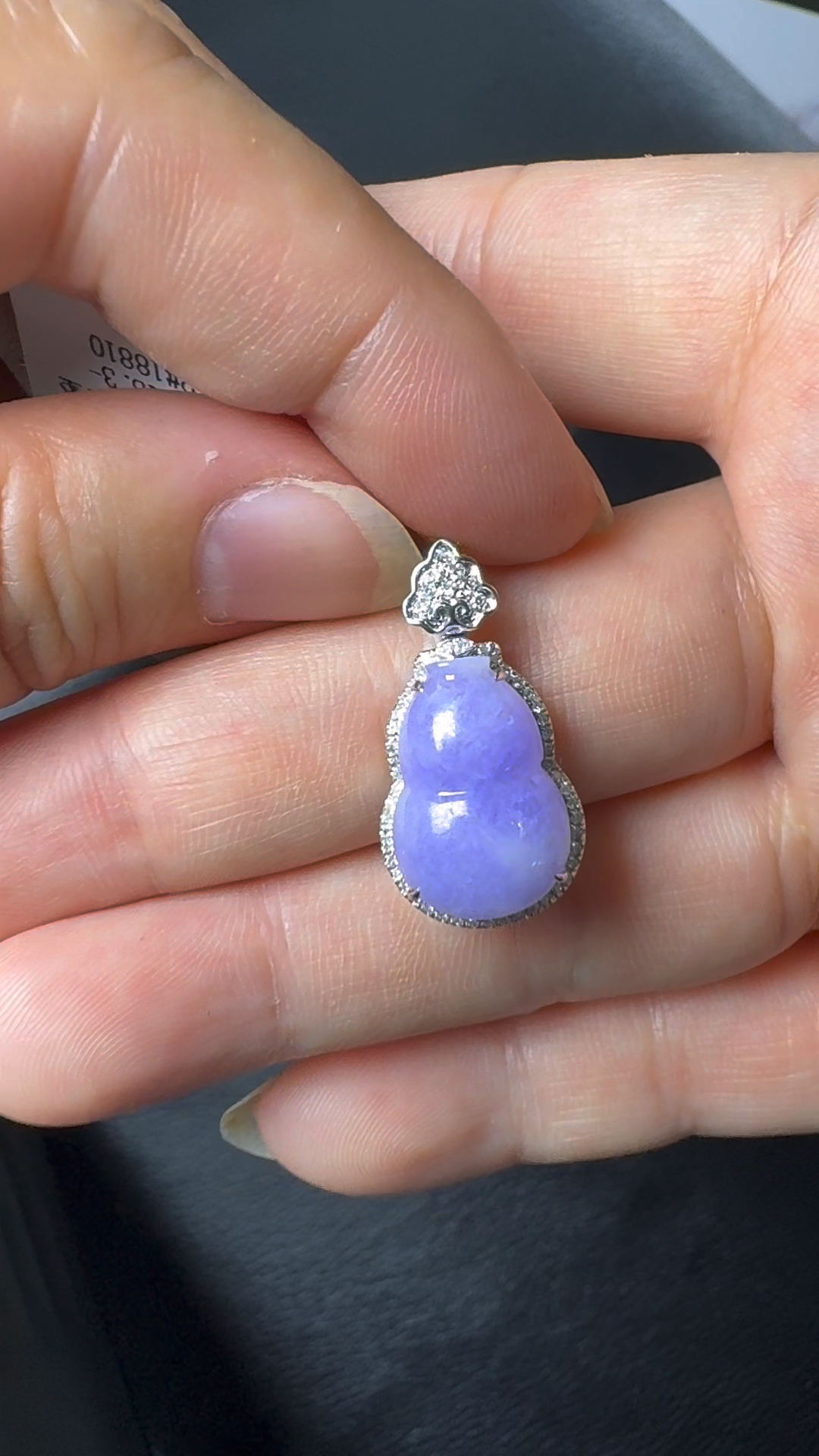 翡翠直播#4-18K白金鑽石紫羅蘭葫蘆吊墜