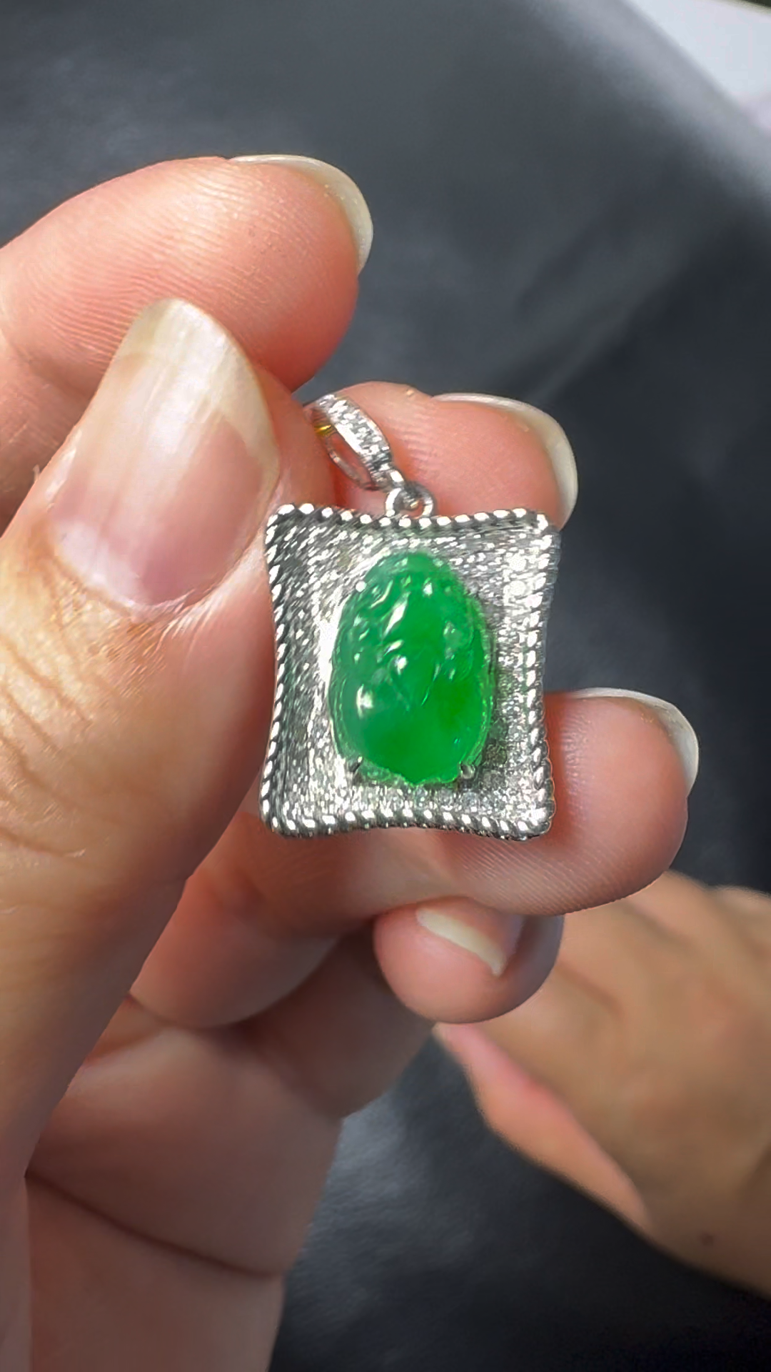 翡翠直播#7-18K白金鑽石翡翠貔貅吊墜