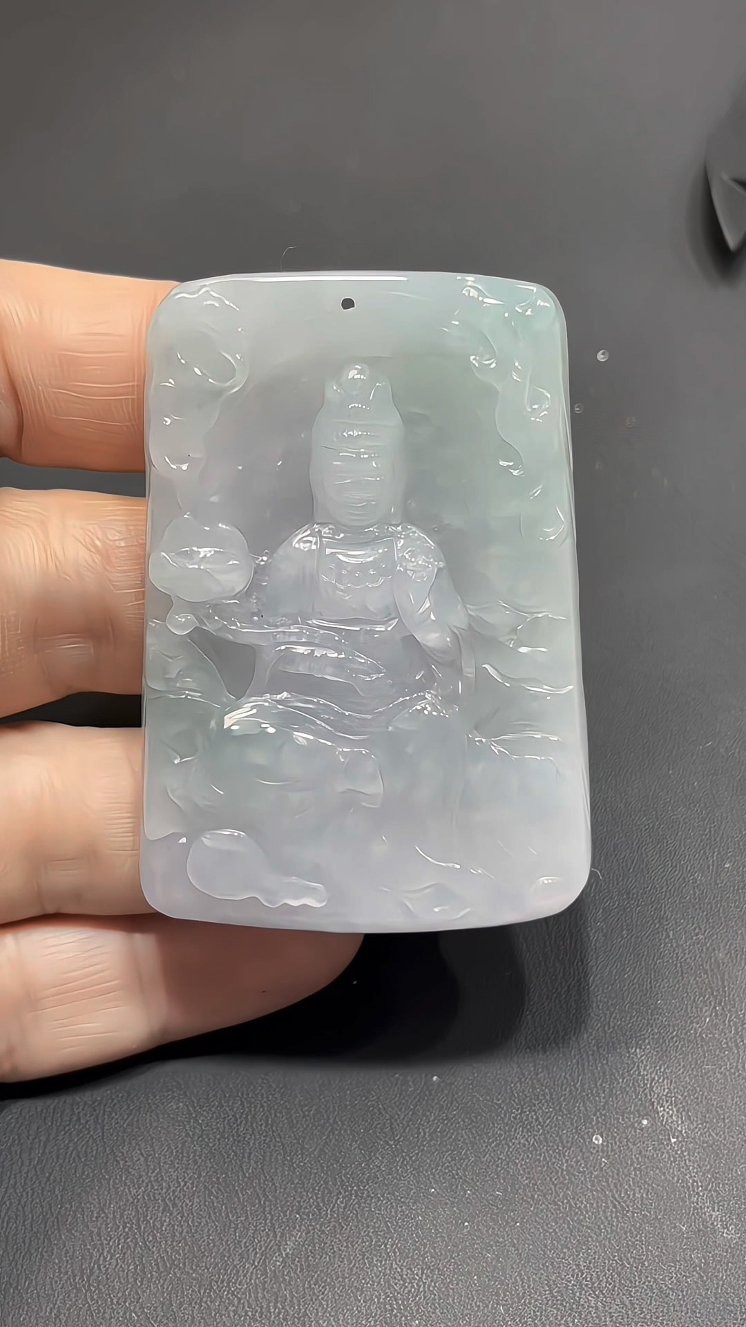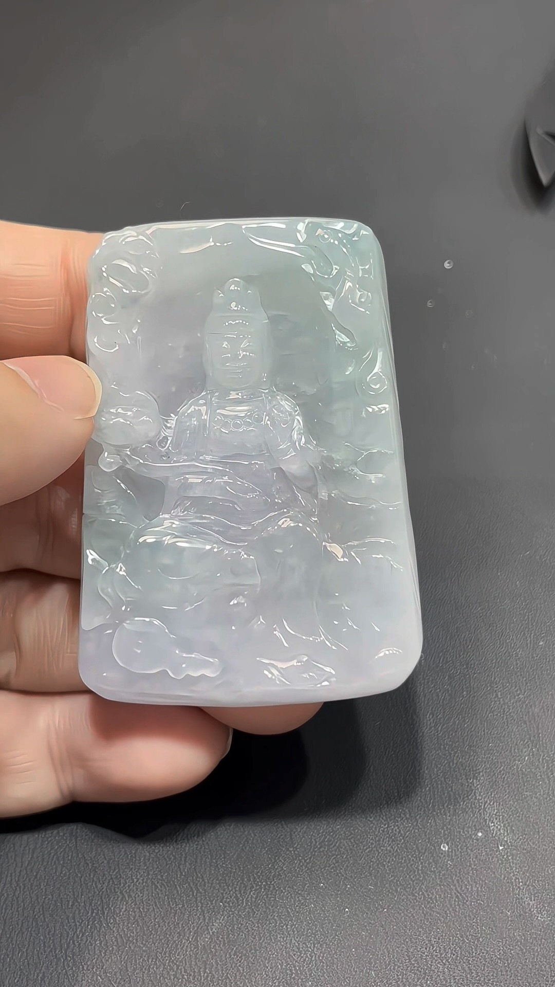 翡翠作品,編號822嚴選天然緬甸翡翠玉料,質地細膩潤澤,種好通透。整體以「觀音托蓮花」為主題,觀音面容慈祥莊嚴,手托蓮花,寓意「慈悲守護、淨心吉祥、福慧圓滿」。