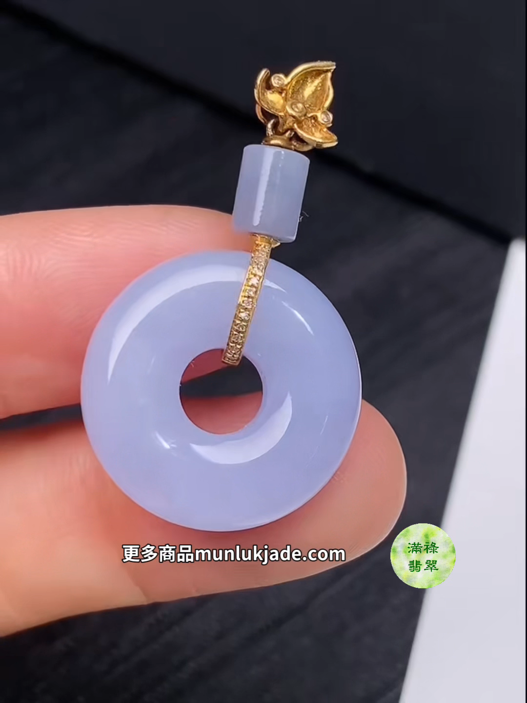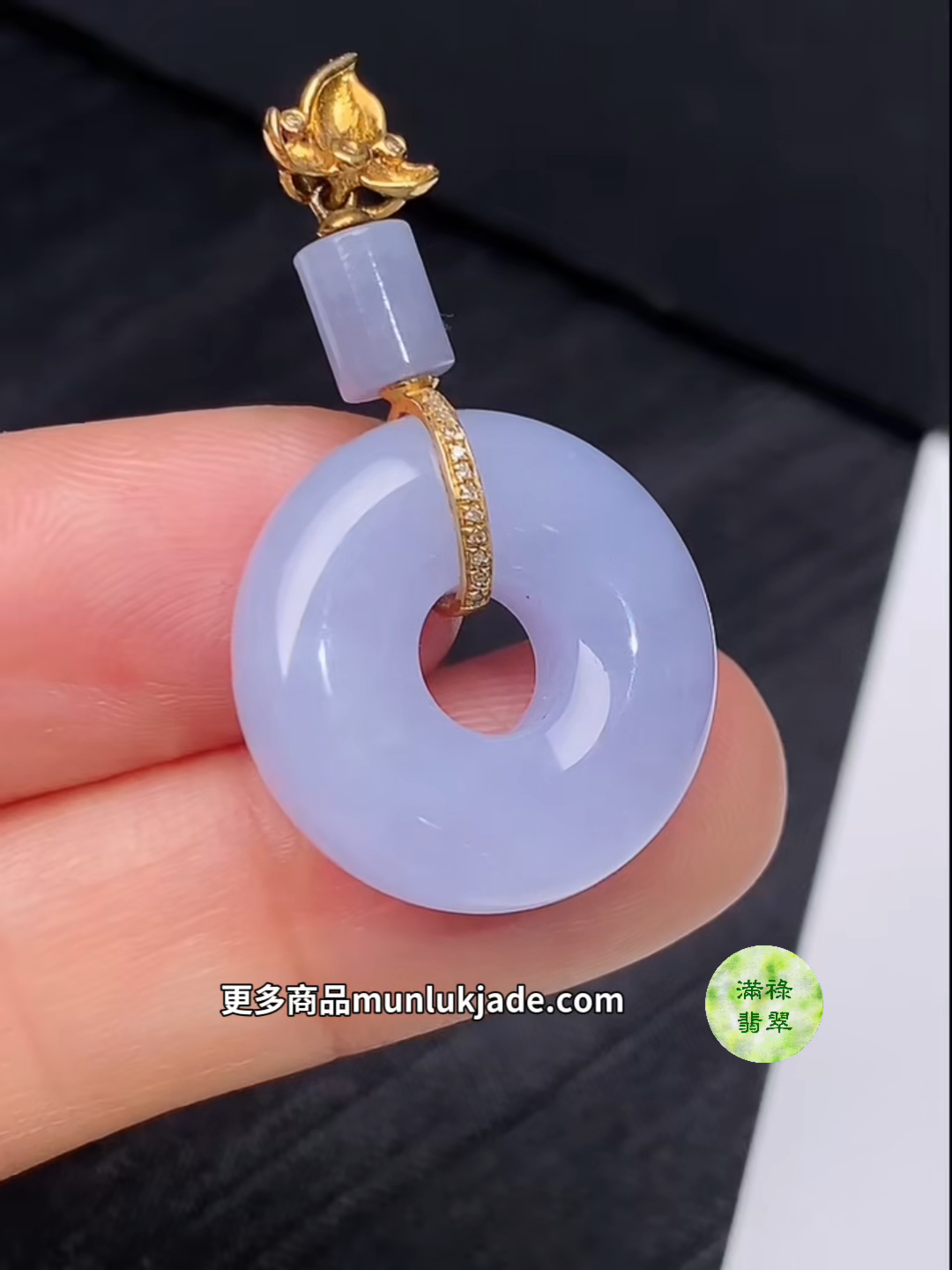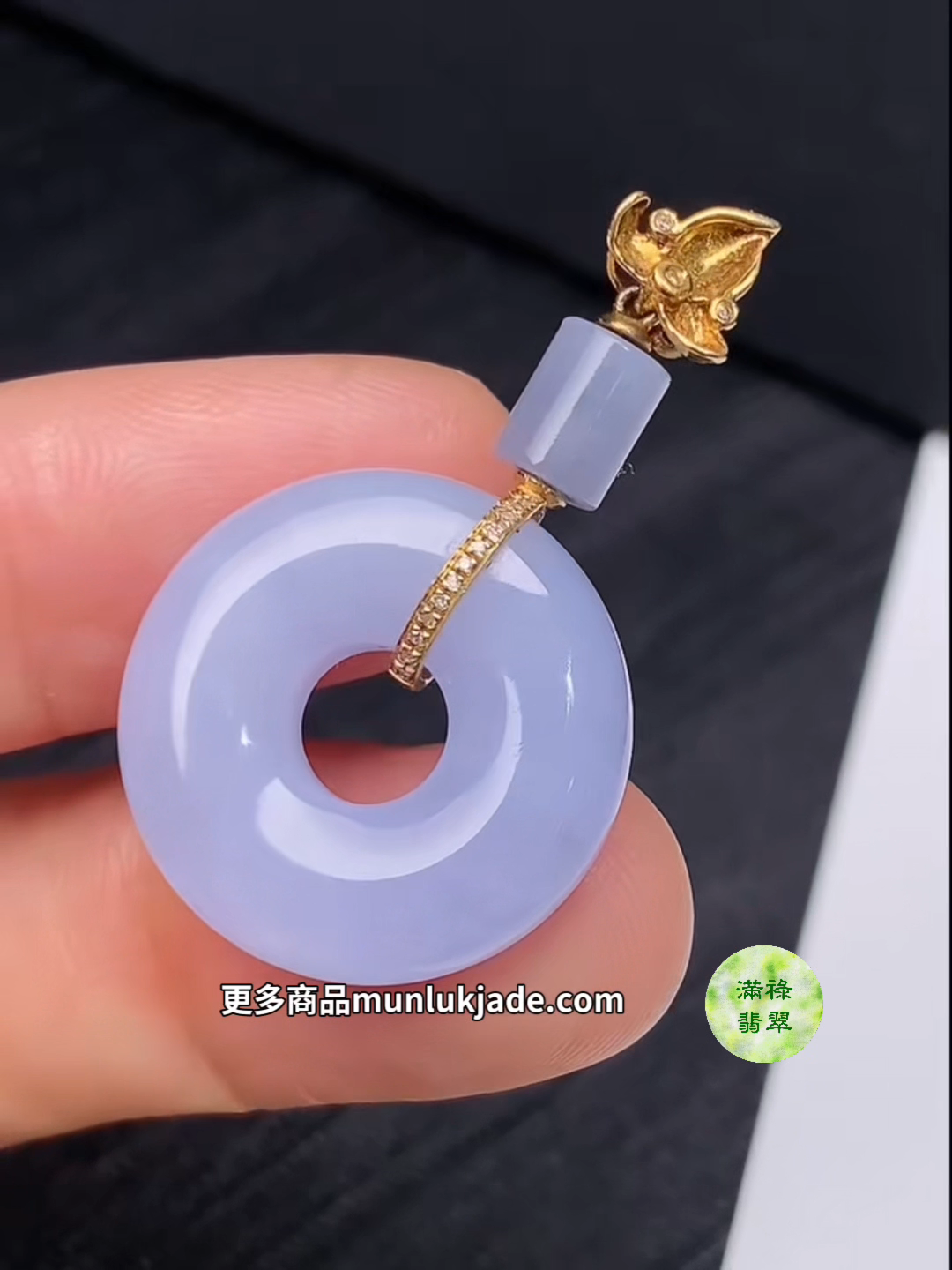 這款#861紫羅蘭色翡翠平安扣以天然冰紫翡翠雕刻而成,色澤柔美高雅,寓意「事事平安」。搭配18K金鑲嵌,鑽石閃耀如星光,令整體更顯華麗。圓潤造型承載東方文化的祥和寓意,展現珠寶的典雅與時尚。
