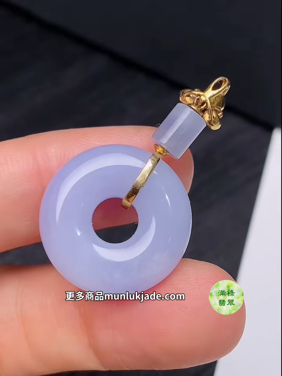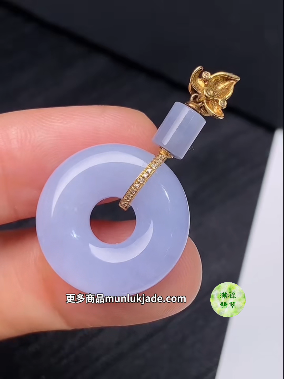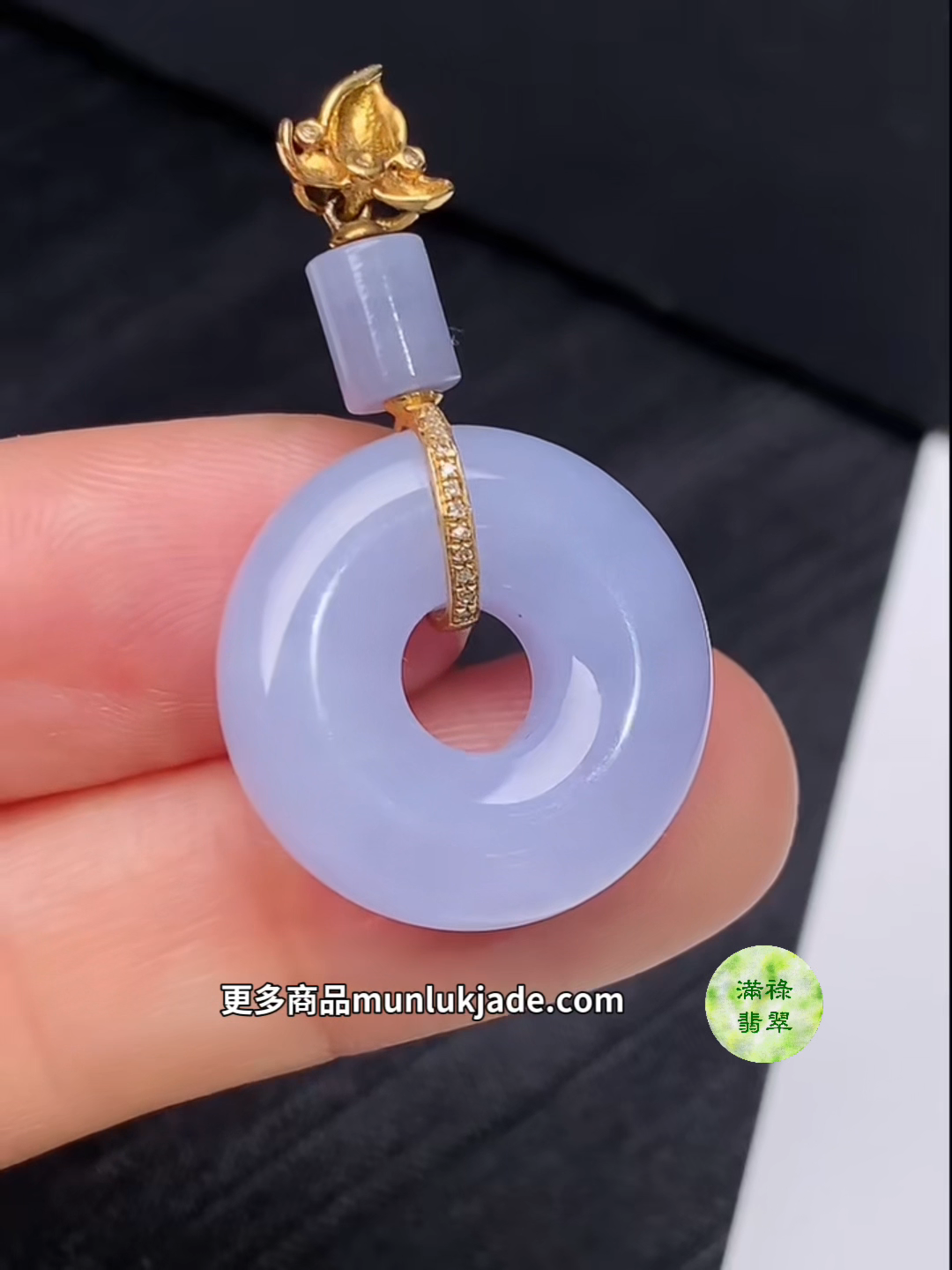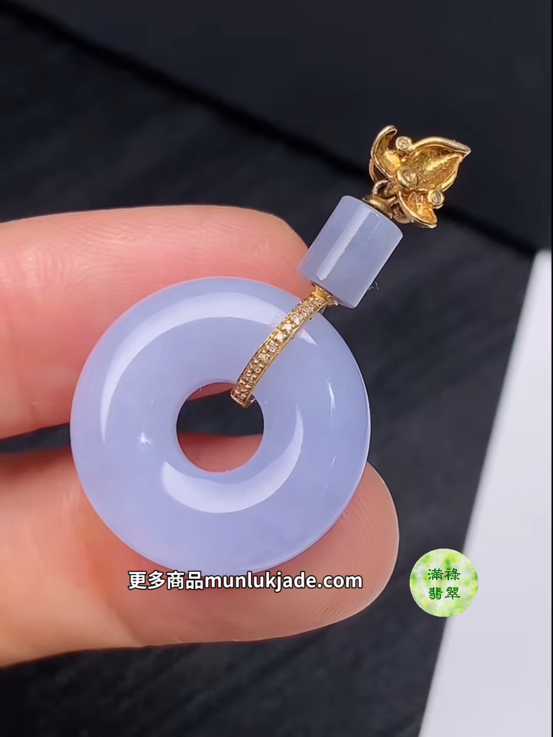 這款#861紫羅蘭色翡翠平安扣以天然冰紫翡翠雕刻而成,色澤柔美高雅,寓意「事事平安」。搭配18K金鑲嵌,鑽石閃耀如星光,令整體更顯華麗。圓潤造型承載東方文化的祥和寓意,展現珠寶的典雅與時尚。