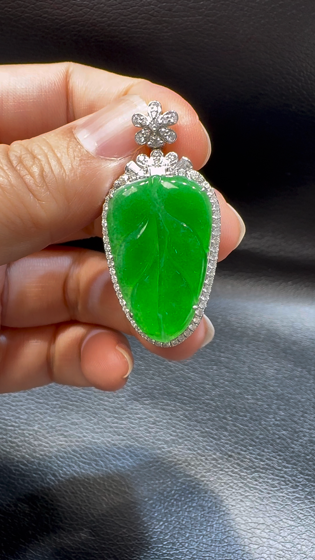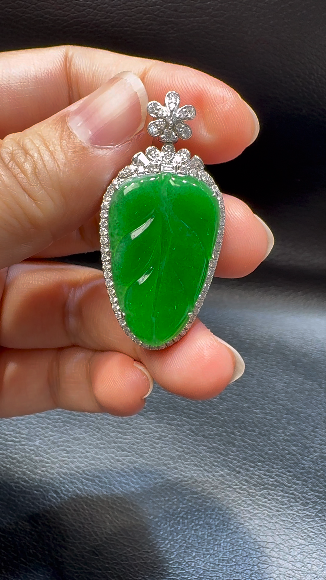 18K翡翠A貨玉器樹葉玉葉翡翠吊墜 整個42.6-20.6-10mm