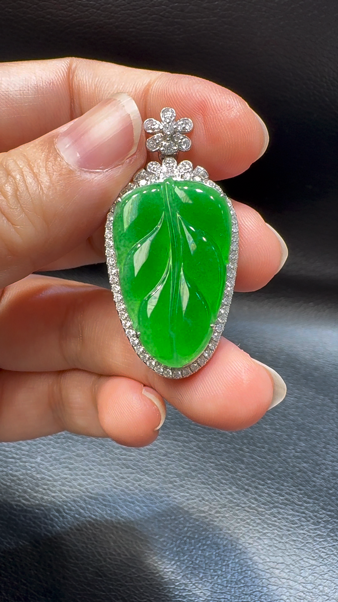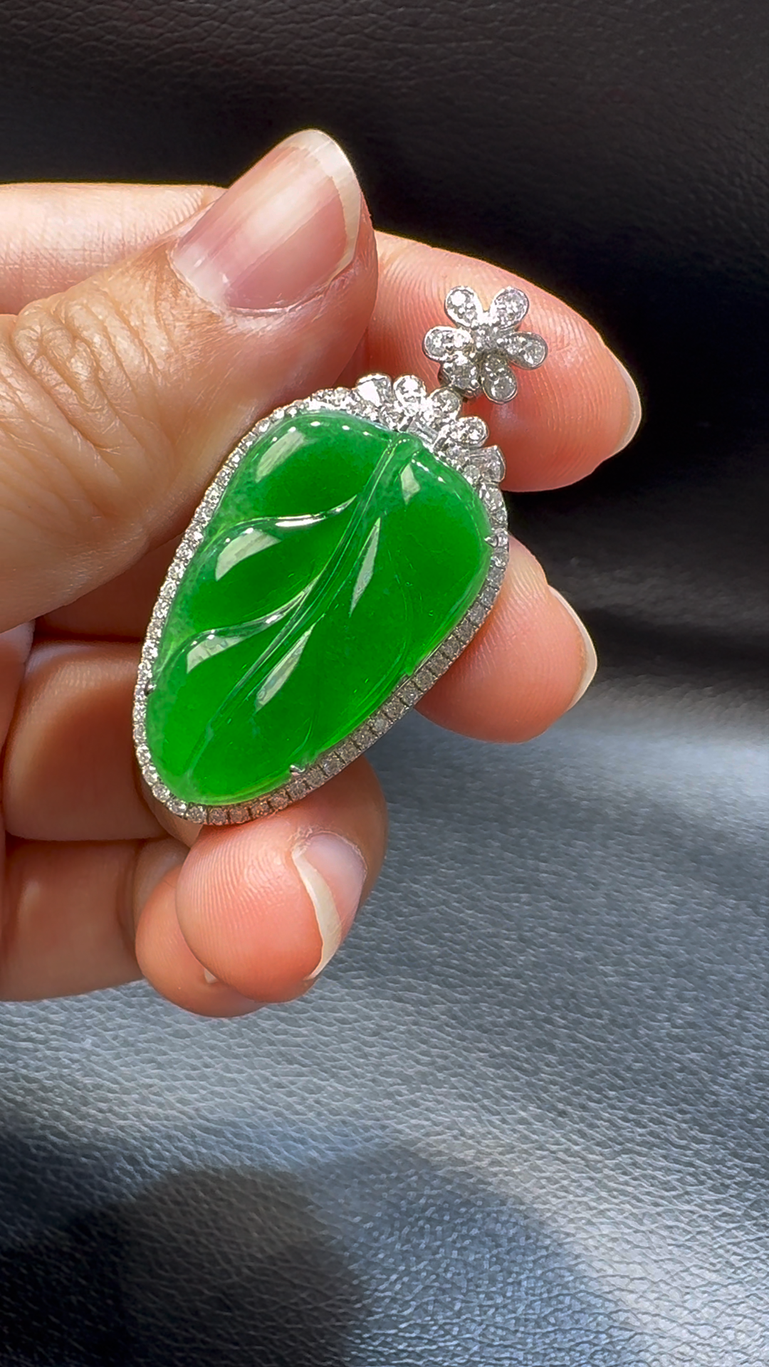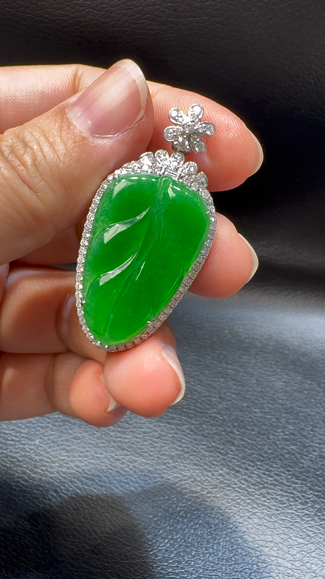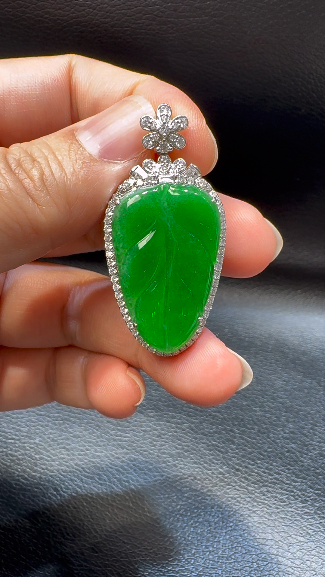 名稱:18K翡翠A貨玉器樹葉玉葉翡翠吊墜