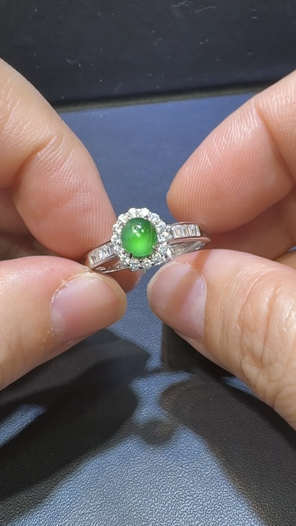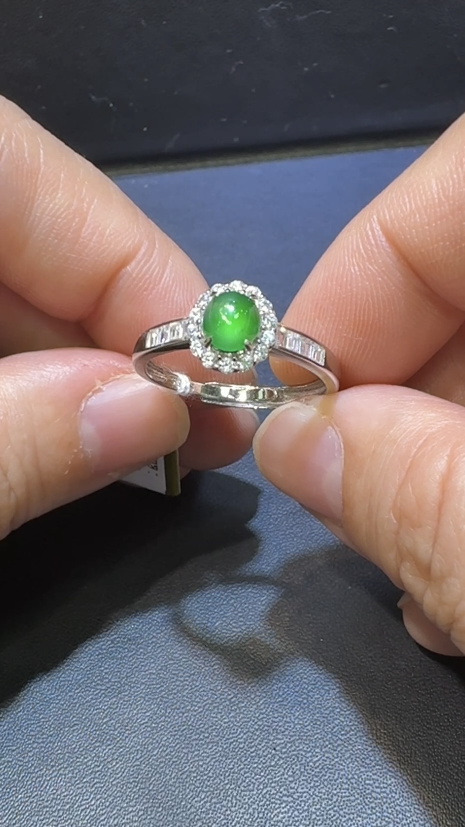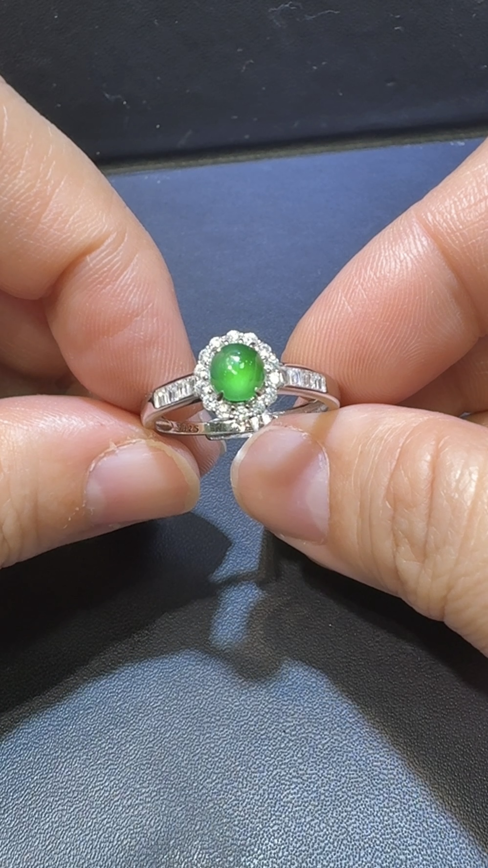 翡翠戒指|危地馬拉翡翠小蛋面 × 高色 × 鋯石環繞 × 精緻華美推薦 #14853