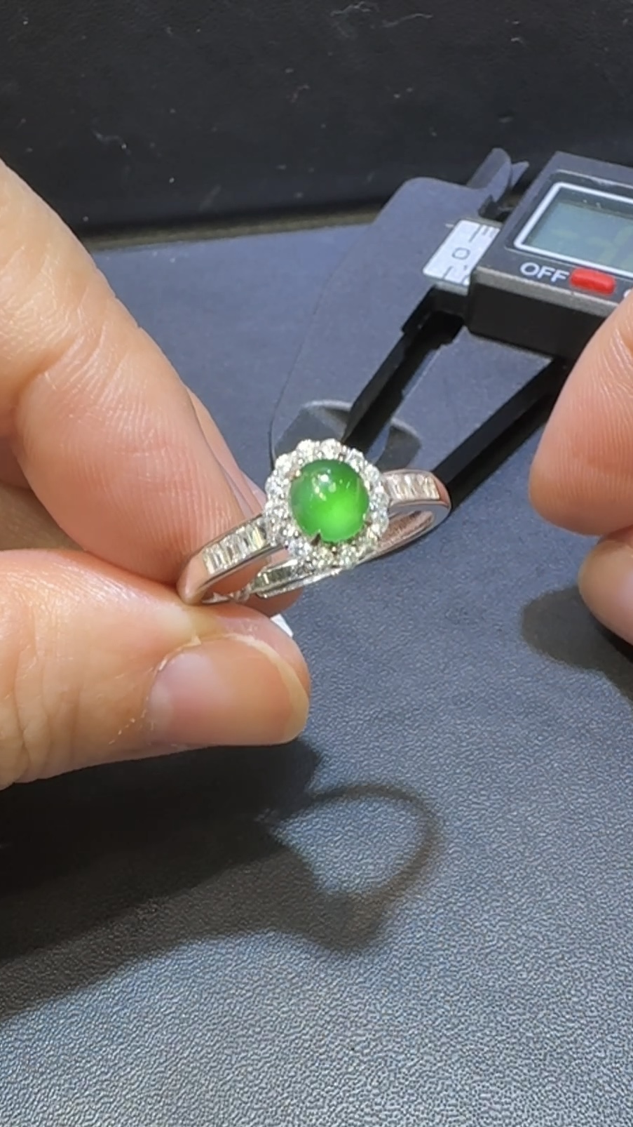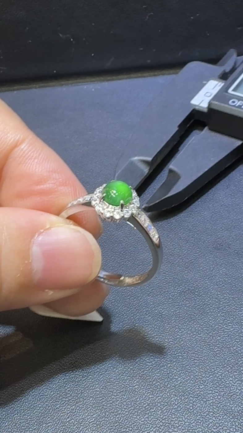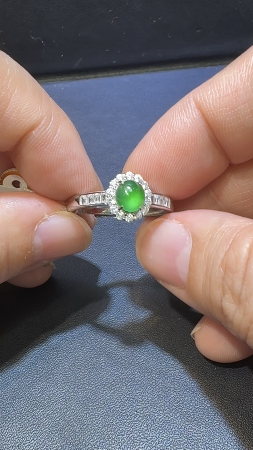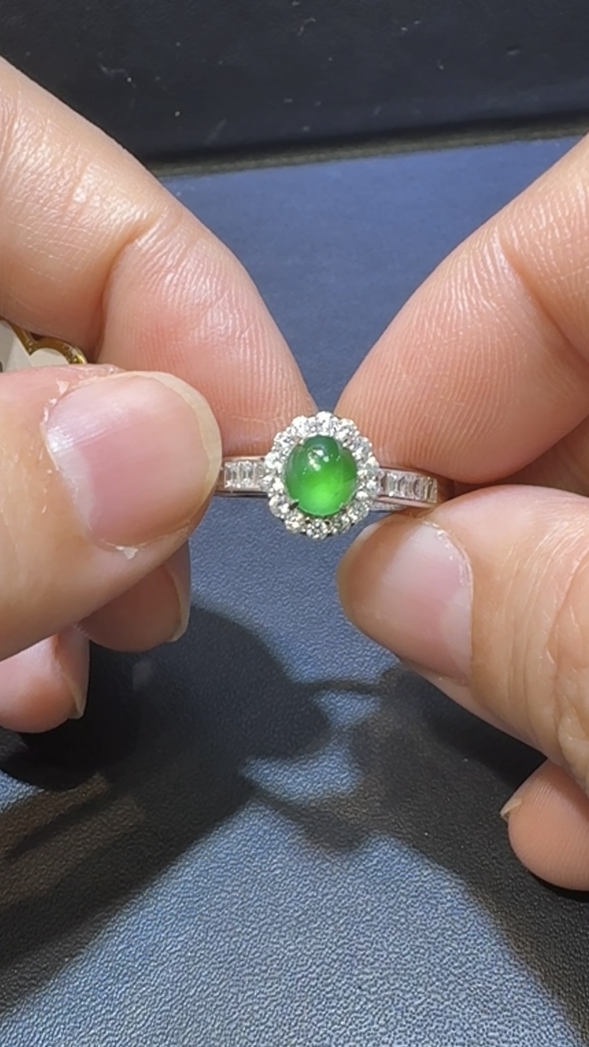 翡翠戒指|危地馬拉翡翠小蛋面 × 高色 × 鋯石環繞 × 精緻華美推薦 #14853