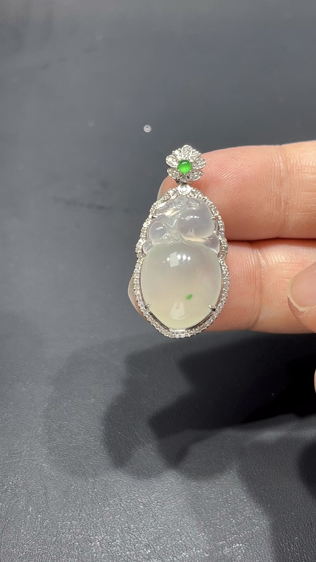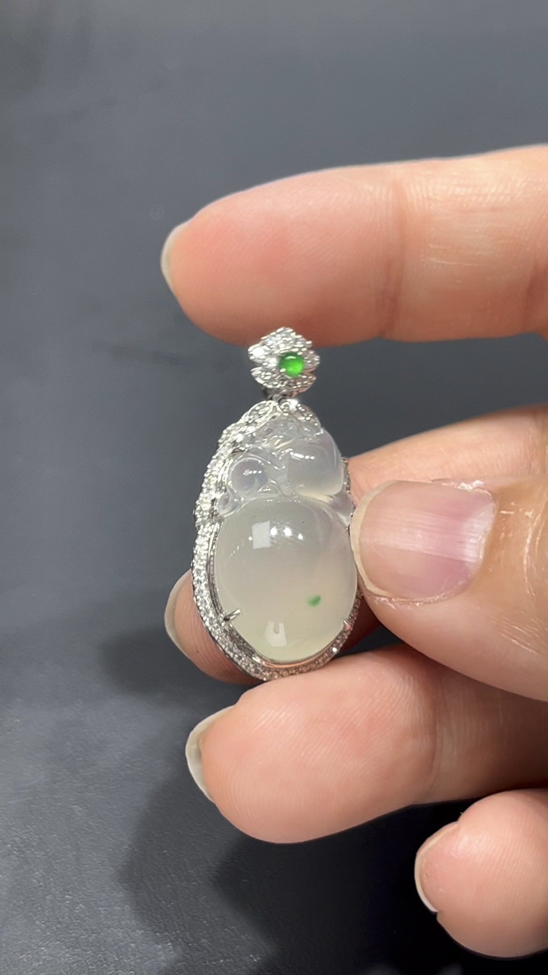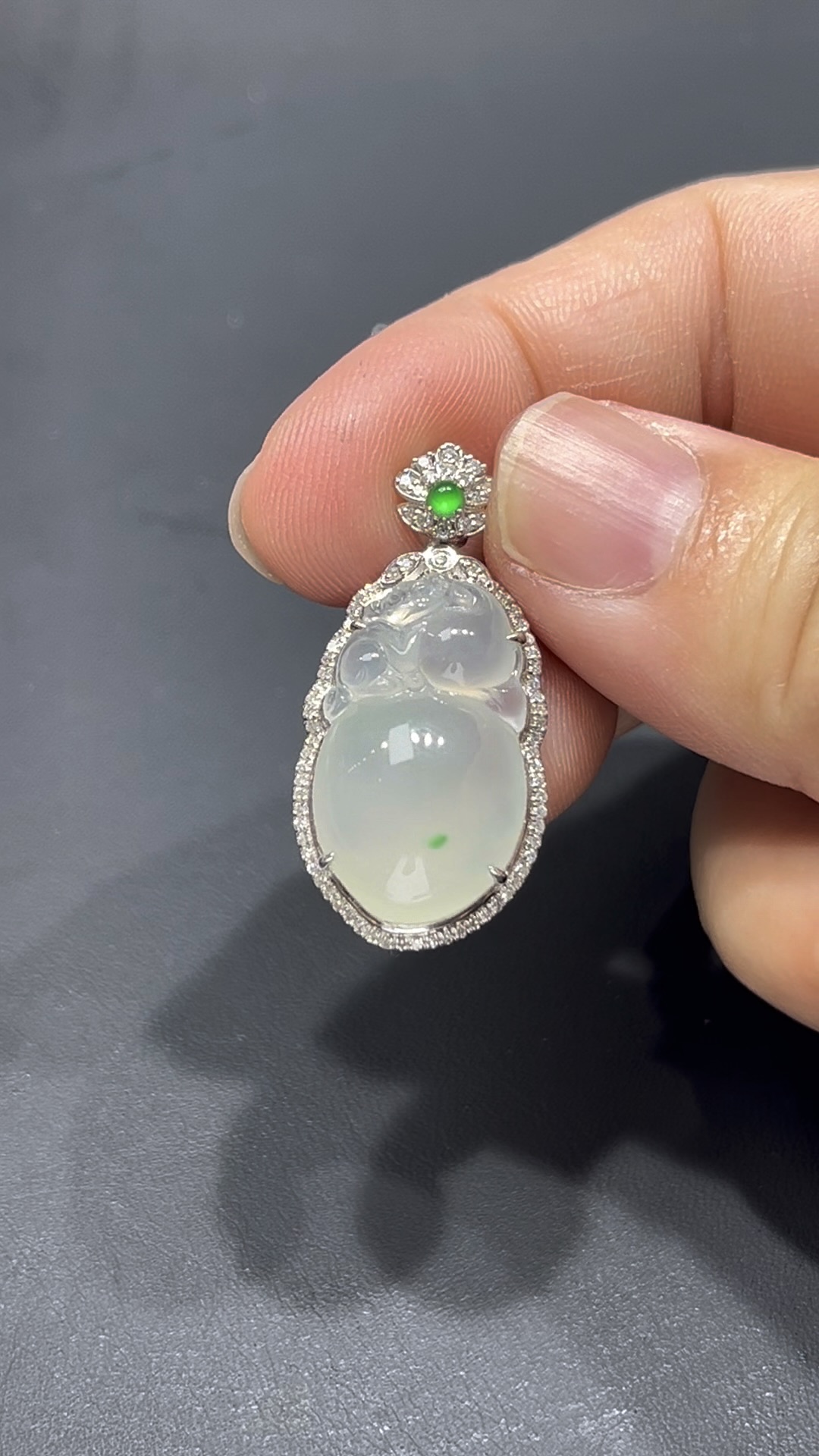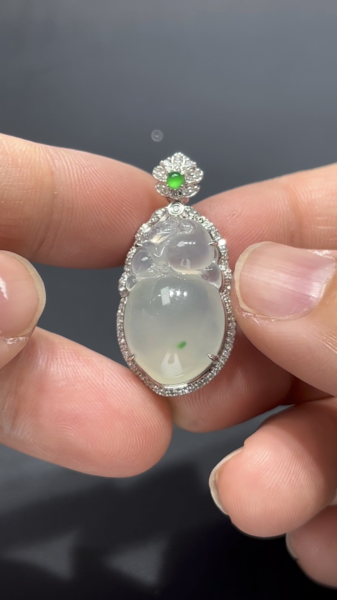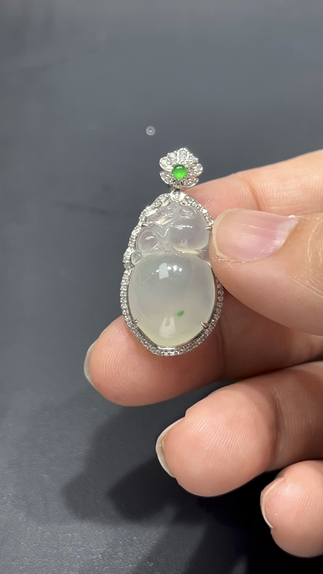 翡翠玉料細膩純淨,種水佳,光澤柔和,質感高雅