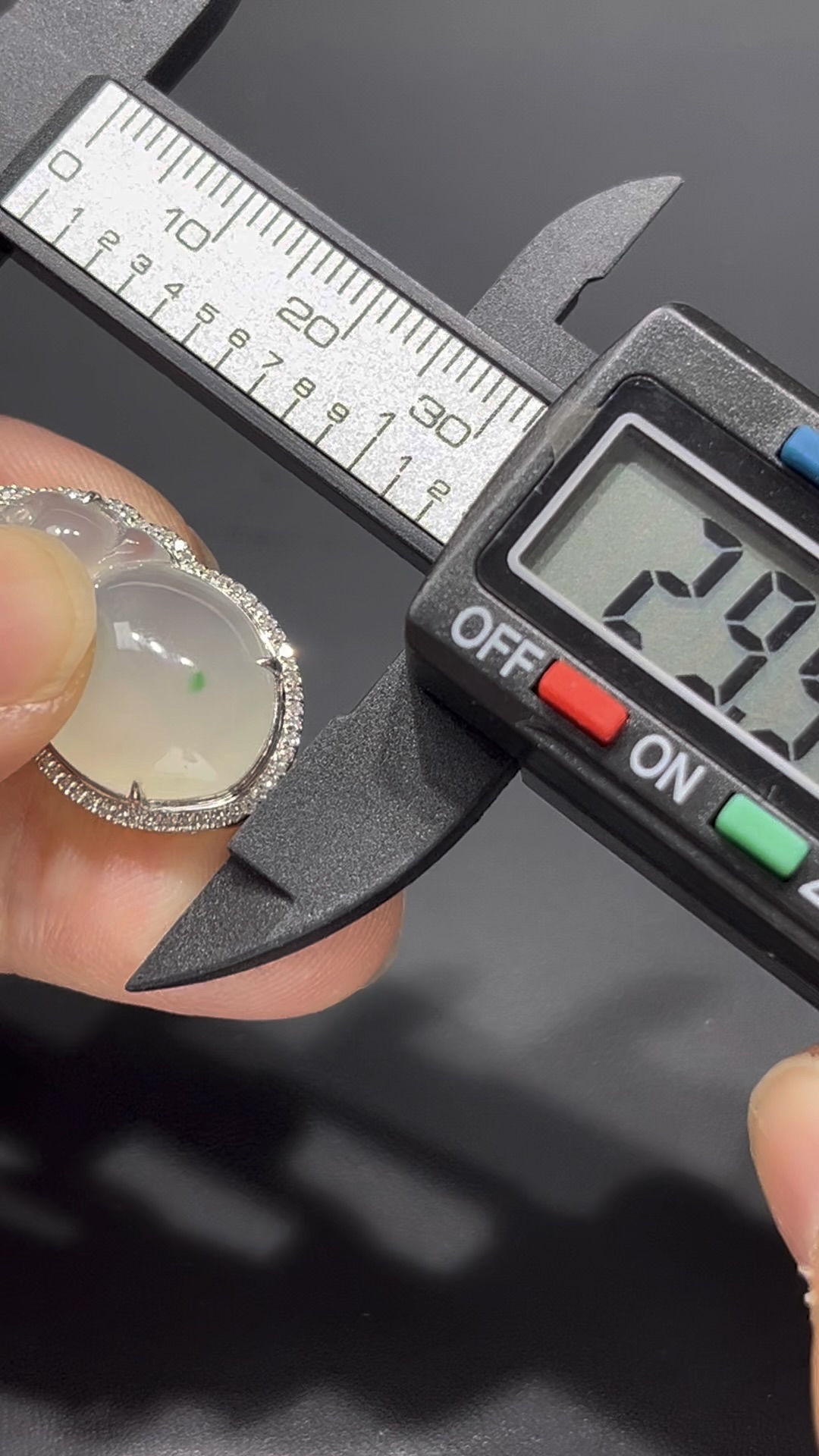 翡翠猴桃吊墜,編號#715,選用天然高品質翡翠玉料,質地細膩純淨,色澤柔和通透,種水佳,光澤潤澤。整體造型厚實飽滿,猴桃形態圓潤生動,搭配18K金鑲嵌設計,工藝精緻,金翠交融,提升整體高貴質感。猴桃象徵「猴桃報喜」,寓意喜訊臨門、福氣盈門,是一款充滿祝福與靈性的翡翠吊墜,適合送禮、收藏與日常佩戴。